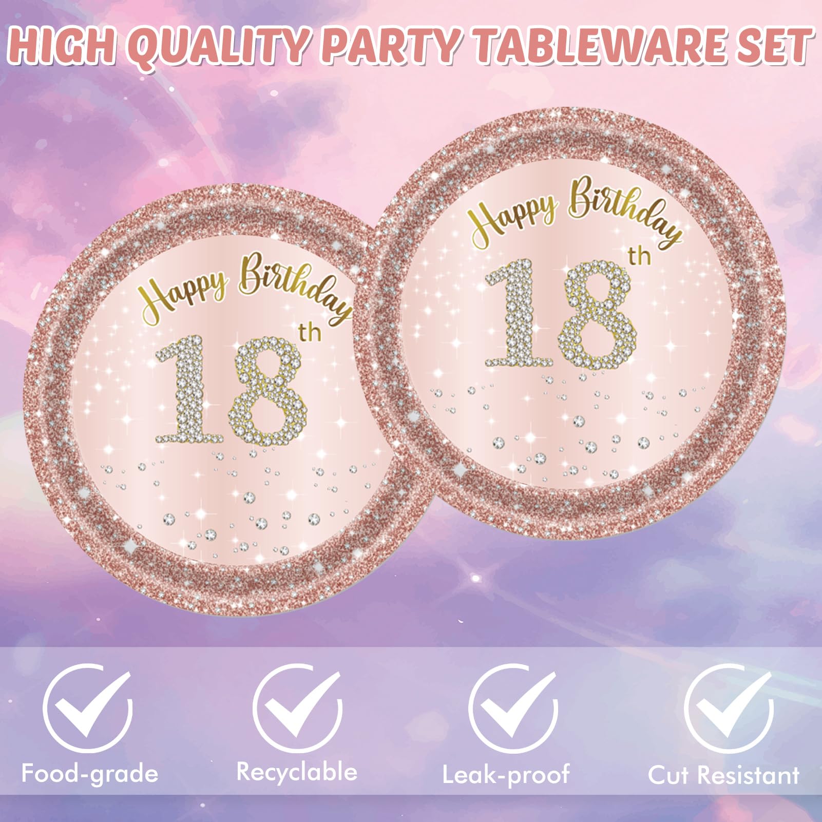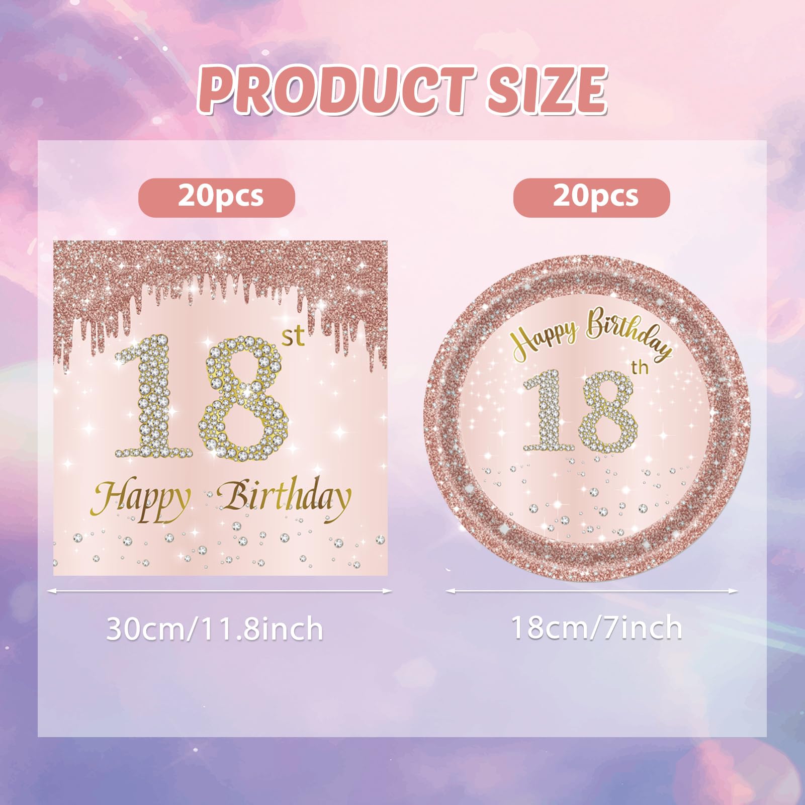 What You will Get: 18th birthday table decorations include ,20 pieces 18th birthday plates, 20 pieces 18th birthday napkins.rose gold plates and napkins party supplies set enhances the party your party atmosphere for your for your friends and family,creating an unforgettable memory that.