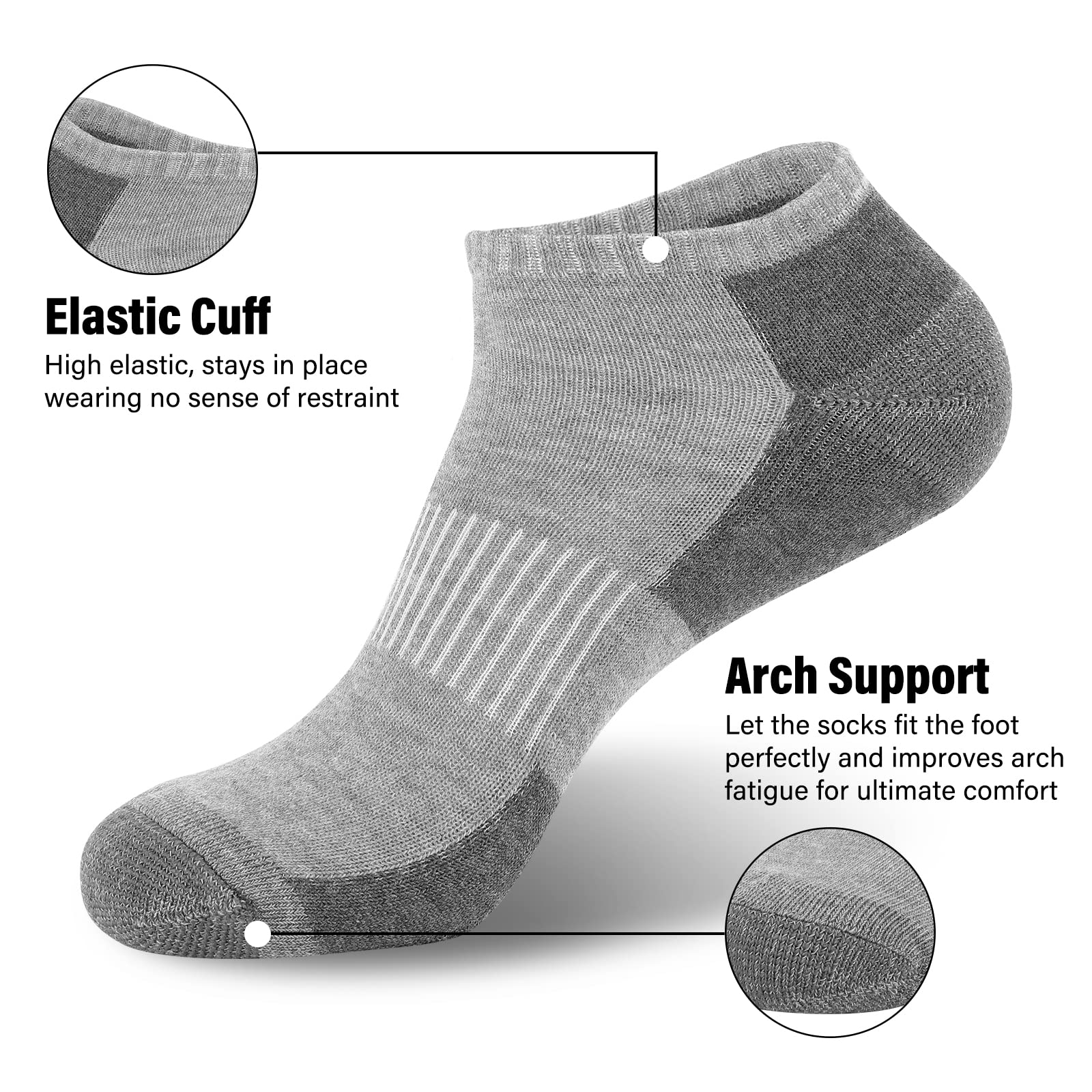 Cushioned Sole: With mid-weight cushioning on the sole, the soft material padding relieves the pressure on your feet, it also has good moisture wicking function to keep your feet dry in your daily life.