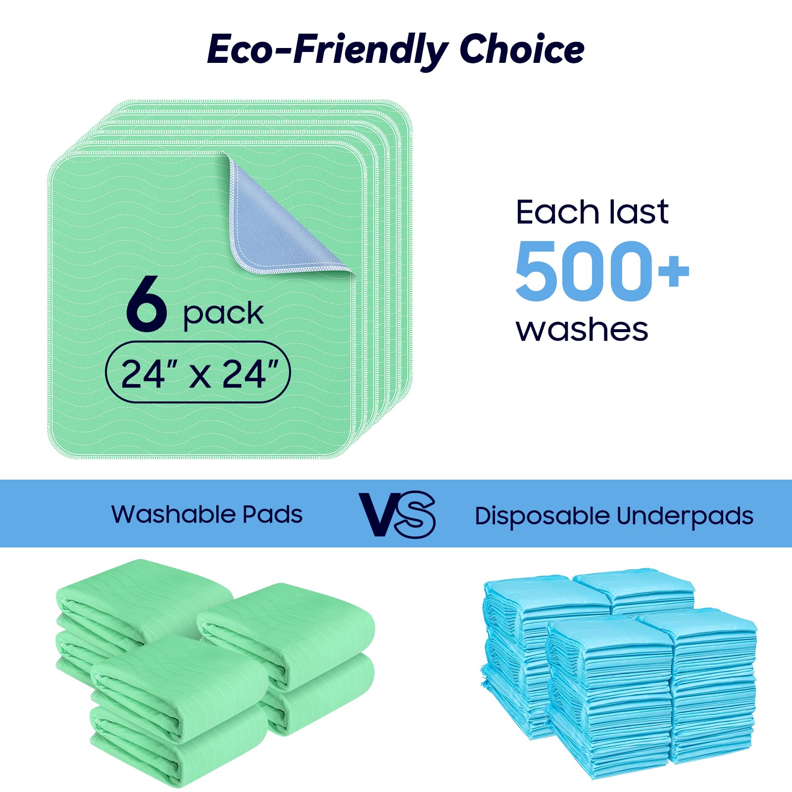 【Eco-Friendly Choice】: Made with premium material, these reusable pee pads with wave-texture sewing and double sewing edge can last more than 500 washes, a cost-efficient and eco-friendly choice compared to those disposable pads.