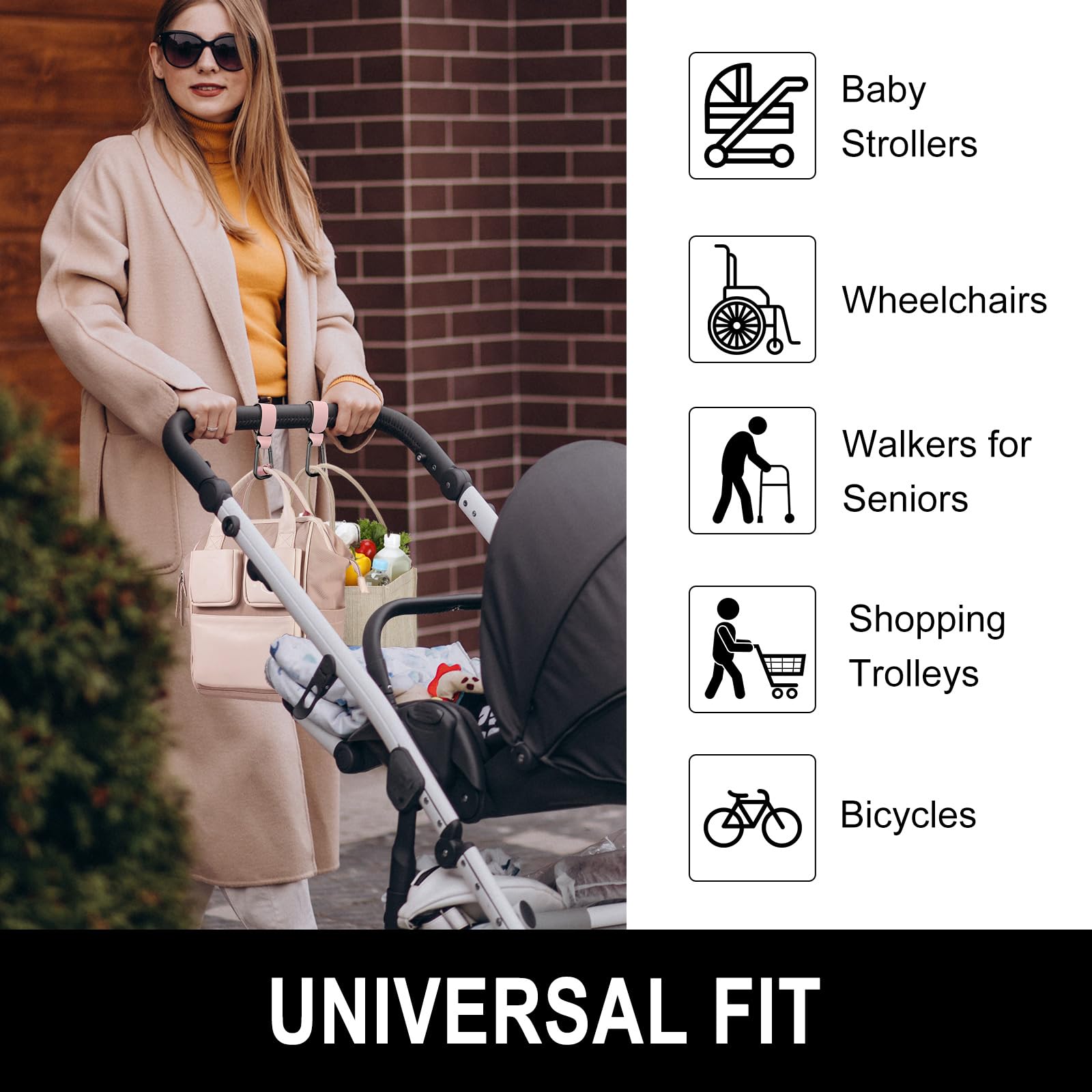 Widely Used: The stroller hook is perfect for wheelchairs, cars, bicycles, walking frames, shopping trolleys, dog leads, and more. Compact and portable size, easy to store in bag or keep hanging on stroller. Widely used in multiple scenarios