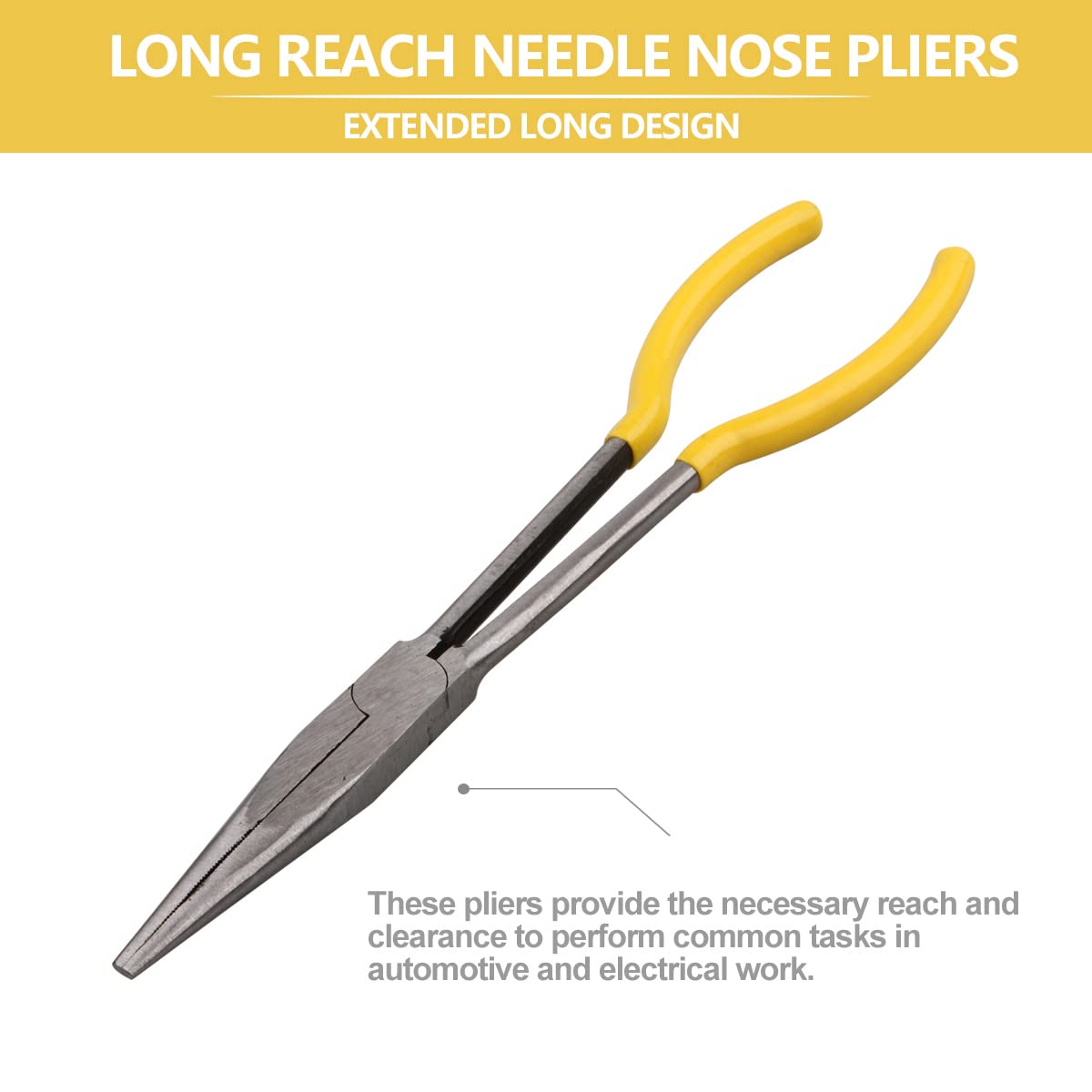 【Extended Long Design】- The extra-long reach pliers measure 11 inches from handle to nose, allowing you to reach places you can't reach with your hands.