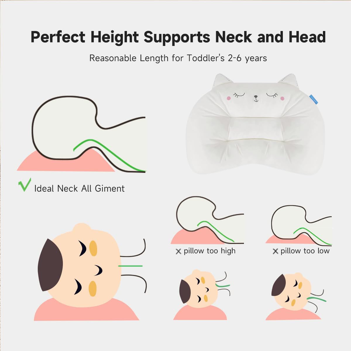 【100% Organic Cotton Pillowcase and Hypoallergenic Filling】– This pillow is made of 100% organic cotton fabric that is super smooth and gentle on your child's sensitive skin. The filling is Oeko-Tex certified and protects against allergens. It is supportive and durable for long-term use.