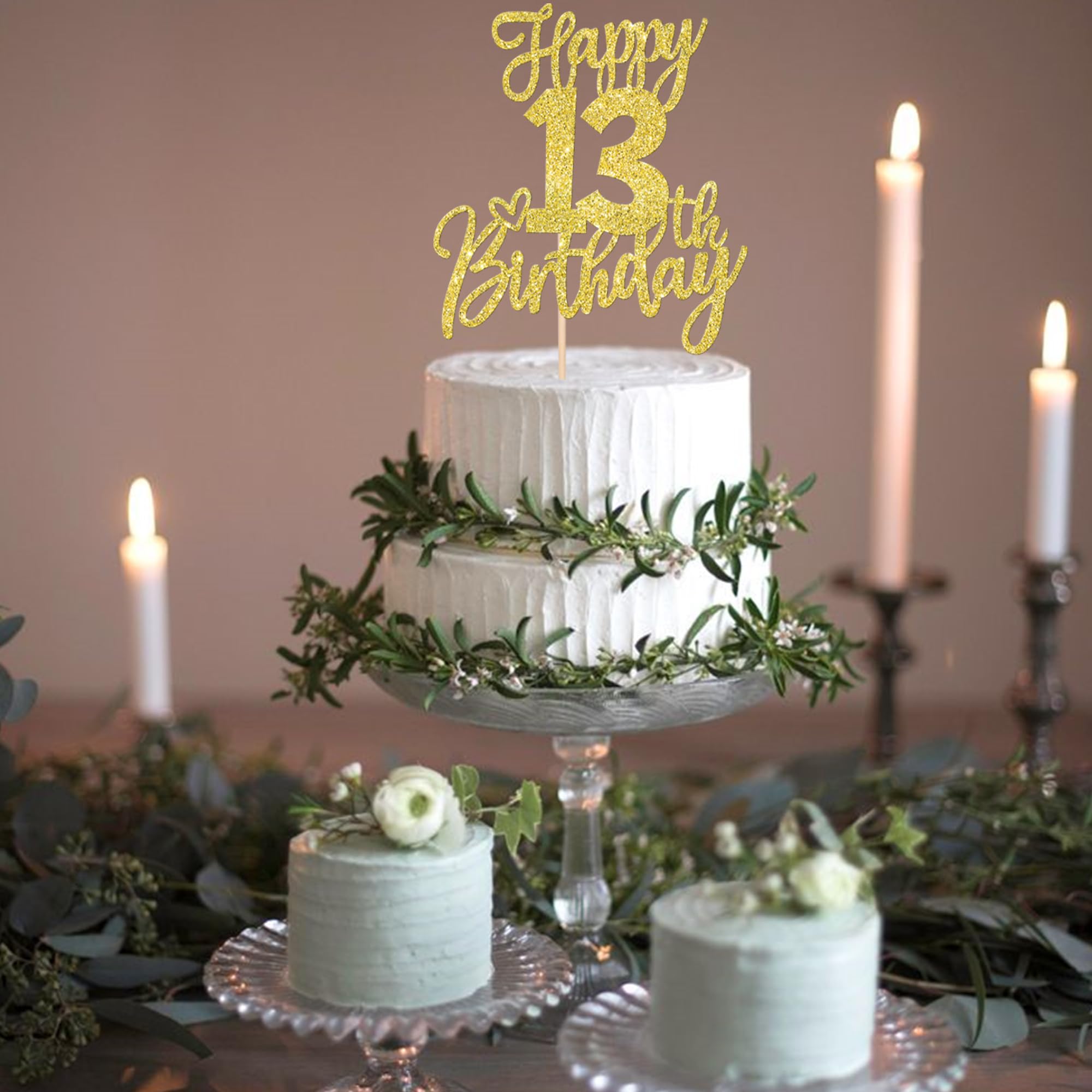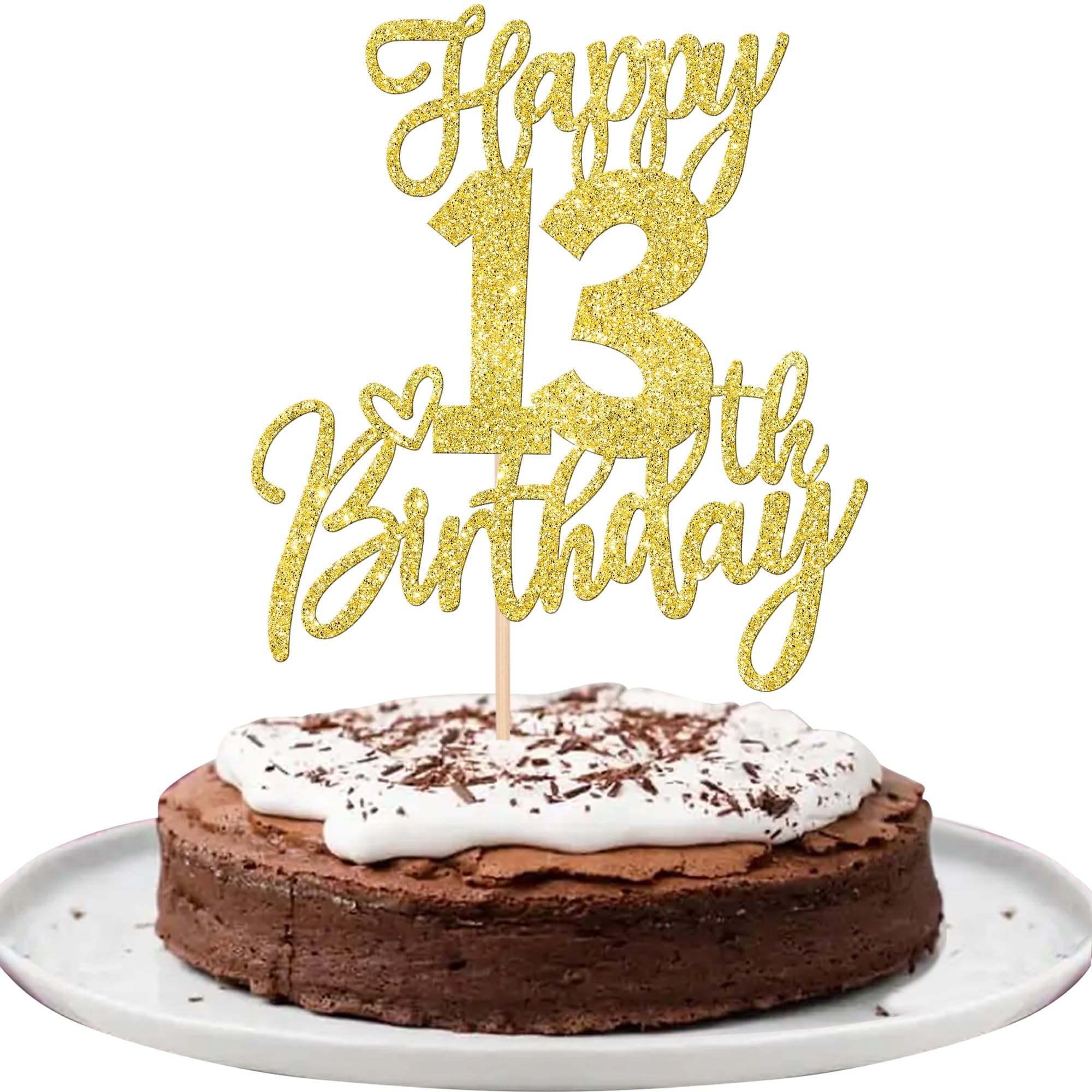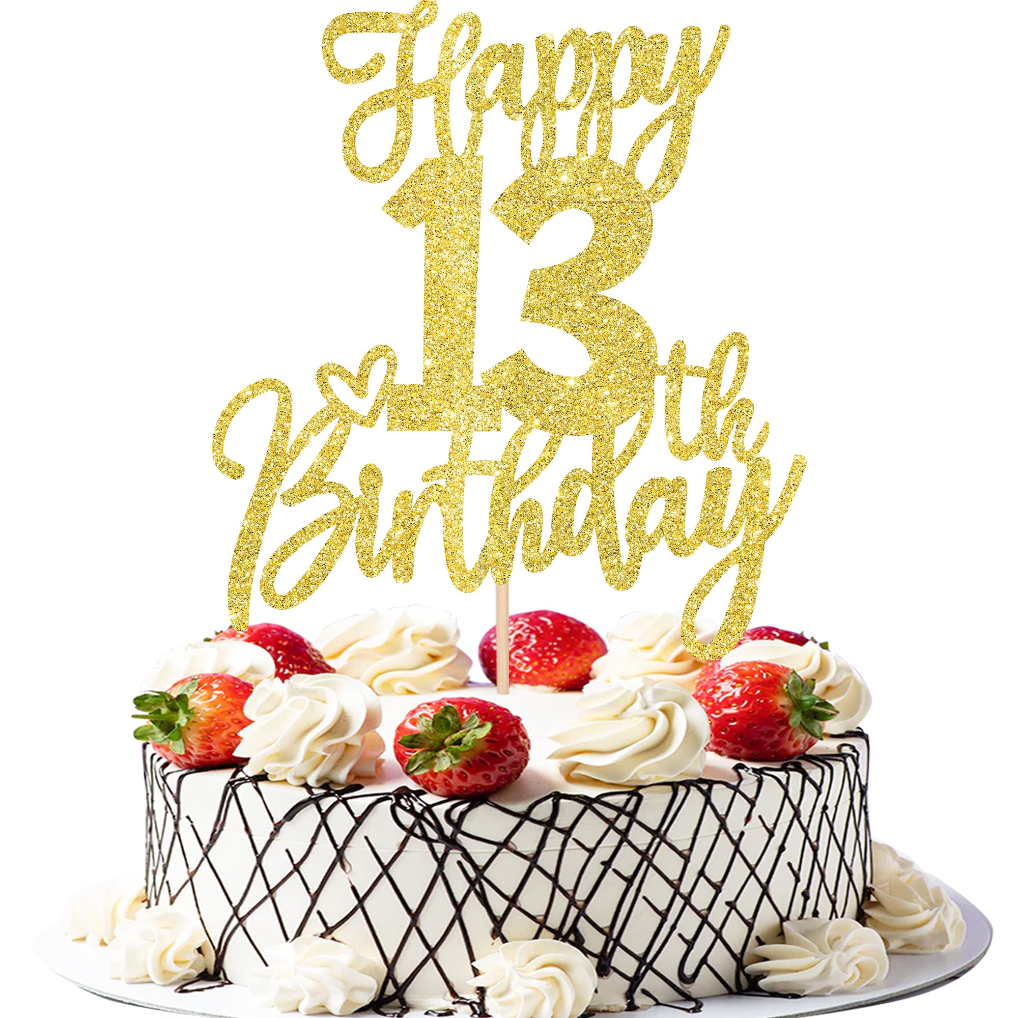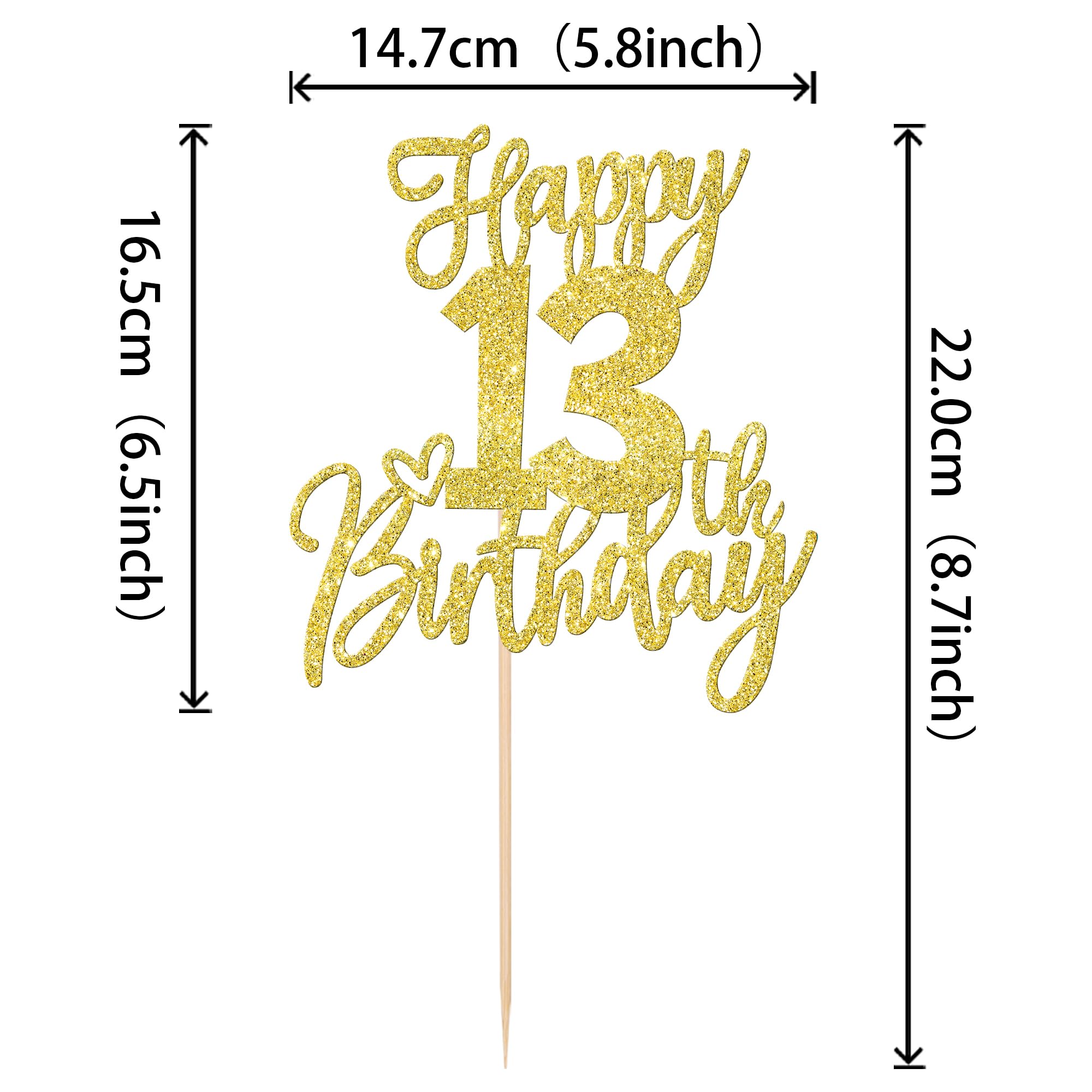 Happy 13th Birthday Cake Topper for Happy 13th Birthday Theme Party Cake Decorations Supplies Perfect for happy 13th birthday theme party, cheers to 13 years theme party, 13th anniversary theme party cake decorations supplies. Pack of 1 pcs. The size is W 5.8 inch * H 8.7 inch / W 14.7 cm * H 22 cm ( with stick ) Made of high quality paper card stock and food grade sticks,thick and sturdy. This cake topper is one side glitter, another side is white, and this is intended for decoration only, please do not put them in oven or microwave. If the item you received has any defects, please contact us for refund.we will deal with it within 24 hours.