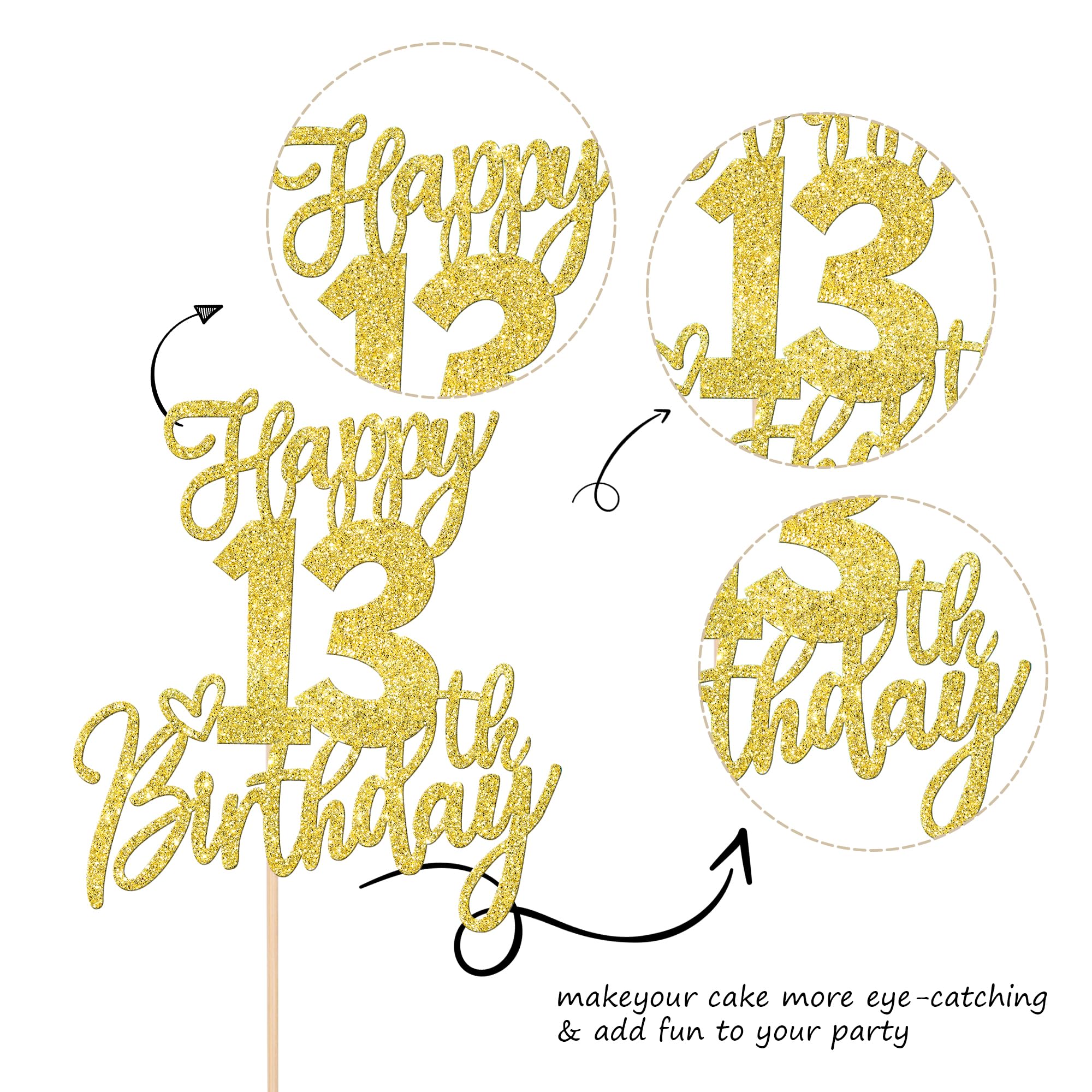 Wide Usages ! The happy 13th birthday cake topper is perfect for 13th birthday theme party,cheers to 13 years theme party, 13th anniversary theme party cake decorations,it can make your cake more attractive and bring the fun to your party.You can also apply them for ice cream, fruits, cookies and other desserts.
