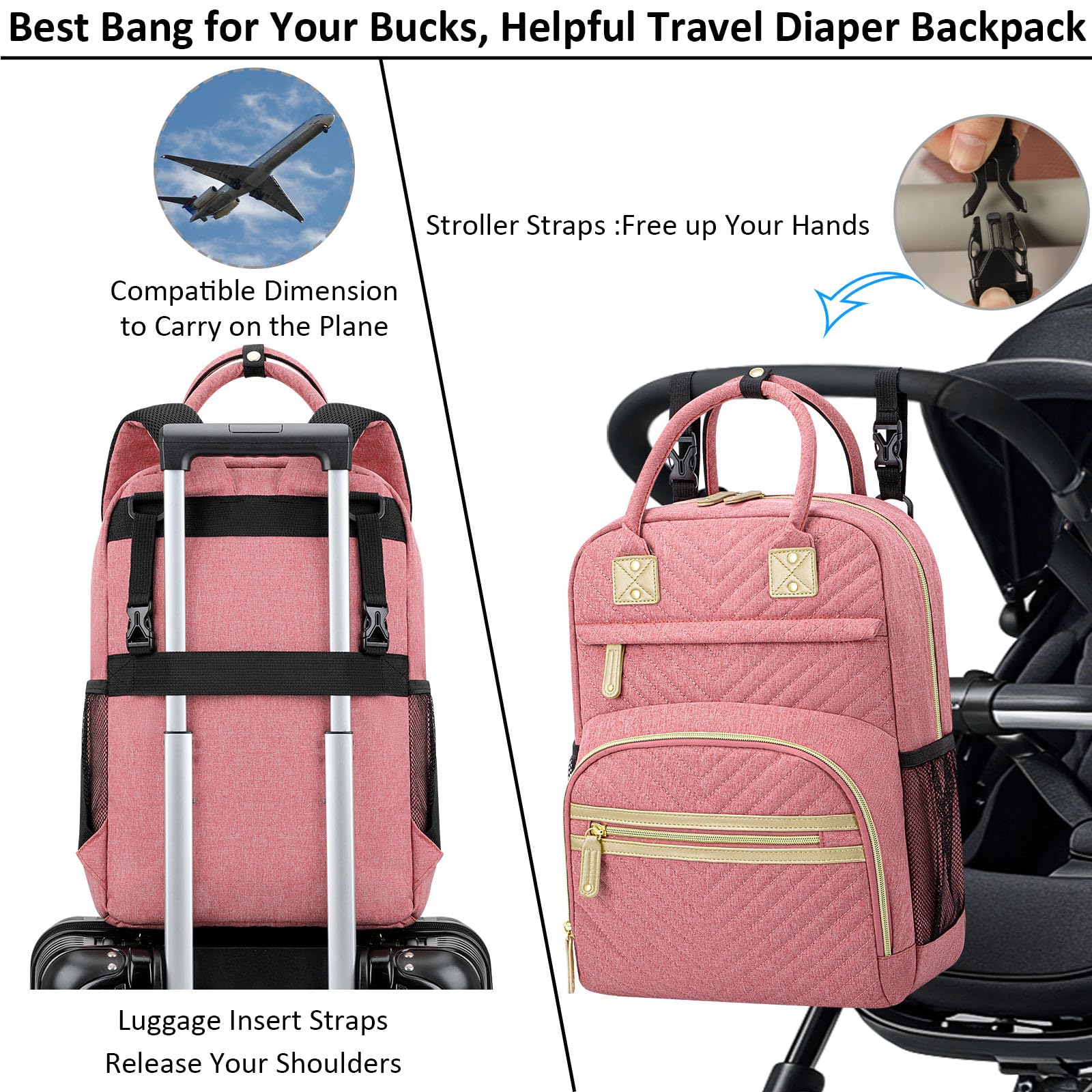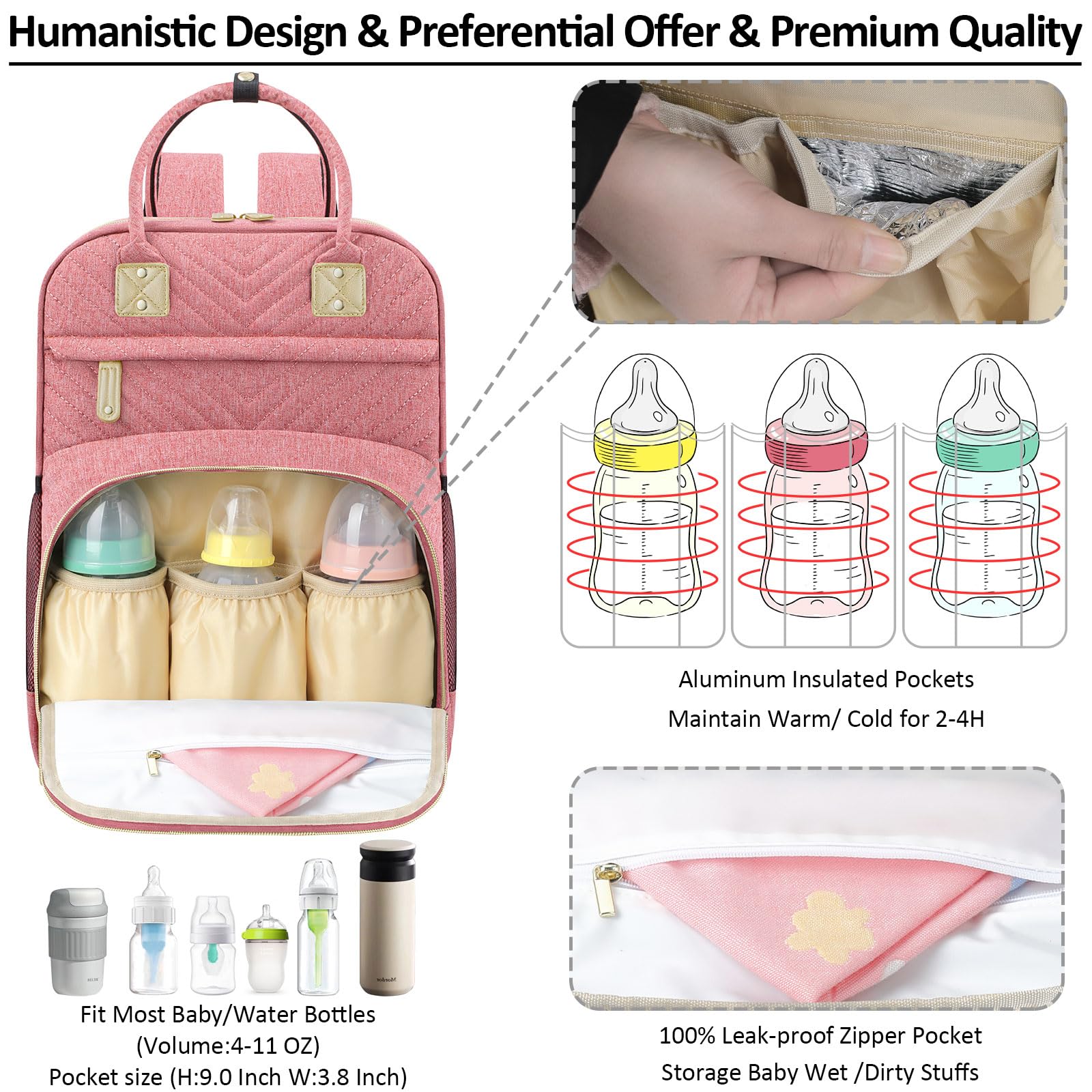 Impressed With Overall: Tenot baby backpack diaper bag only 1.54 lbs, but comes with 10 pockets and spacious to keep diapers, breast pump, wipes, formula, toys, cell phones, baby bottles, books, laptop, clothes well organized; The quality is top-notch, strong zipper, sturdy stitching, detachable stroller straps; Especially has 3 insulated bottle pockets to keep warm/cold 2-4 H; This makes diaper bag purse very durable and will not easily fall apart; A good bet baby boy baby girl diaper bag