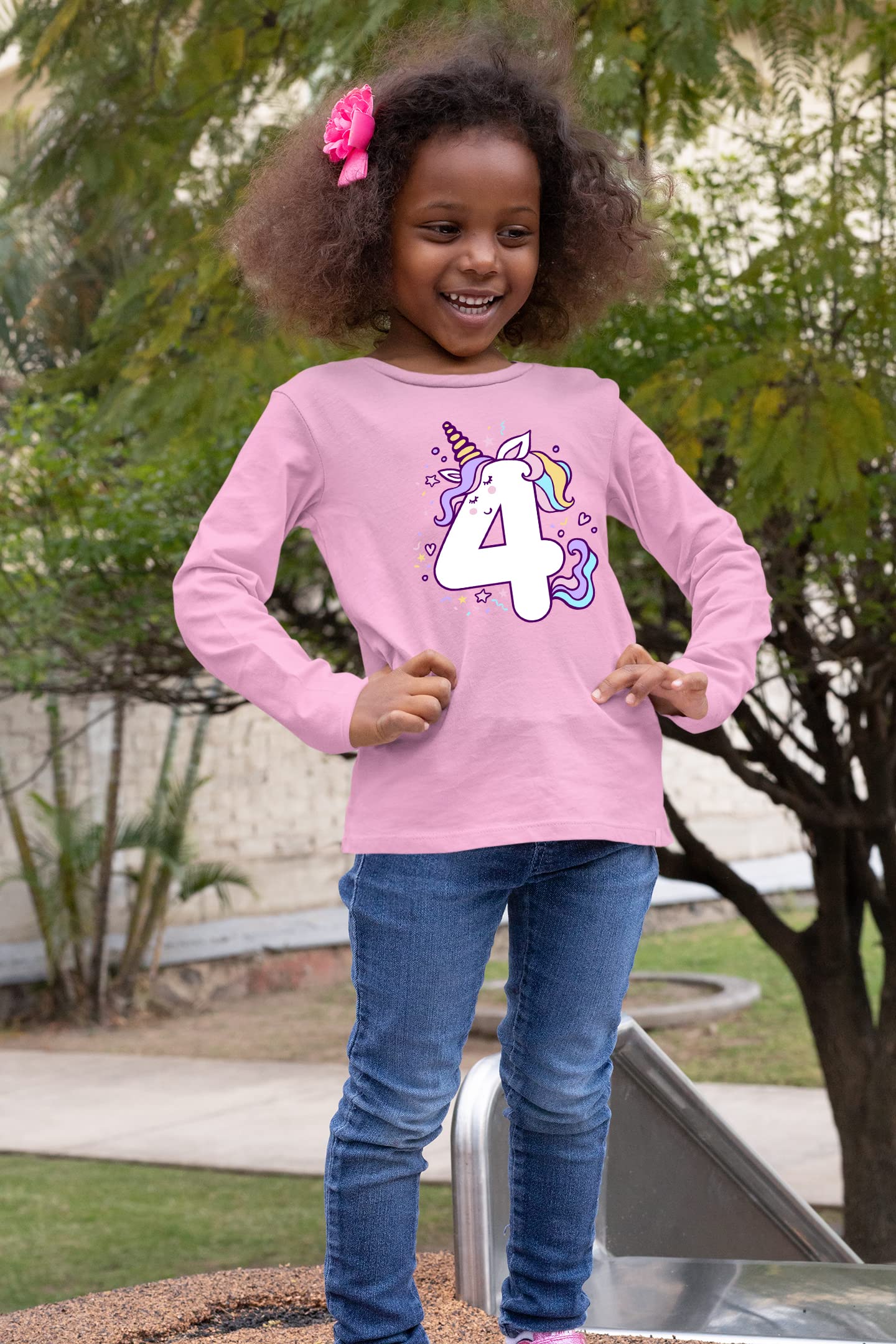 This girl unicorn 4th birthday shirt is designed for age appropriate fit, so no need to buy big.