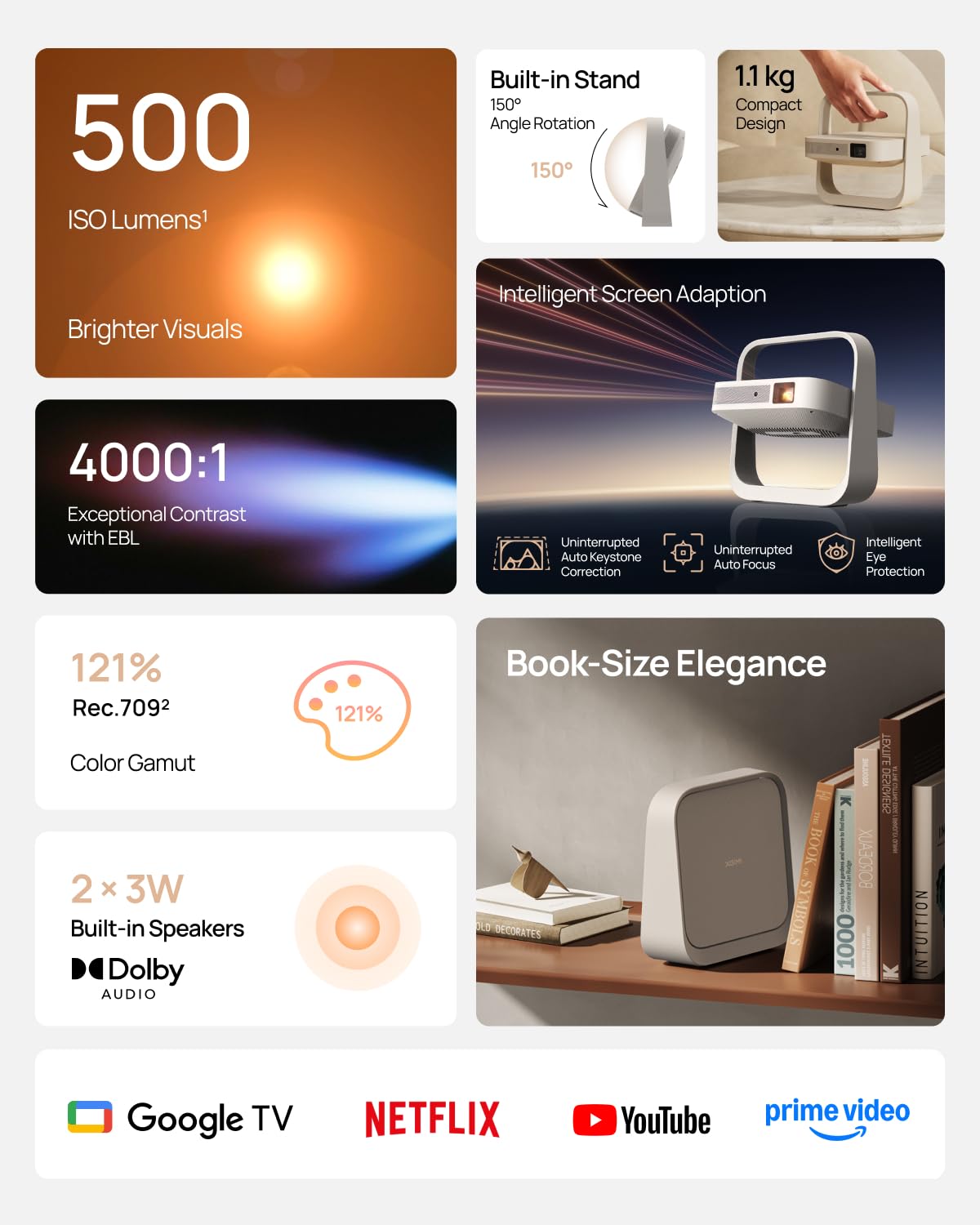Google TV with licensed Netflix: Enjoy the latest blockbusters and must-watch shows on your Elfin Flip Plus. No setup needed — just power on and start watching!