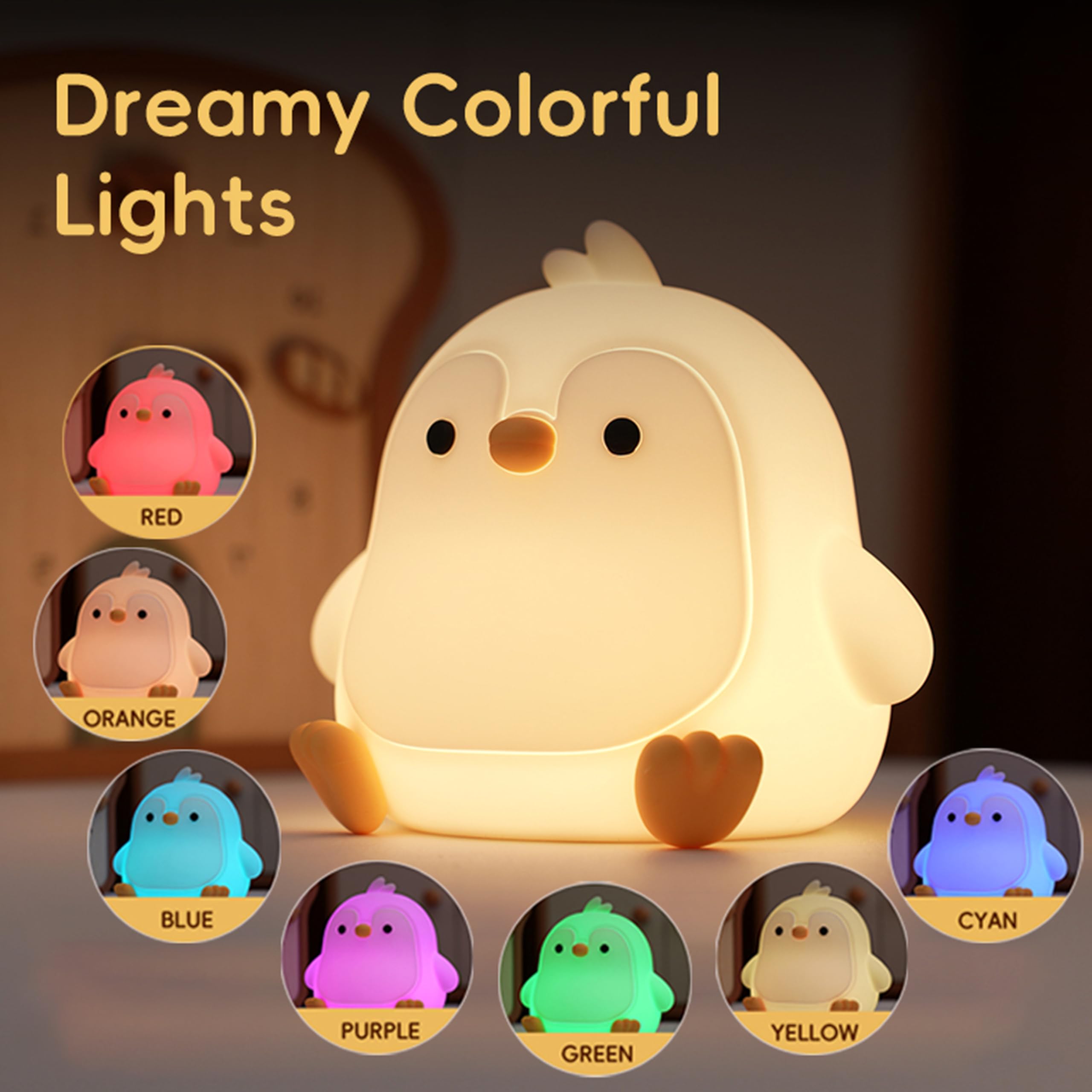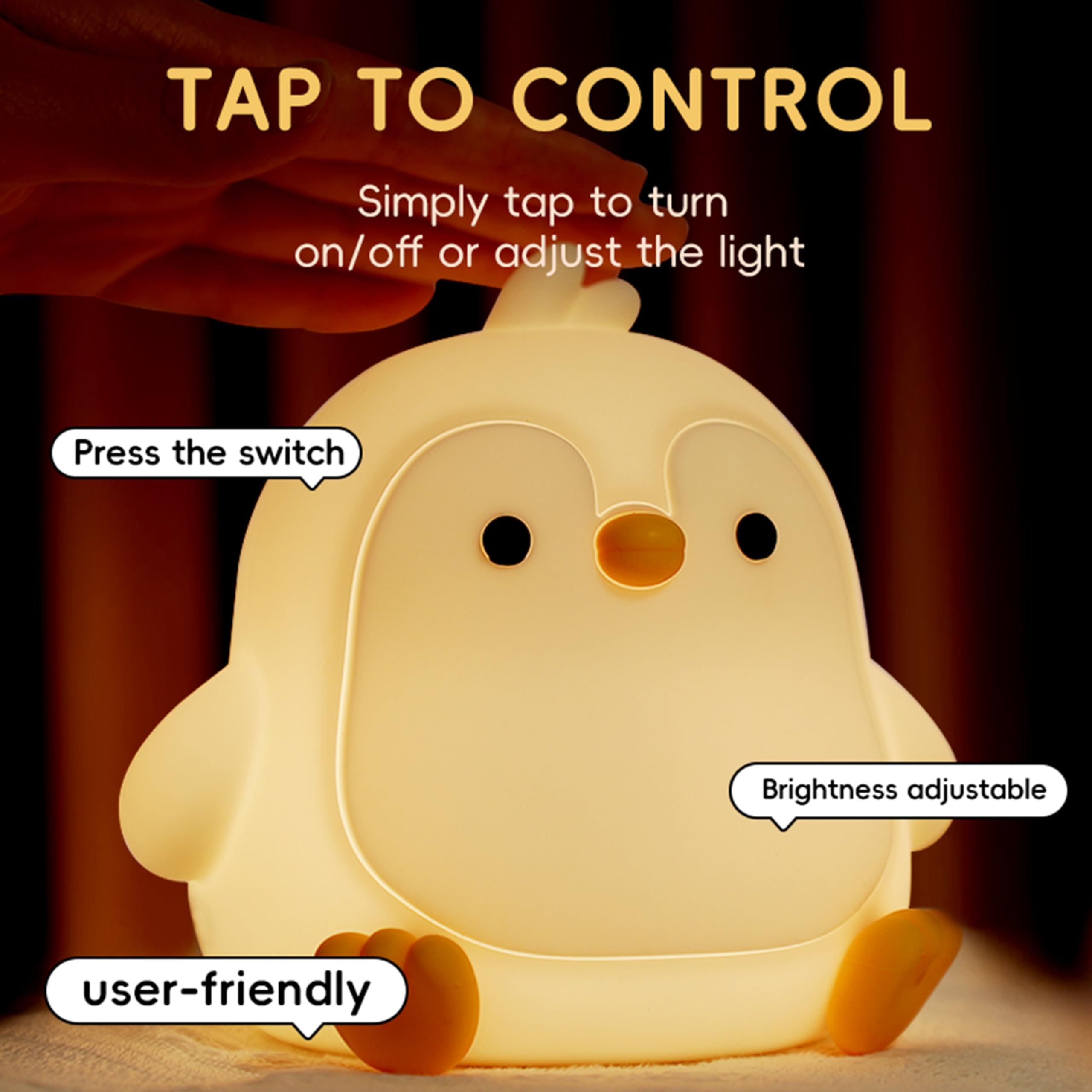 【Funny Gift & Wide Use】This penguin night light is not only a bedside lamp for nursing, reading or nighttime safety, but also a handy camping light, emergency light and flashlight. Whether it's for a friend, child or yourself, it's the perfect gift for birthdays, Christmas, Halloween, Valentine's Day or housewarming parties. Whether it's for home, office, university dormitory, or party decorations, this adorable desk lamp will bring joy and practicality to any space! Package includes: 1* penguin night Light, 1* USB charging cable, 1* user manual.