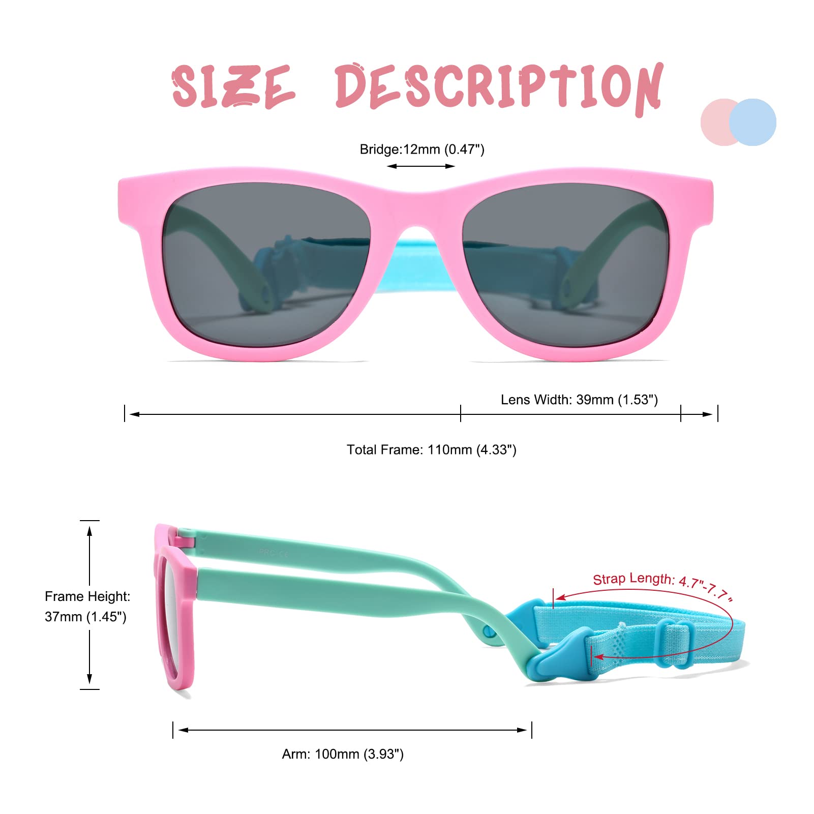Full UV400 protection polarized lenses ensure absolute maximum protection from UV rays for babies