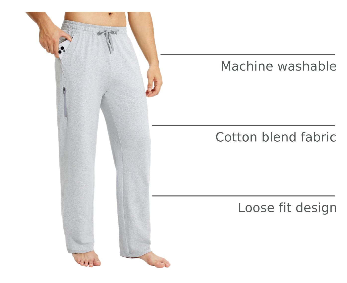 BALEAF men's open bottom pajamas yoga sweatpant provides a comfortable and free sports experience, perfect for yoga, running, hiking, sleep, lounging etc