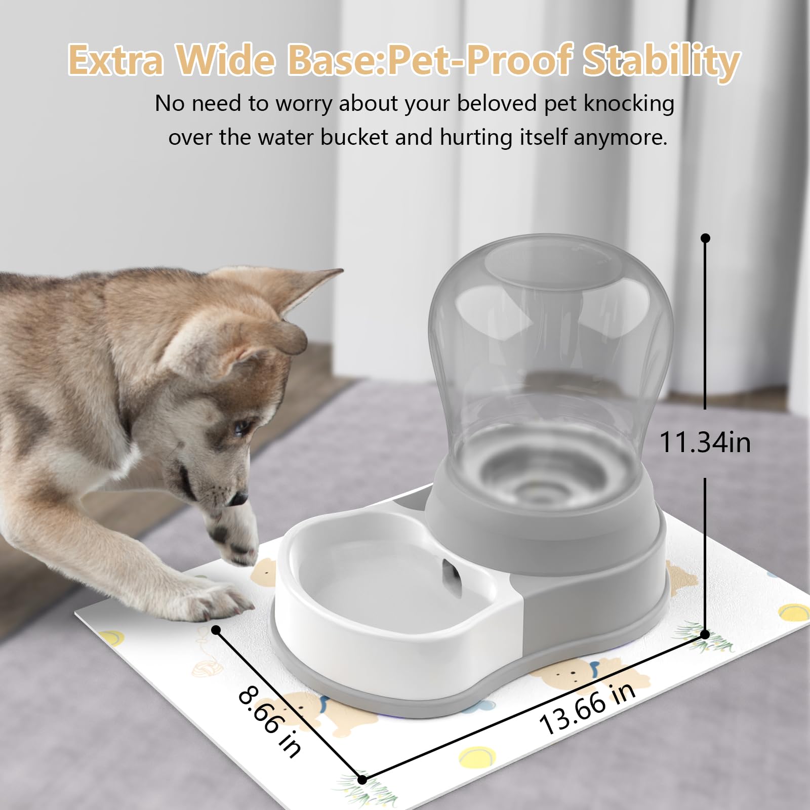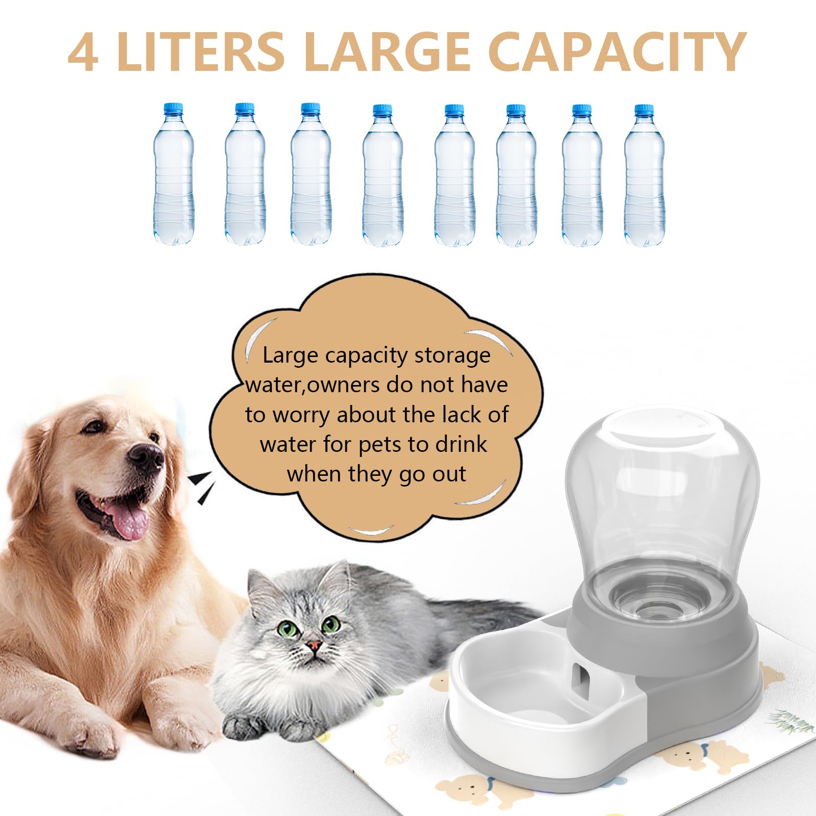 【Large Capacity】Pet water dispenser is suitable for both small and large cats and dogs. It slowly pours water into the bowl through gravity, ensuring a continuous supply of fresh water. With a 1gallon capacity, it can guarantee your pets' daily water intake, making it perfect for pet owners who are on the go or have busy schedules. You won't have to worry about your pets being without water.