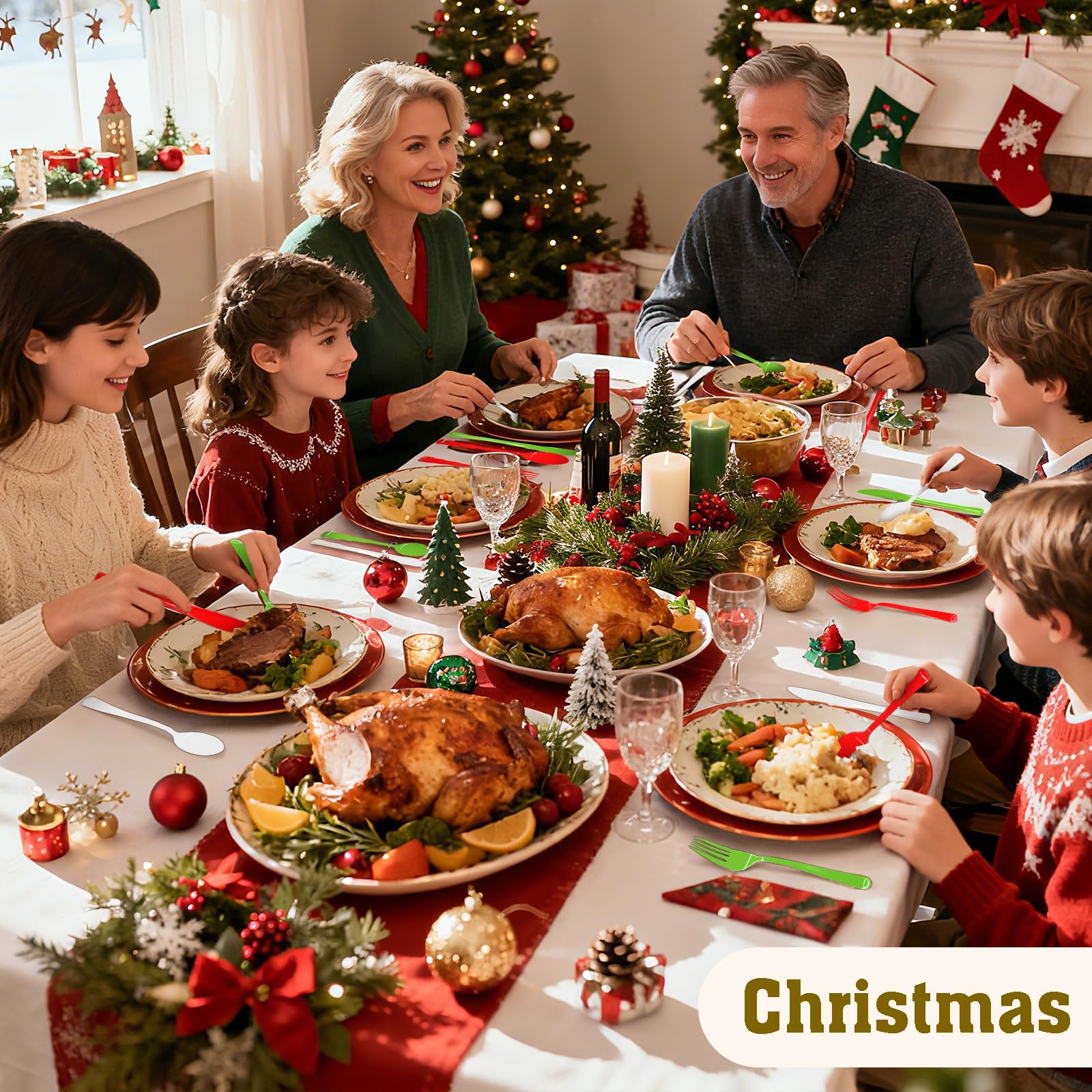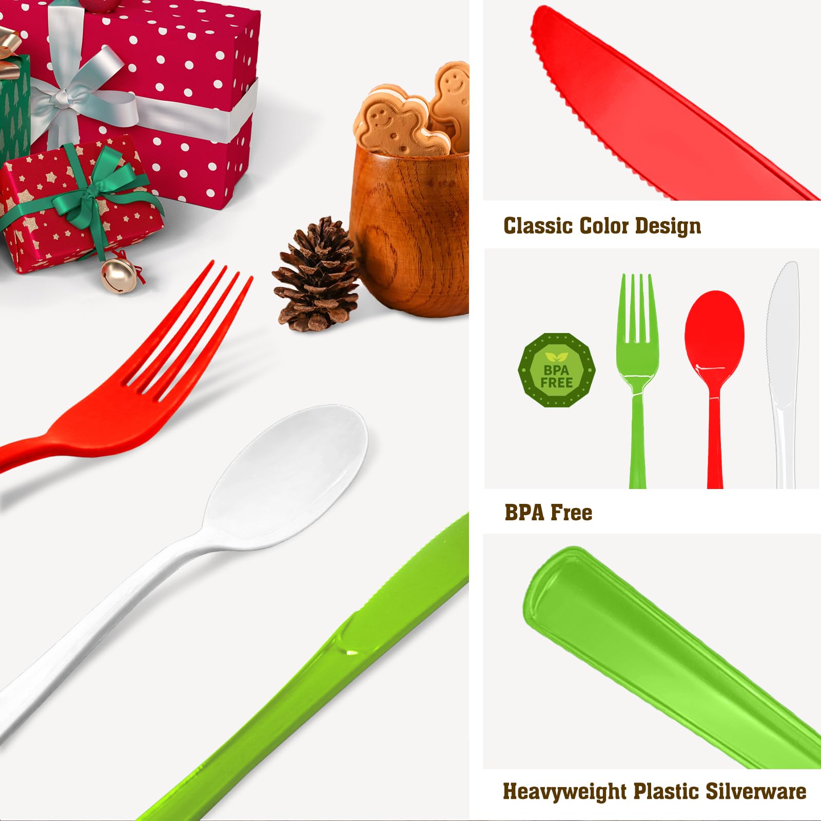 【Perfect for Christmas Decorations】: These Christmas utensils are perfect for Christmas, birthday party, family gathering and more. As family and friends gather to celebrate this special day, decorate your table with plastic cutlery to create a fantasy, cheerful atmosphere.
