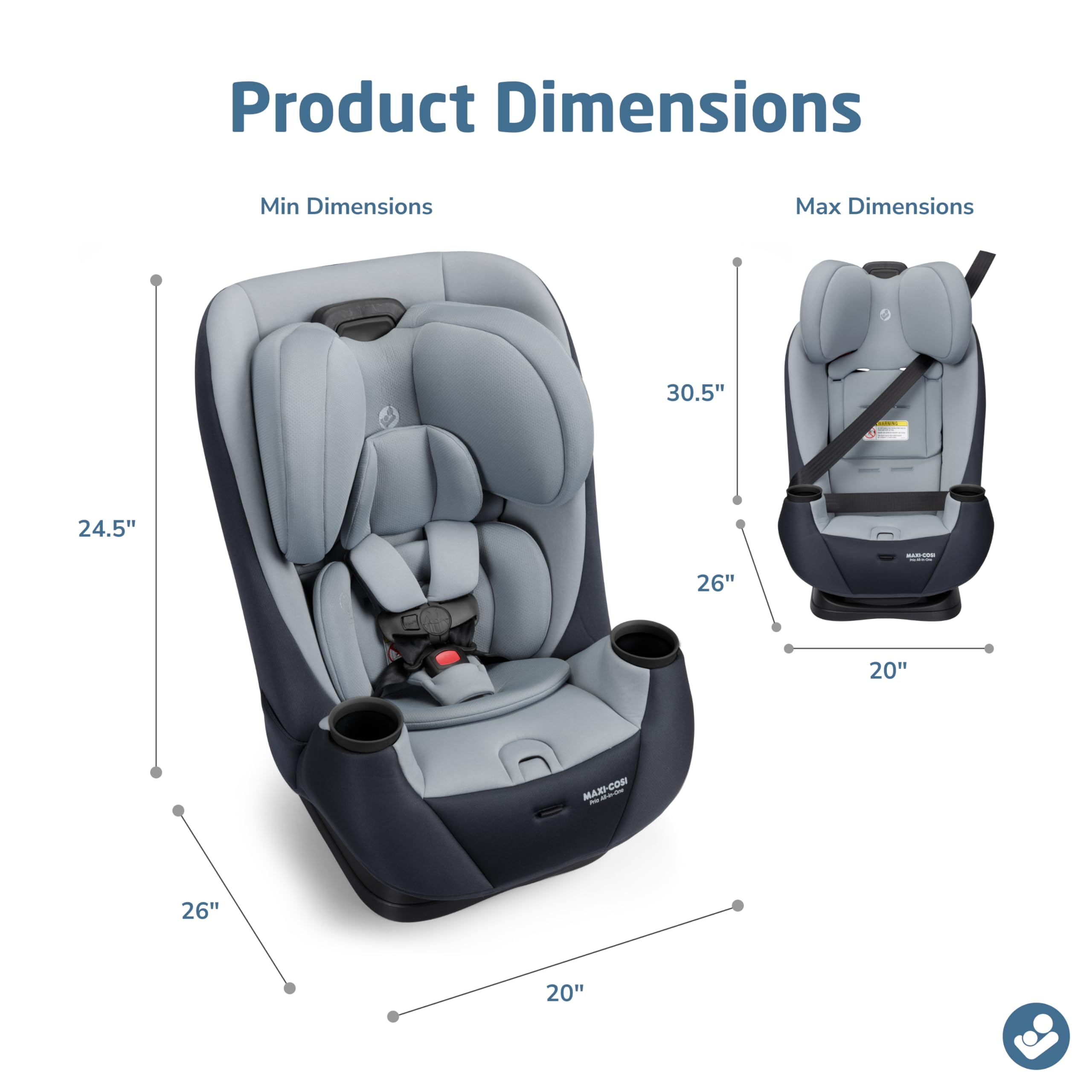 Keep your little one snug and secure from the very first ride home with the Pria All-in-One Convertible Car Seat. Made to keep up with your growing family: rear-facing car seat (540 lbs., 19"40"), forward-facing car seat (30-65 lbs., 34.4"- 49"), and belt-positioning booster seat (40-100 lbs., 43.4"- 52"). Pria is designed for your childβs comfort but includes conveniences for you as well. Raise the integrated QuikFit headrest and harness system with 1 hand to properly fit your child when they seem to grow overnight. ReclineFit provides 3 reclining positions for a relaxing ride, plus an easier fit in your car. The infant pillow and cushions provide extra support and can be easily removed without re-threading the harness. Key to the design of this grow with me car seat are the premium fabrics. The Pria All in One car seat is designed with EcoCare, our future-friendly, 100%-recycled fabric made from plastic bottles. The yarn produced is soft, comfortable, and breathable perfect for your little one. And our soft, plush PureCosi fabric is made without added fire retardant treatments, which is better for both your child and our planet. All fabrics are machine-washable and dryer-safe. This all-in-one car seat is ready to journey through the years ahead as you create memories with your little one. Engineered and tested to meet or exceed federal safety standards. Meets federal Side Impact standard. Actual fit may vary. Not all children will comfortably fit in the seat for the full weight and height ranges listed.