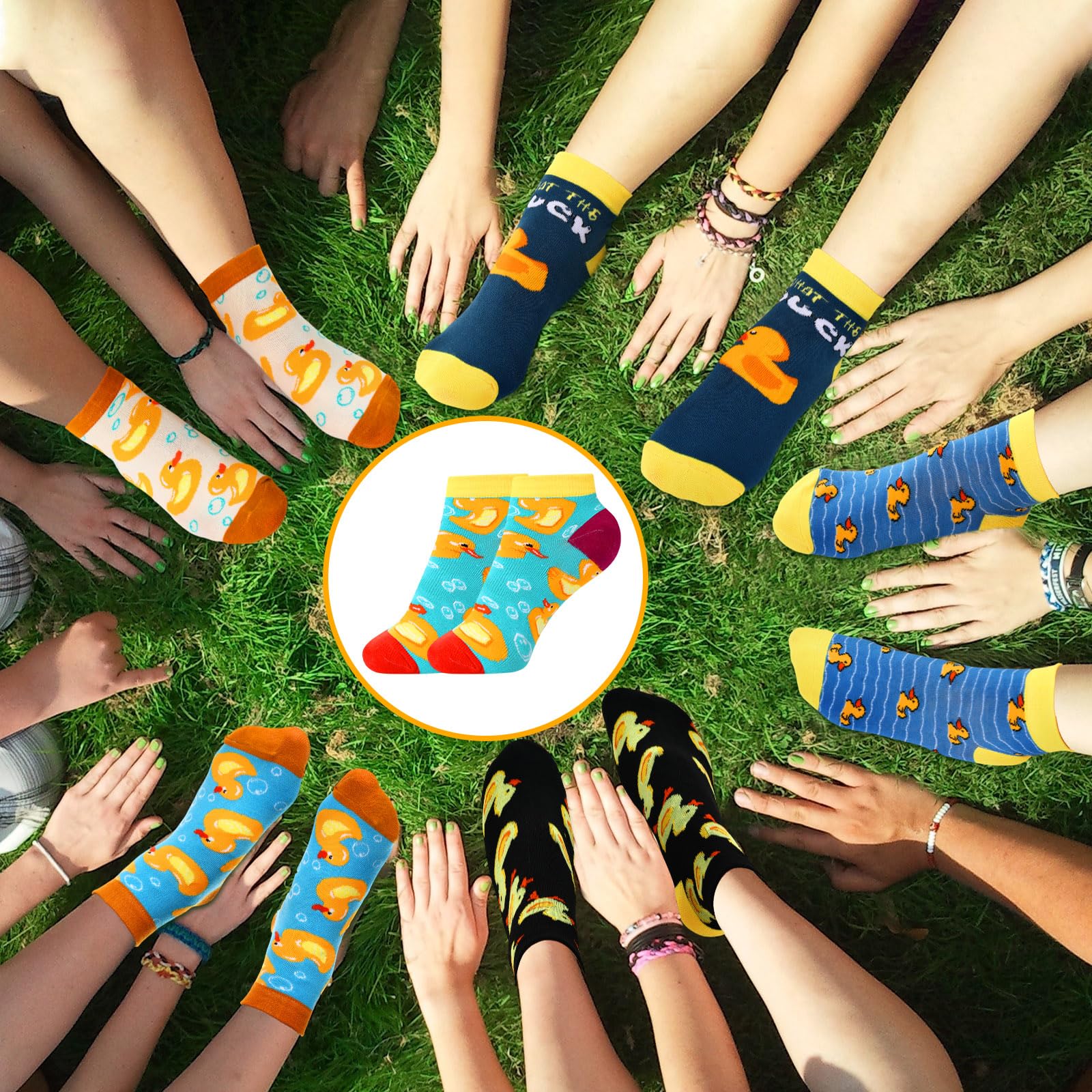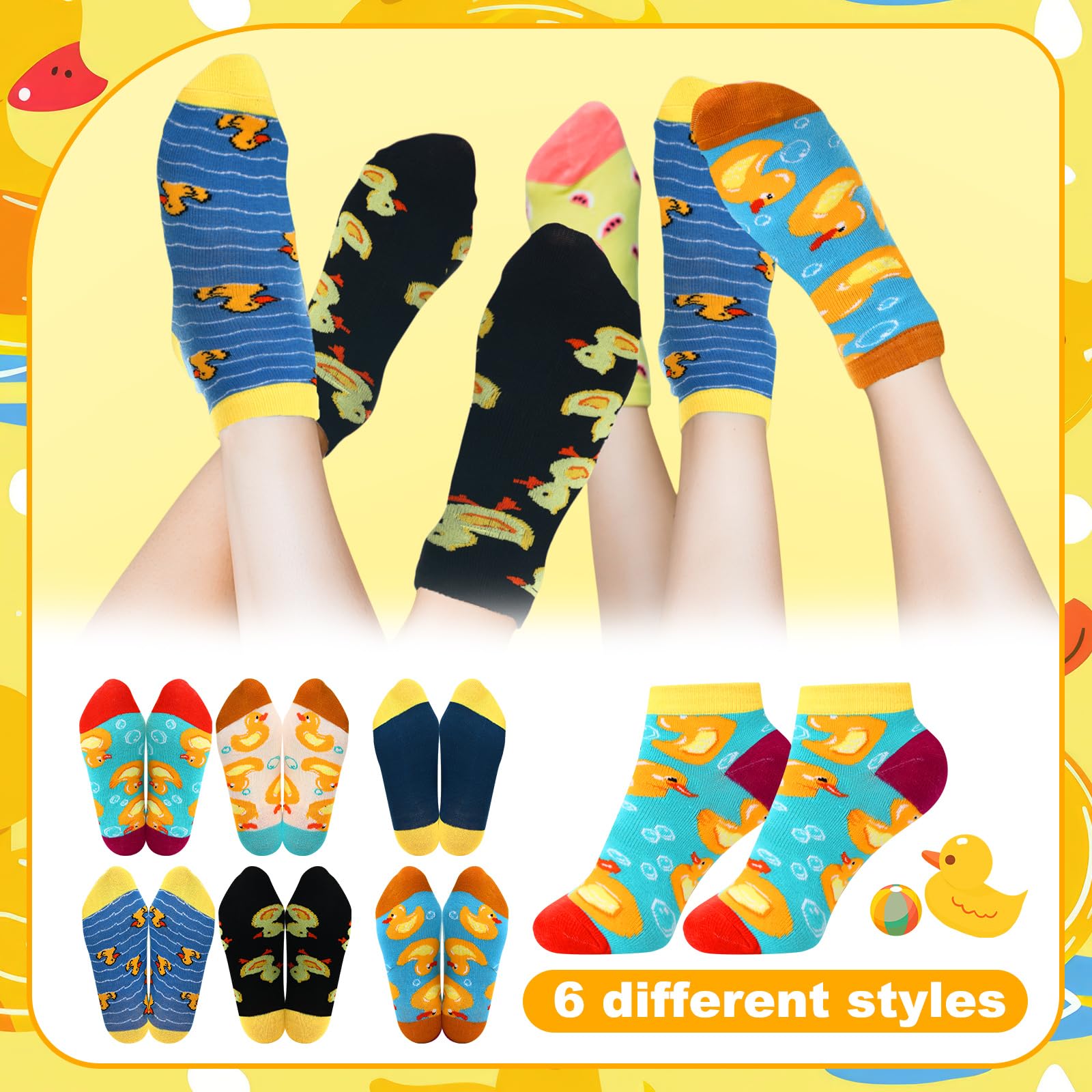 Exquisite Design: our duck socks are designed in 6 colors, different styles of yellow duck patterns, dotted with ripples and so on; We have printed interesting copywriting on the soles of the feet to express our love for ducks