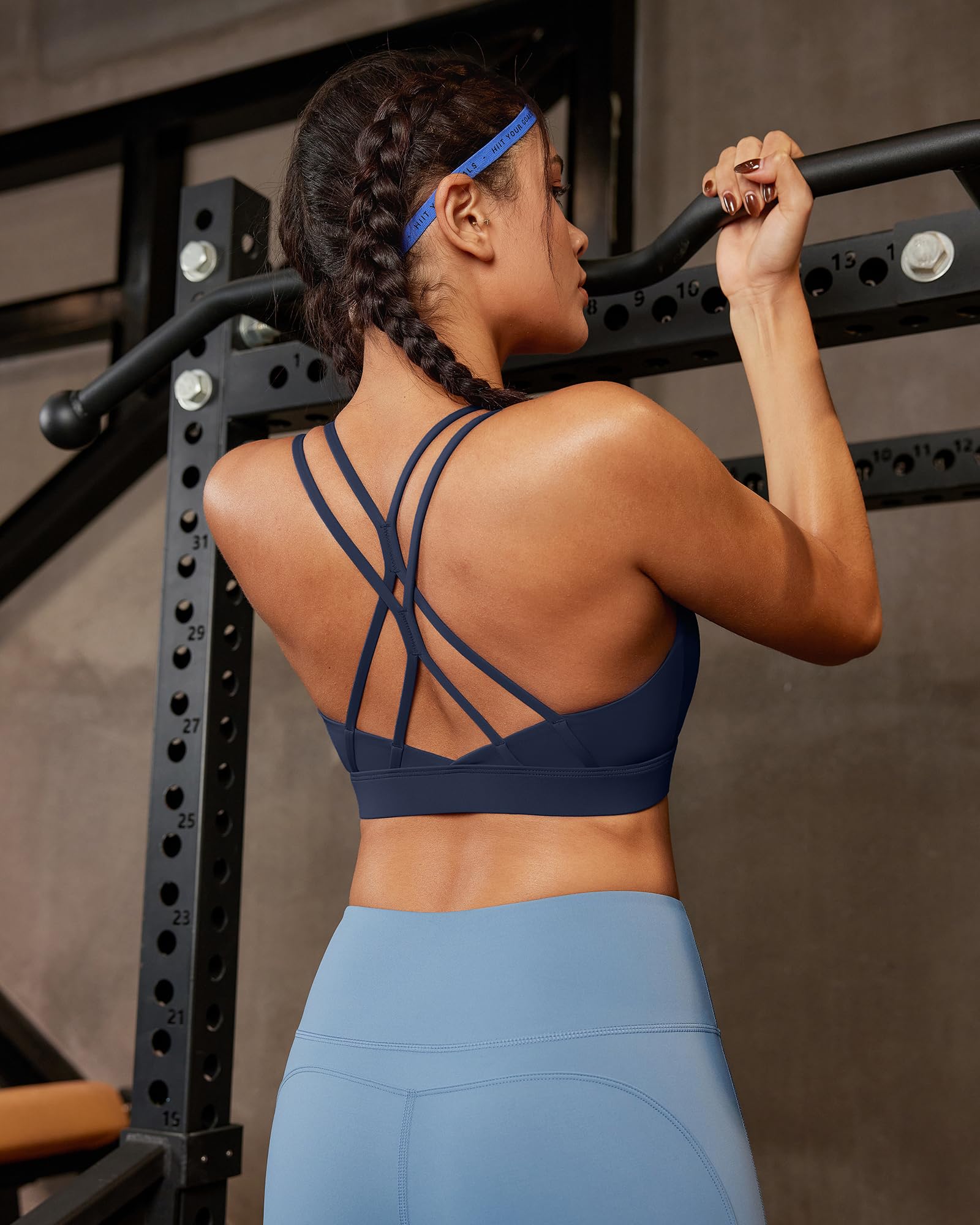 CRISSCROSS-BACK SPORTS BRA:RUNNING GIRL sports bras for women detailing gives the womens sports bras with Crisscross its signature style.But it doesn't just look good,it's hard working.And the running sports bra for women wrapped in durably soft performance stretch fabric keep you comfy and supported.The cotton-like meterial,soft and comfortable to wear.High support sports bras for women let you twist with ease,running bras for women high impact design offers a extra back support.