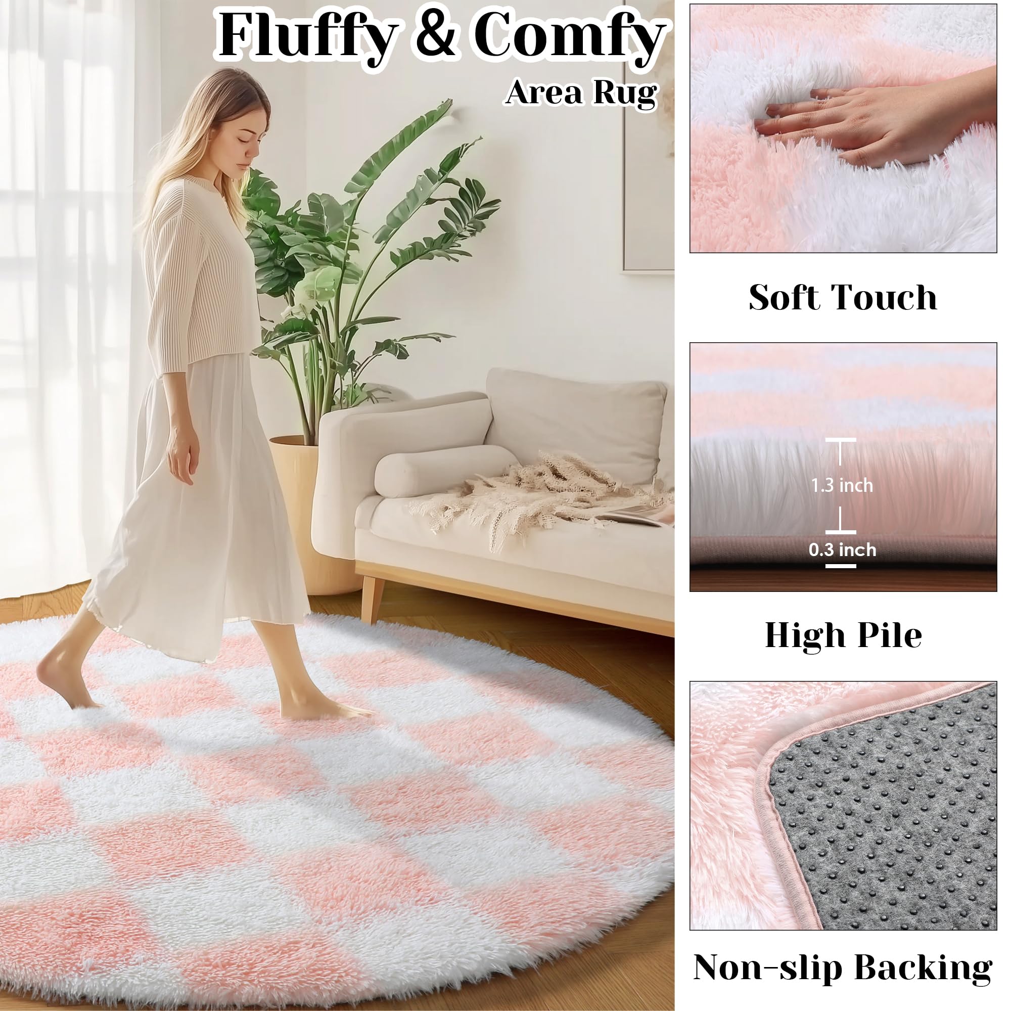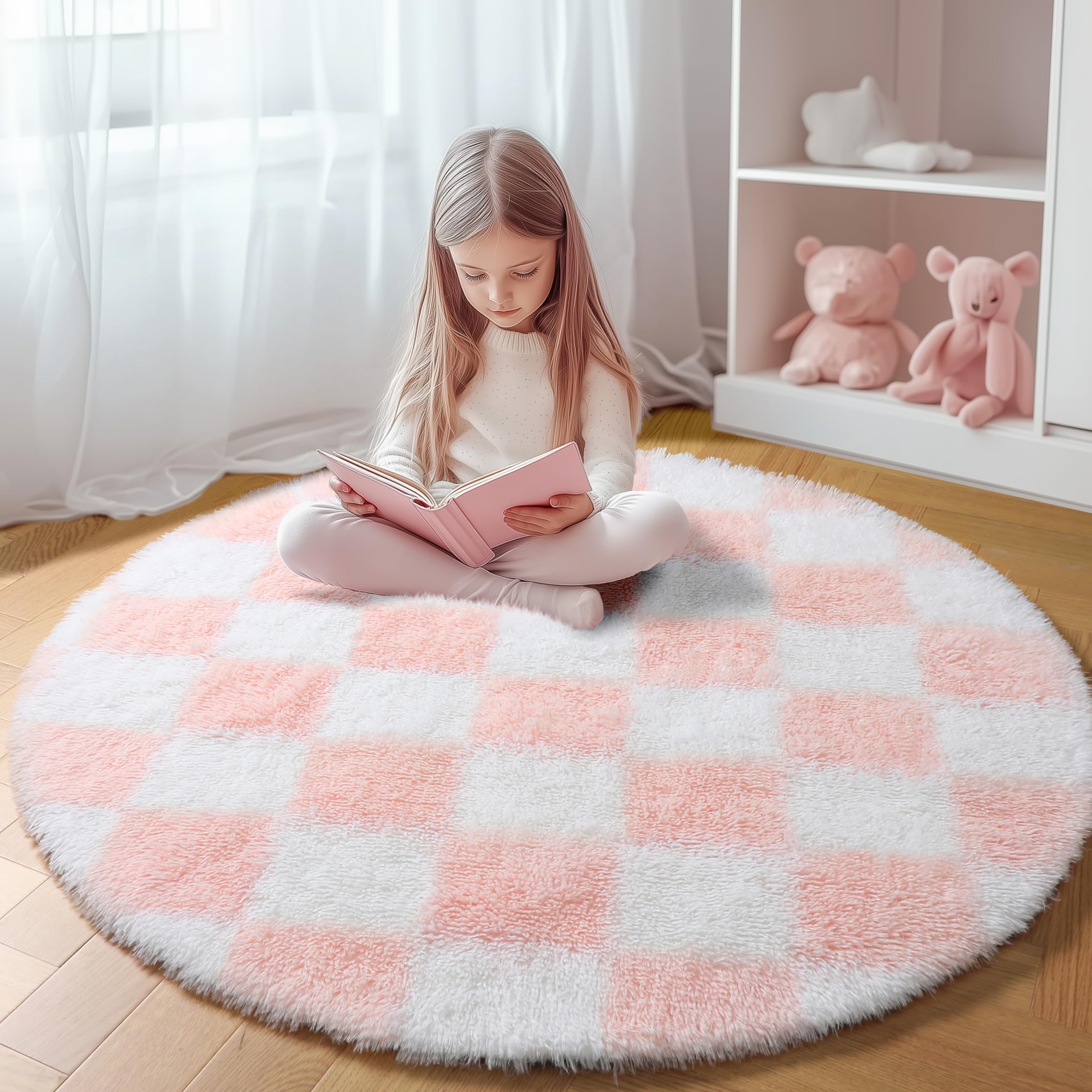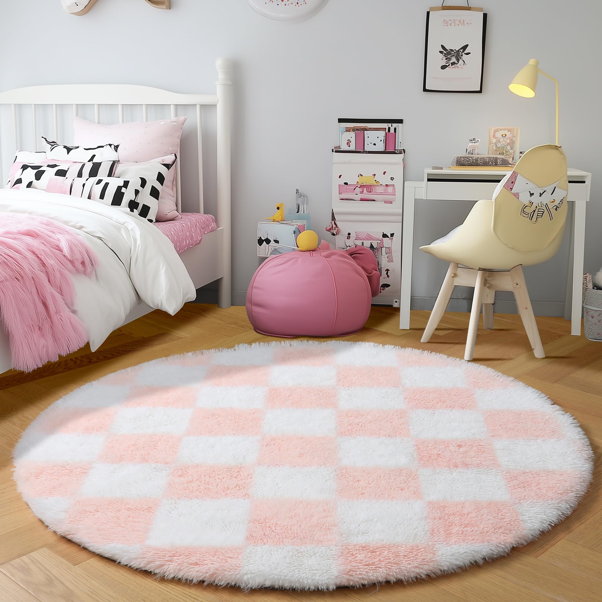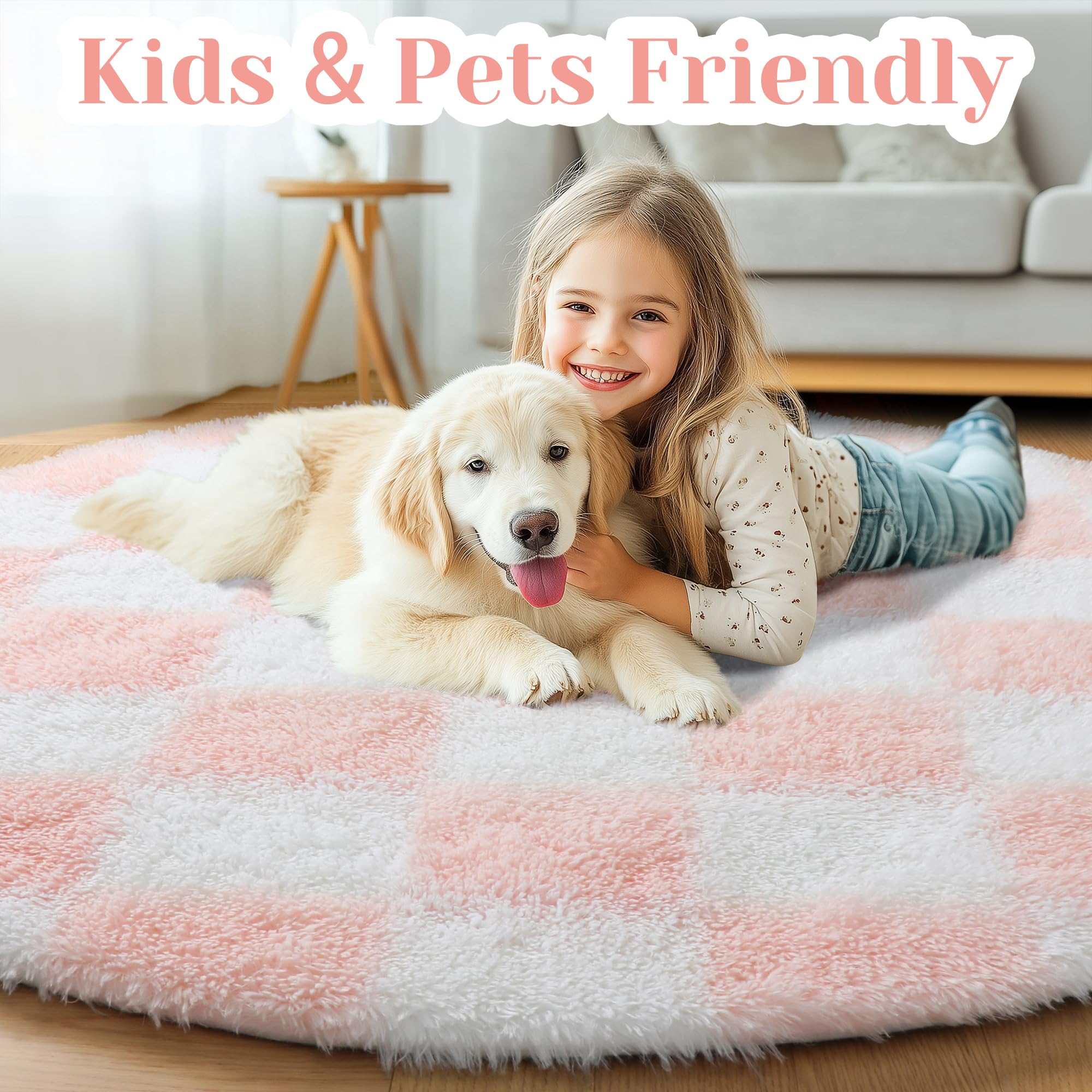 Modern Design -- KICMOR white and pink round rug design is inspired by Checkerboard (date back to the 15th mid-century). It's a classic style that never goes out, suitable for creating aesthetic and elevate your space, adding a touch of personality to your room and impress your guests.