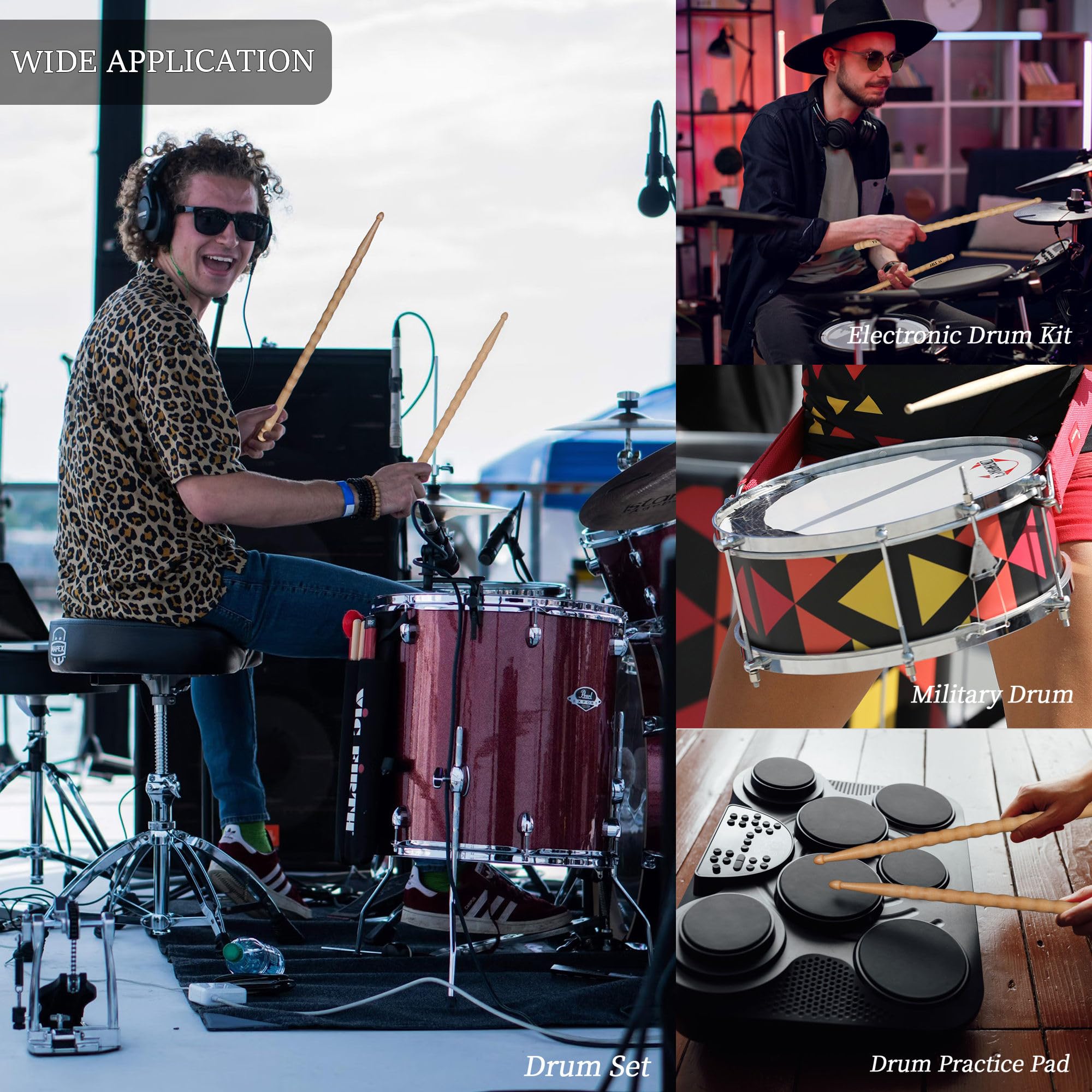 【Strong & Durable Drum sticks】- Made of high quality maple wood, these drum sticks offer exceptional strength and durability, enduring the most intense drumming practice or performance.