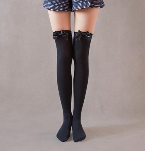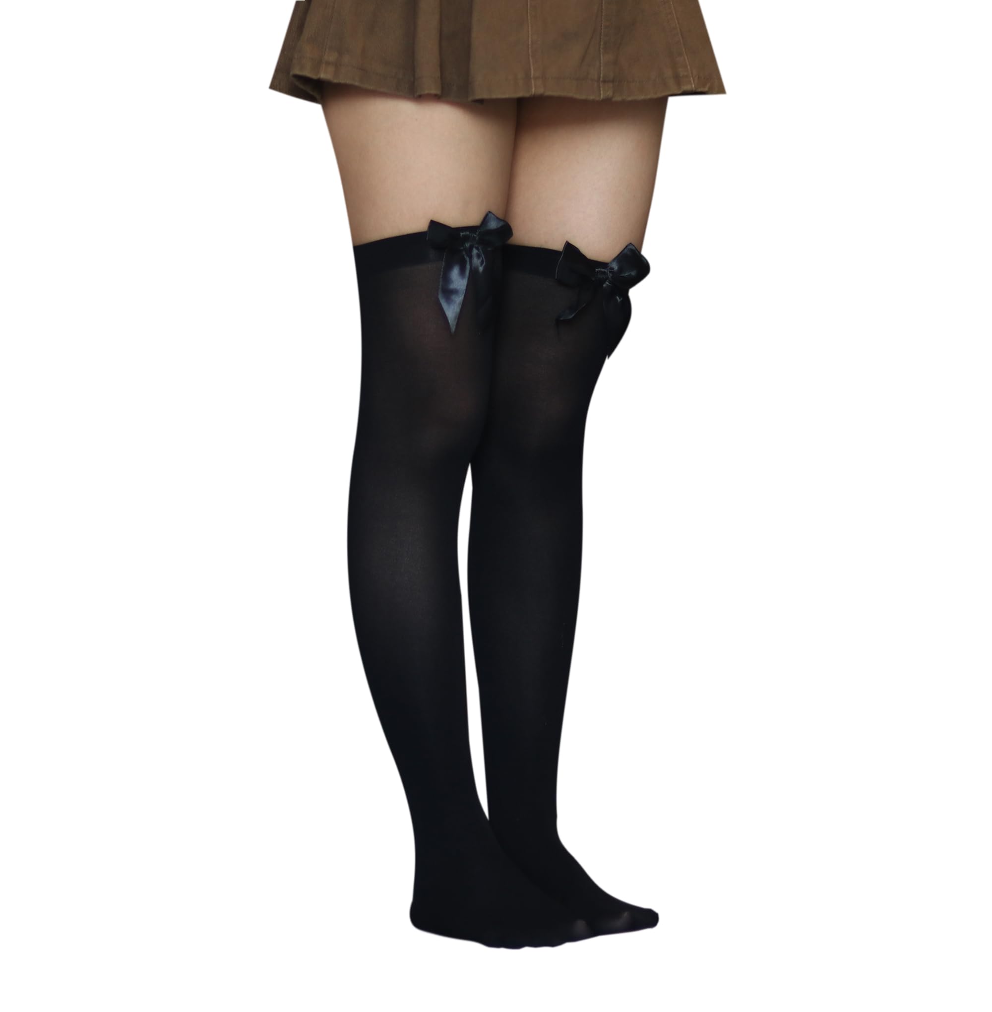 Opaque thigh highs stockings with satin bow