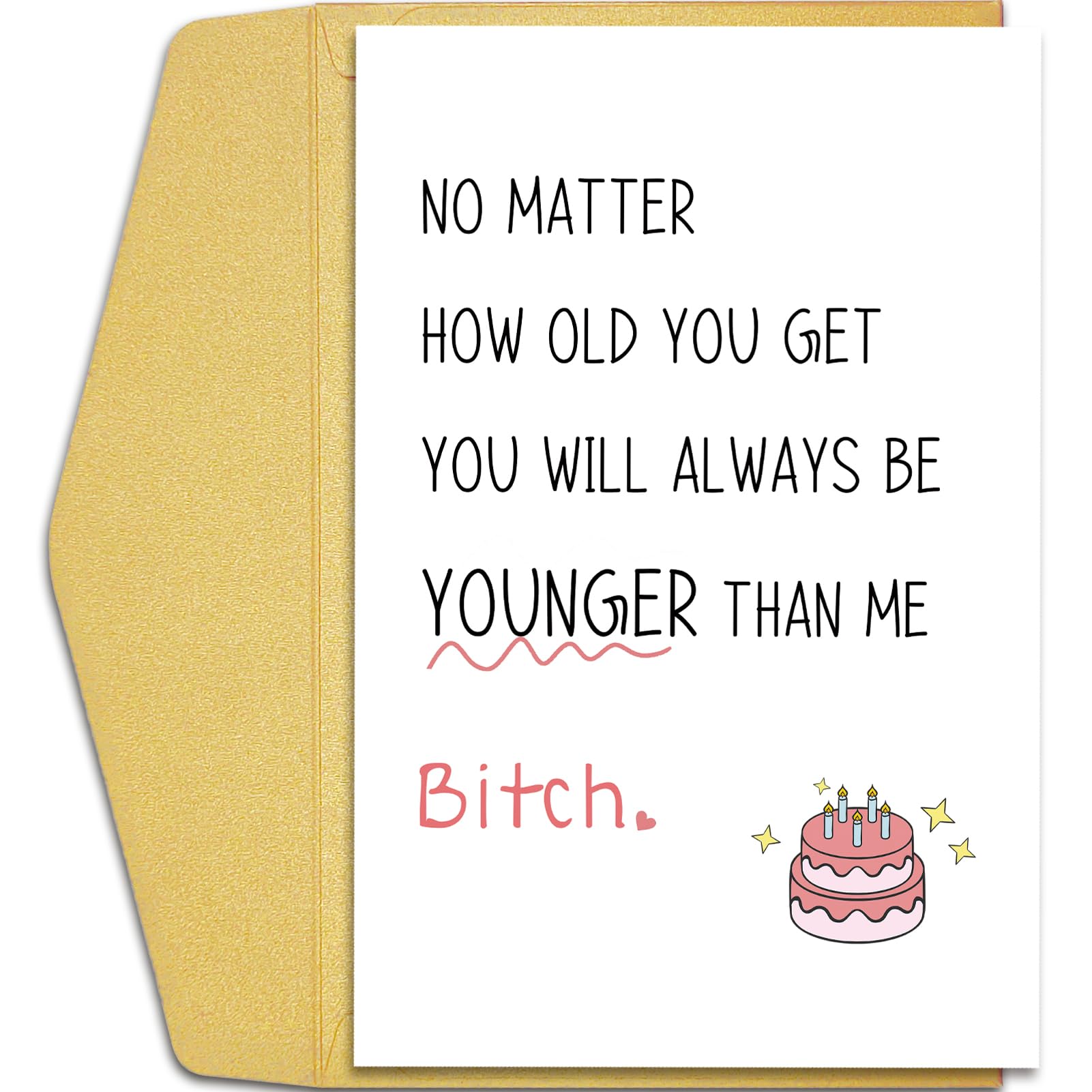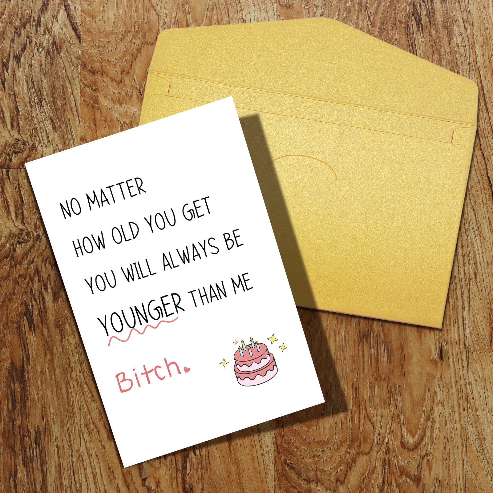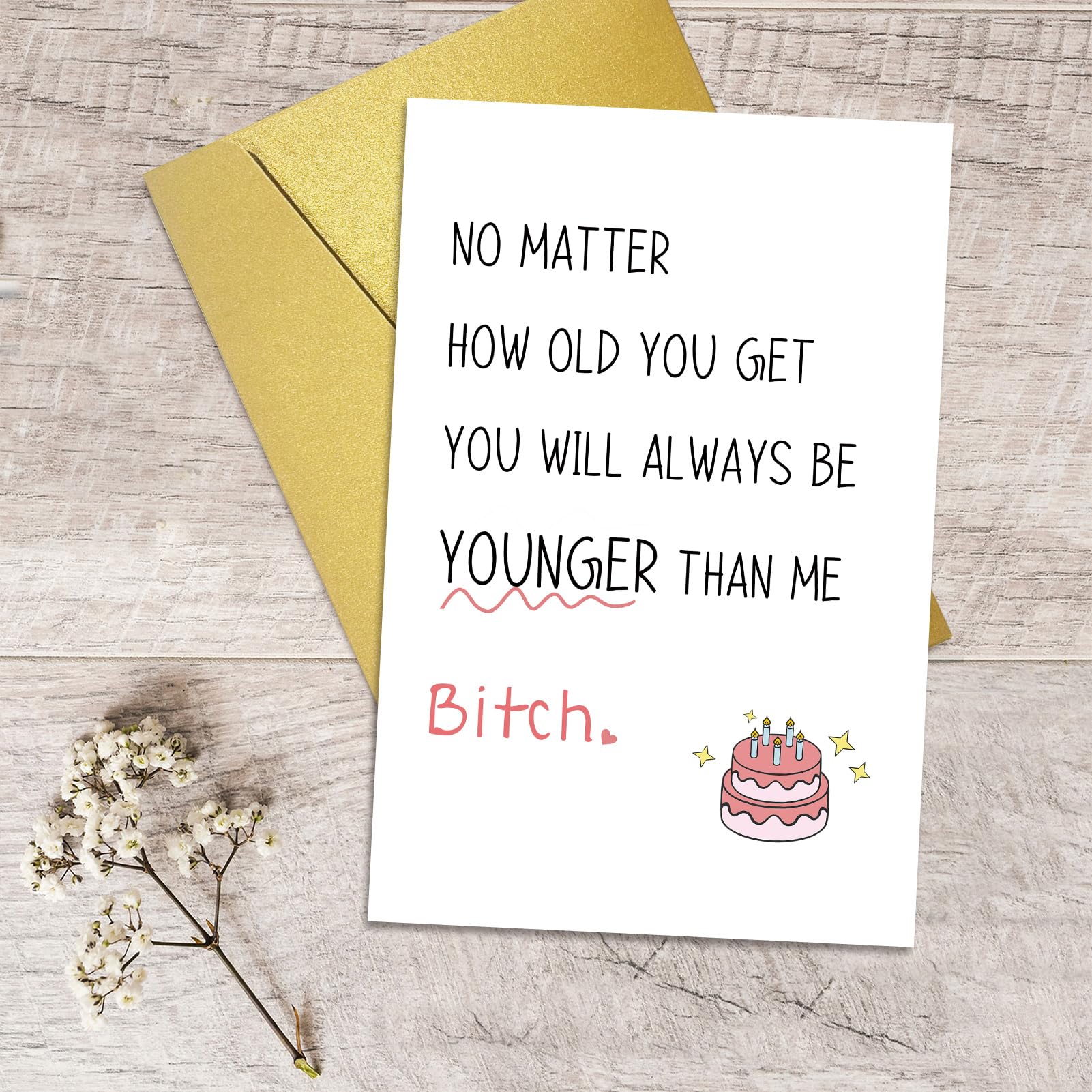 This unique and novelty birthday card is perfect for every women younger than you, your bestie, little sister, old friends, coworkers, soulmate, etc.