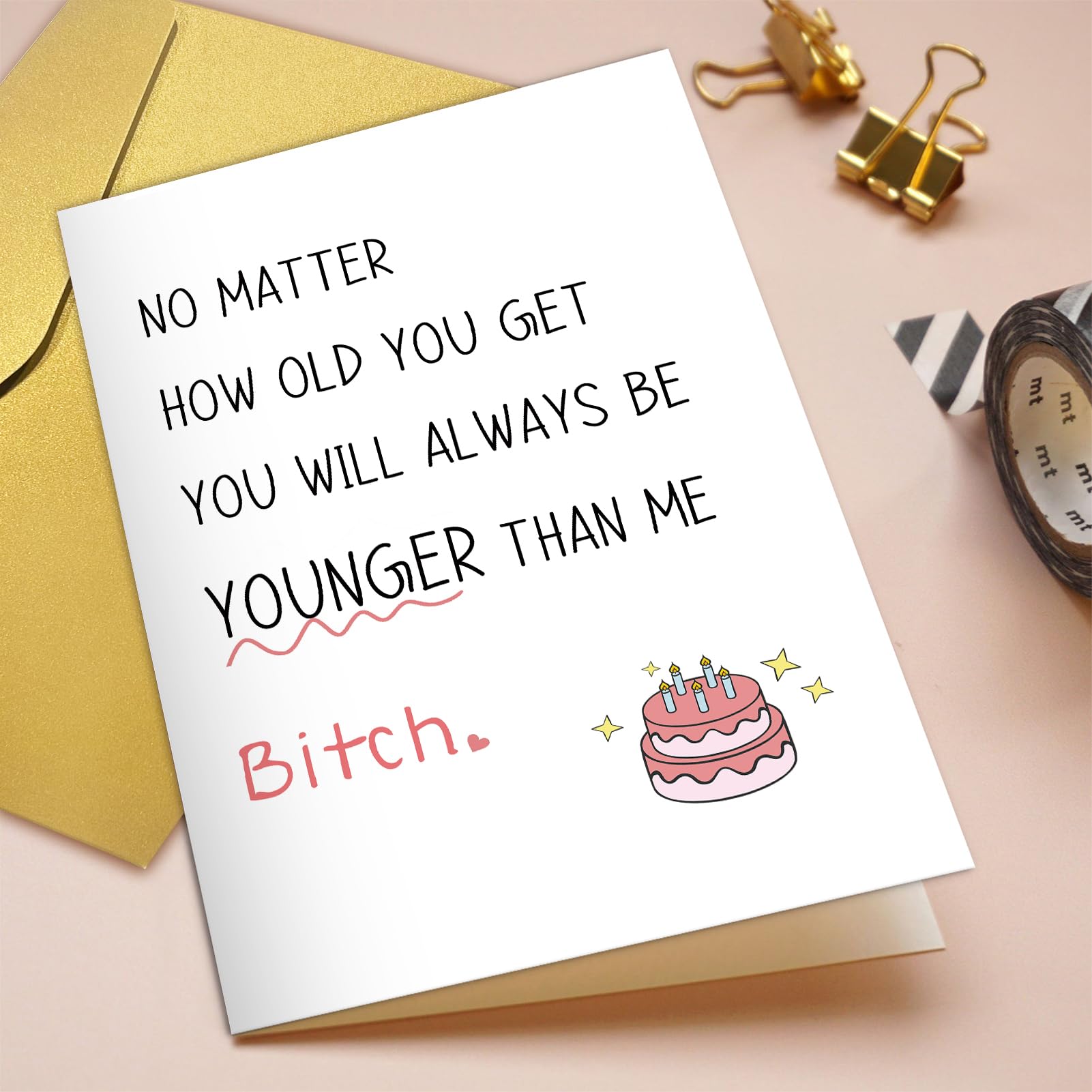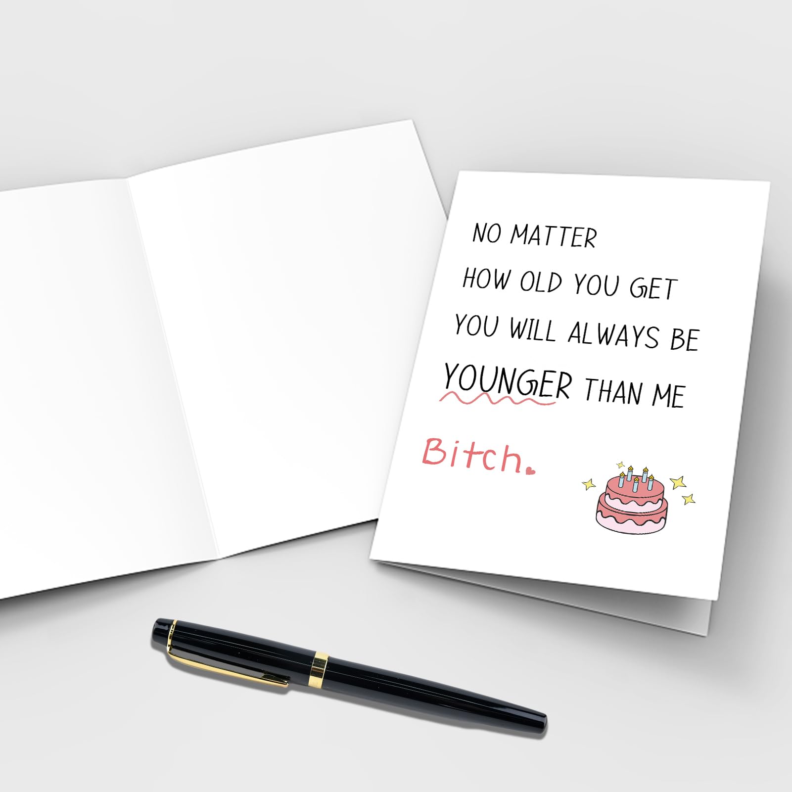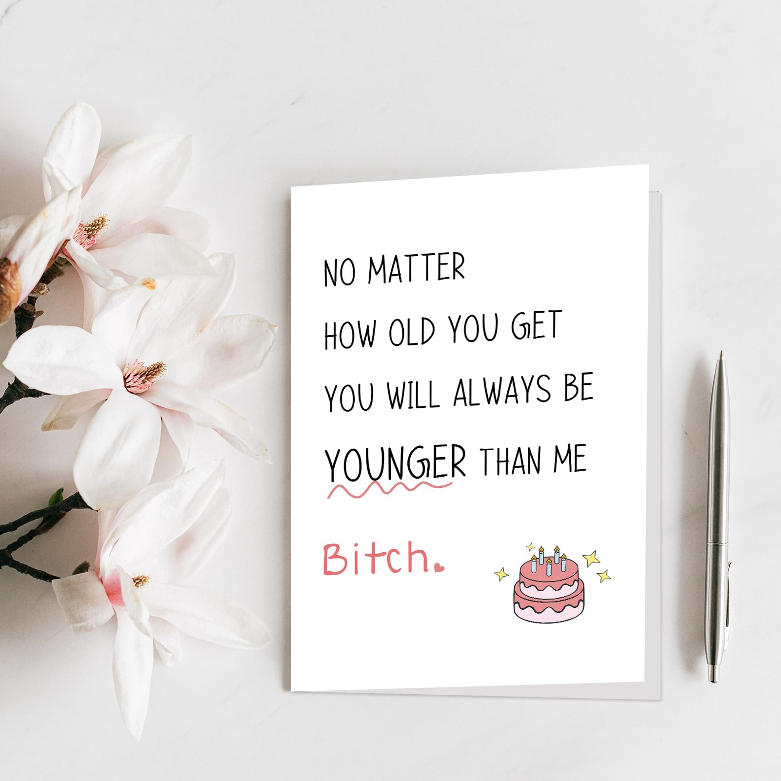 This unique and novelty birthday card is perfect for every women younger than you, your bestie, little sister, old friends, coworkers, soulmate, etc.