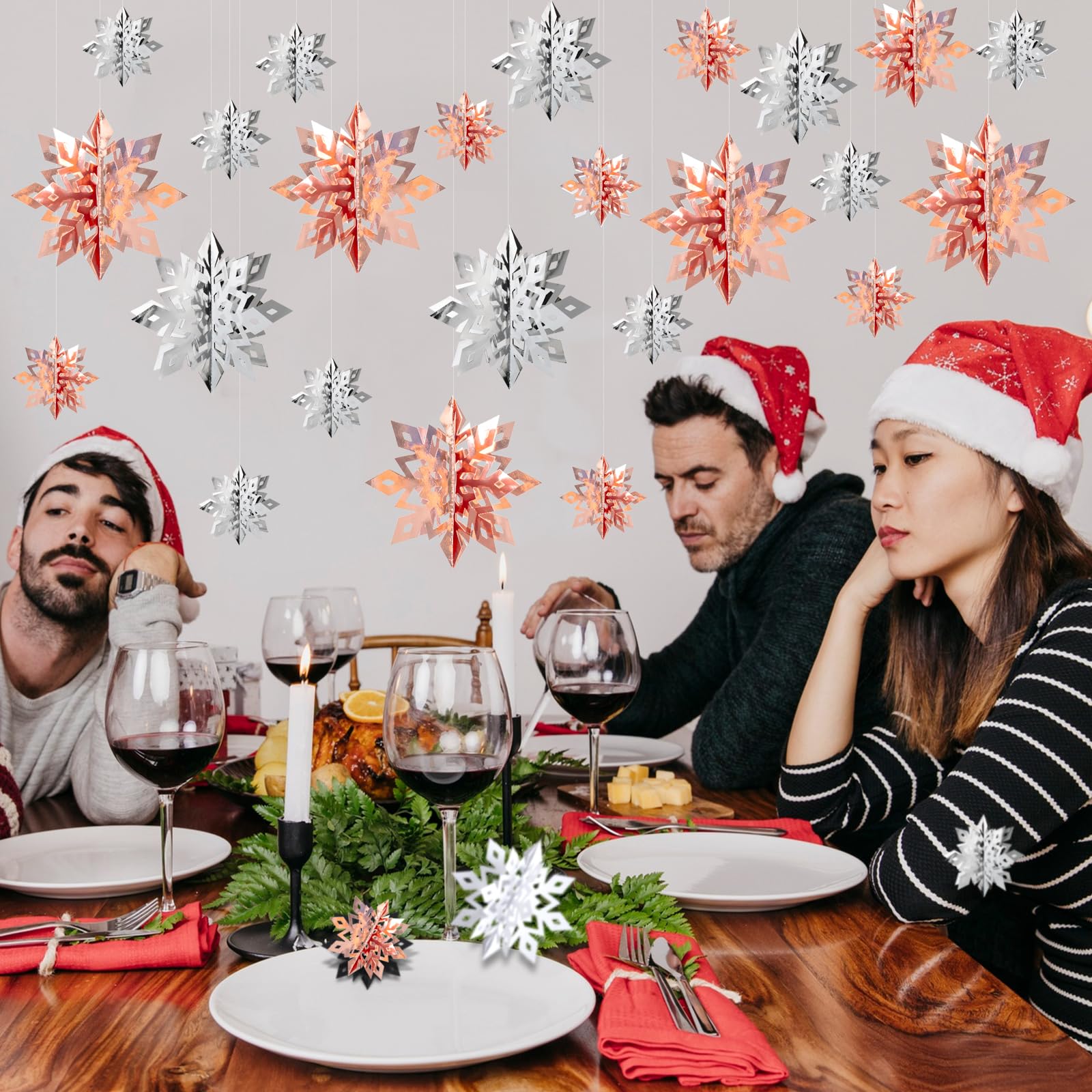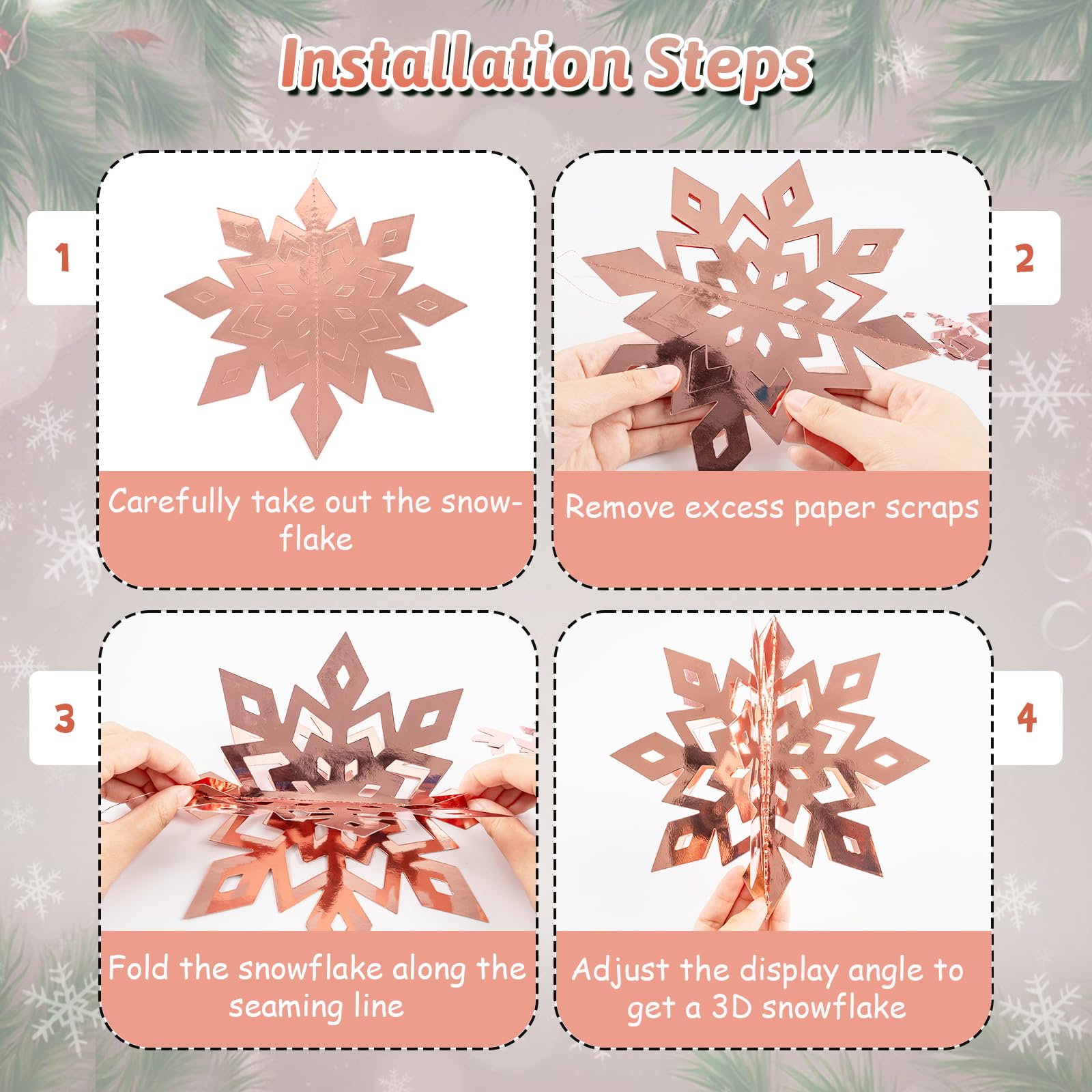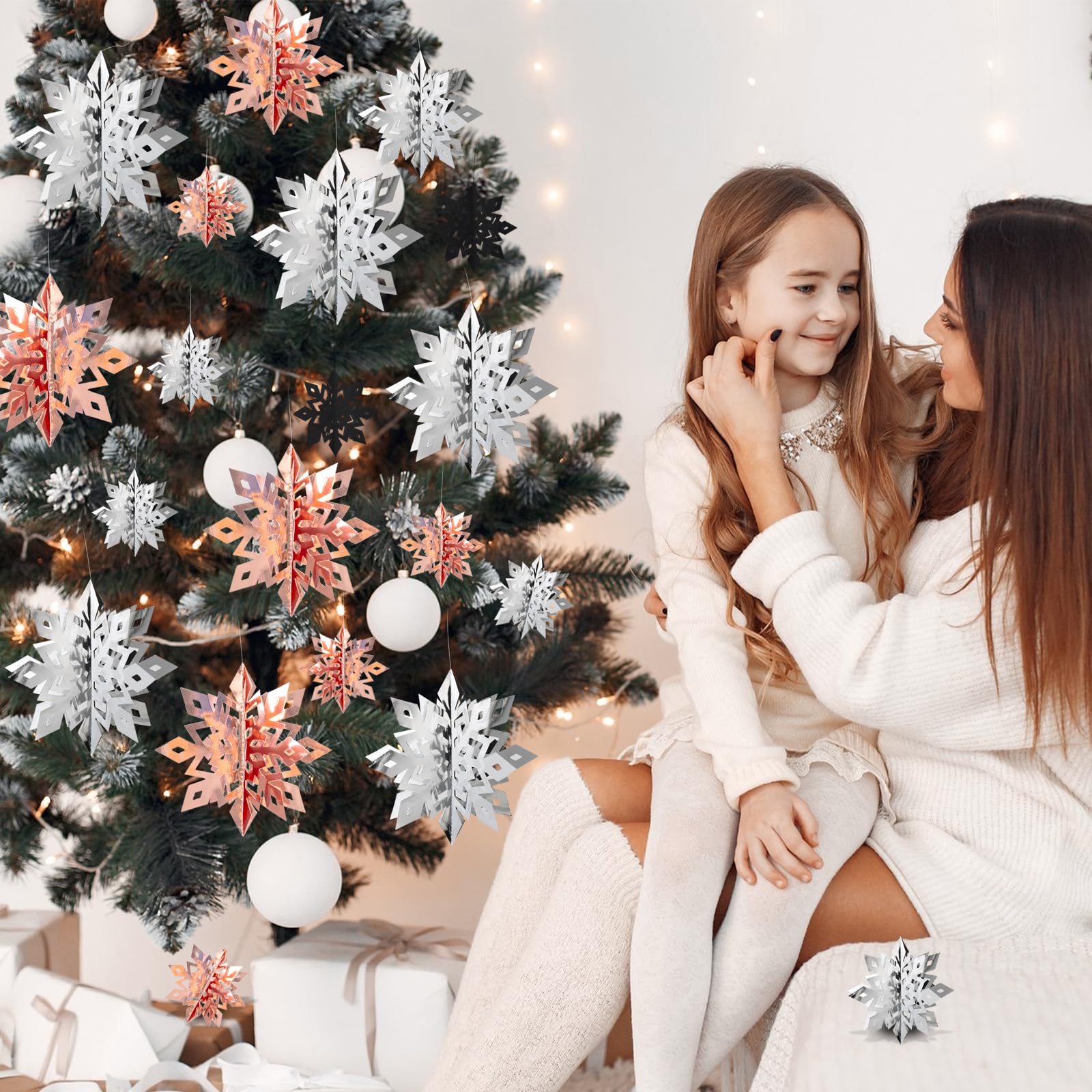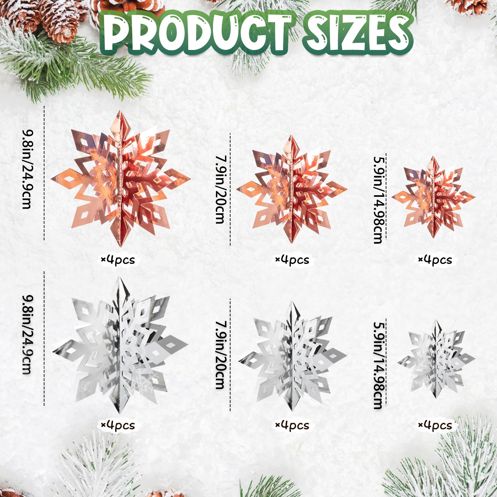 Super Value Set: This pack includes 12pcs silver snowflakes and 12pcs rose gold snowflakes in three different sizes. Simply fold along the sewn seam to create stunning 3D hanging snowflakes! These complementary colors enhance any winter-themed setup, creating a dazzling visual effect perfect for your home or holiday parties