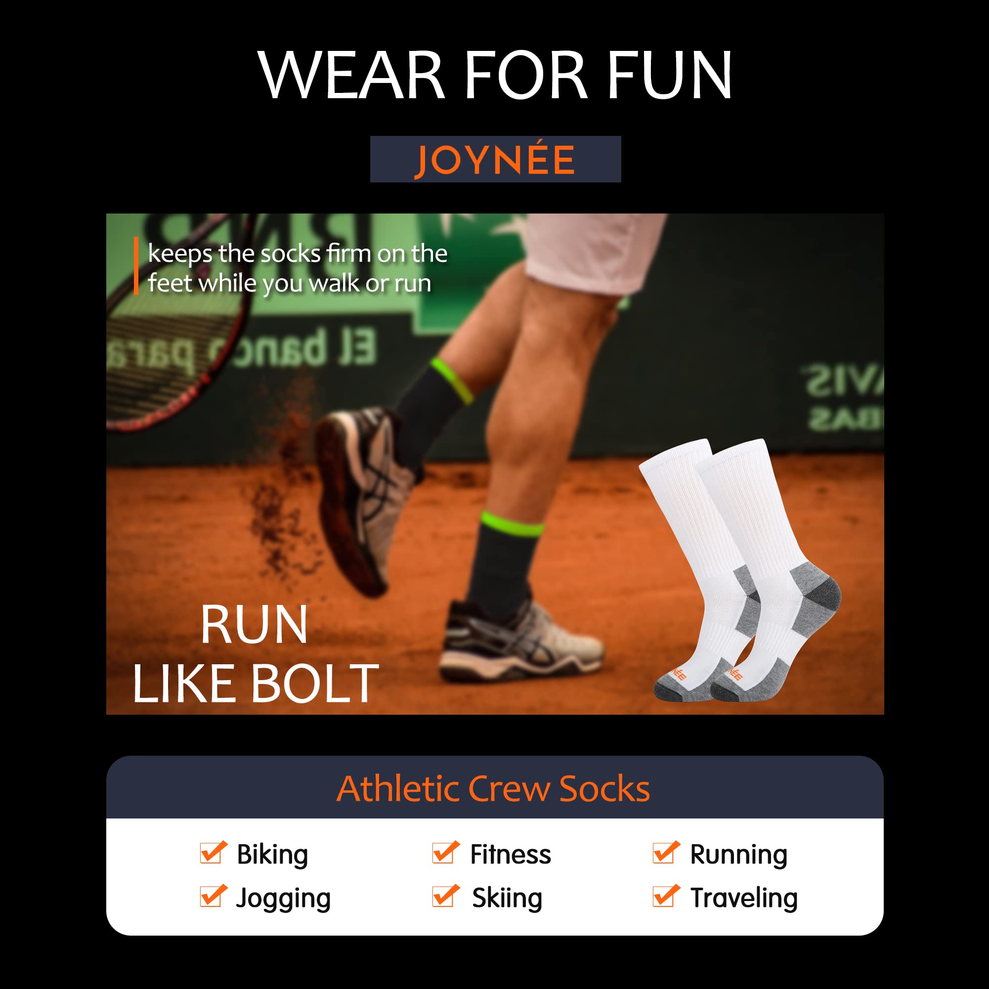 QUALITY MEN'S SOCKS: Made of 97% polyester,3% spandex. Our men's crew socks are strong, durable and breathable enough to keep your skin to keep you dry and comfort. Moisture transport system wicks sweat away from the body.
