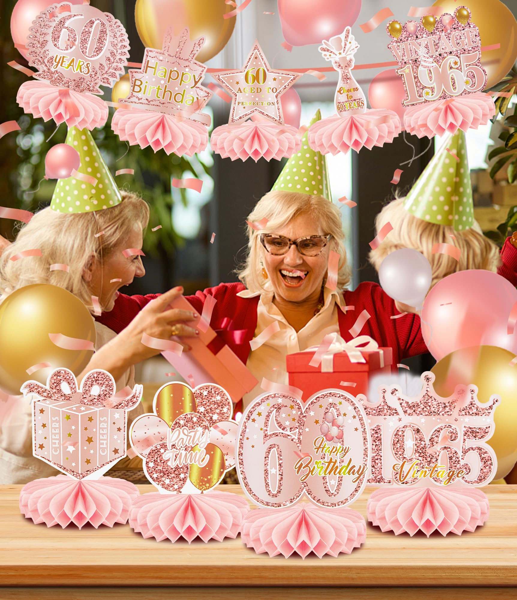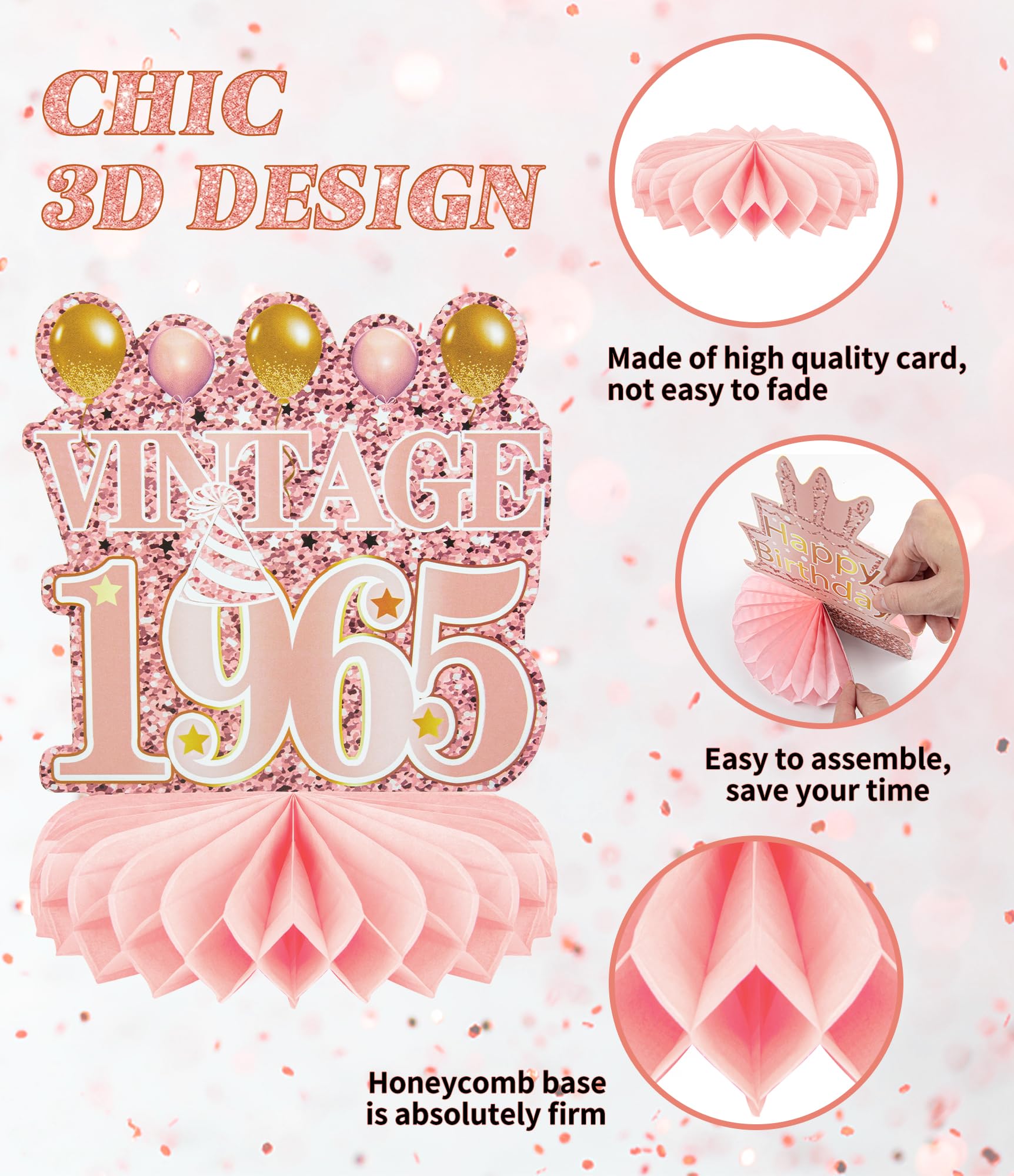 🎁PERFECT 60th BIRTHDAY PARTY DECORATIONS: The 60th birthday honeycomb centerpieces for women are suitable for women's 60th birthday party. You can use it as a party decorations or as photo background, so that everyone will love these chic designs. 60th birthday centerpieces for tables can decorate your home very well