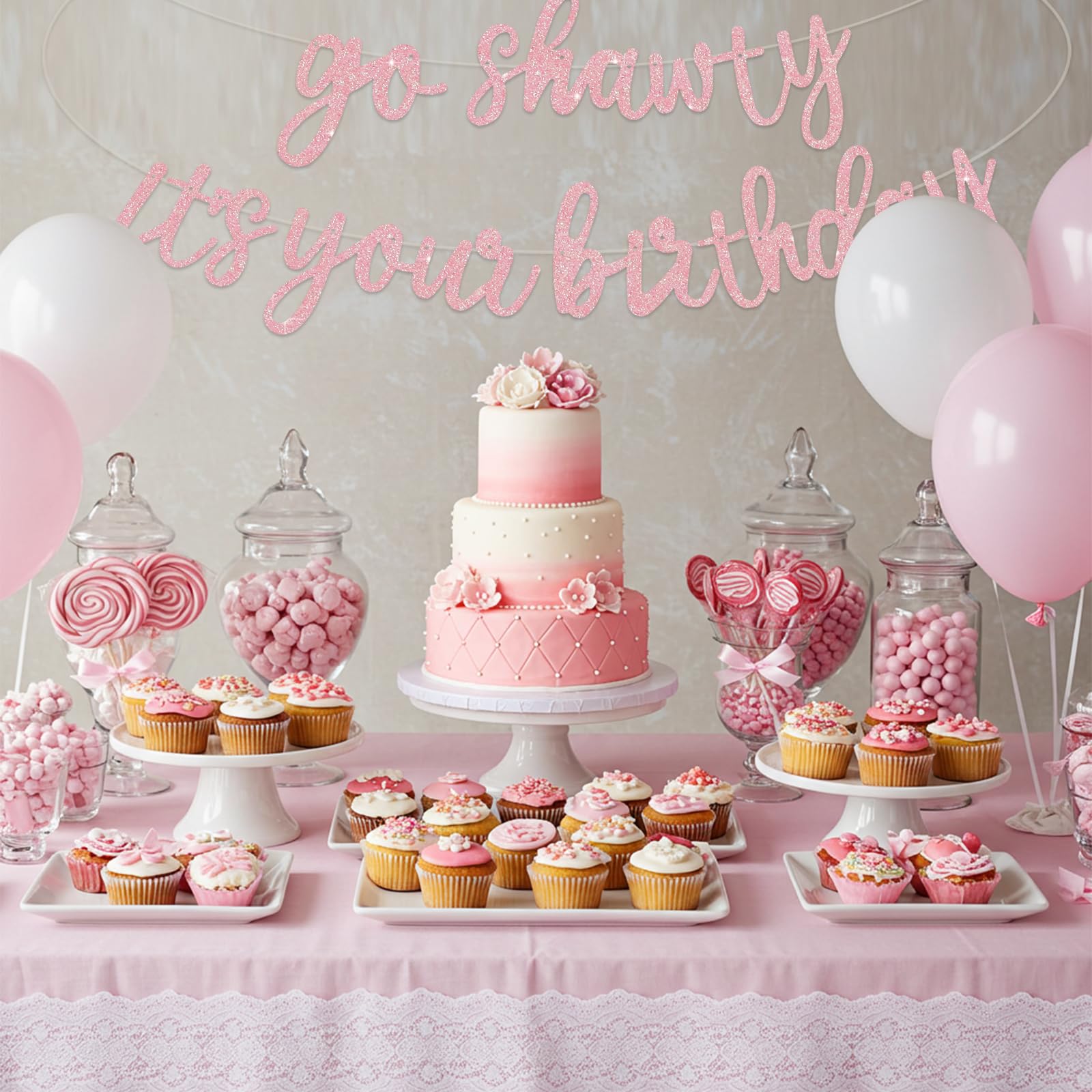 Product includes : A Glitter NO DIY Go Shawty It's Your Birthday Banner is included in our product. It is a very convenient birthday banner that can save your time and decorate your birthday party very well.