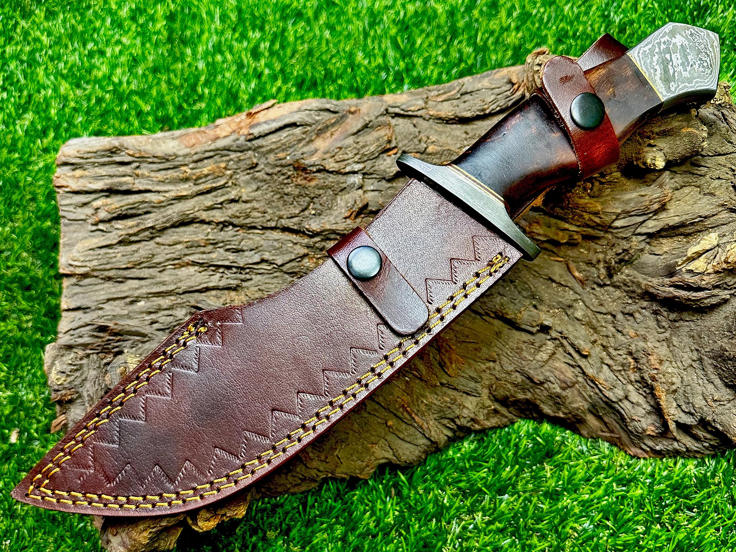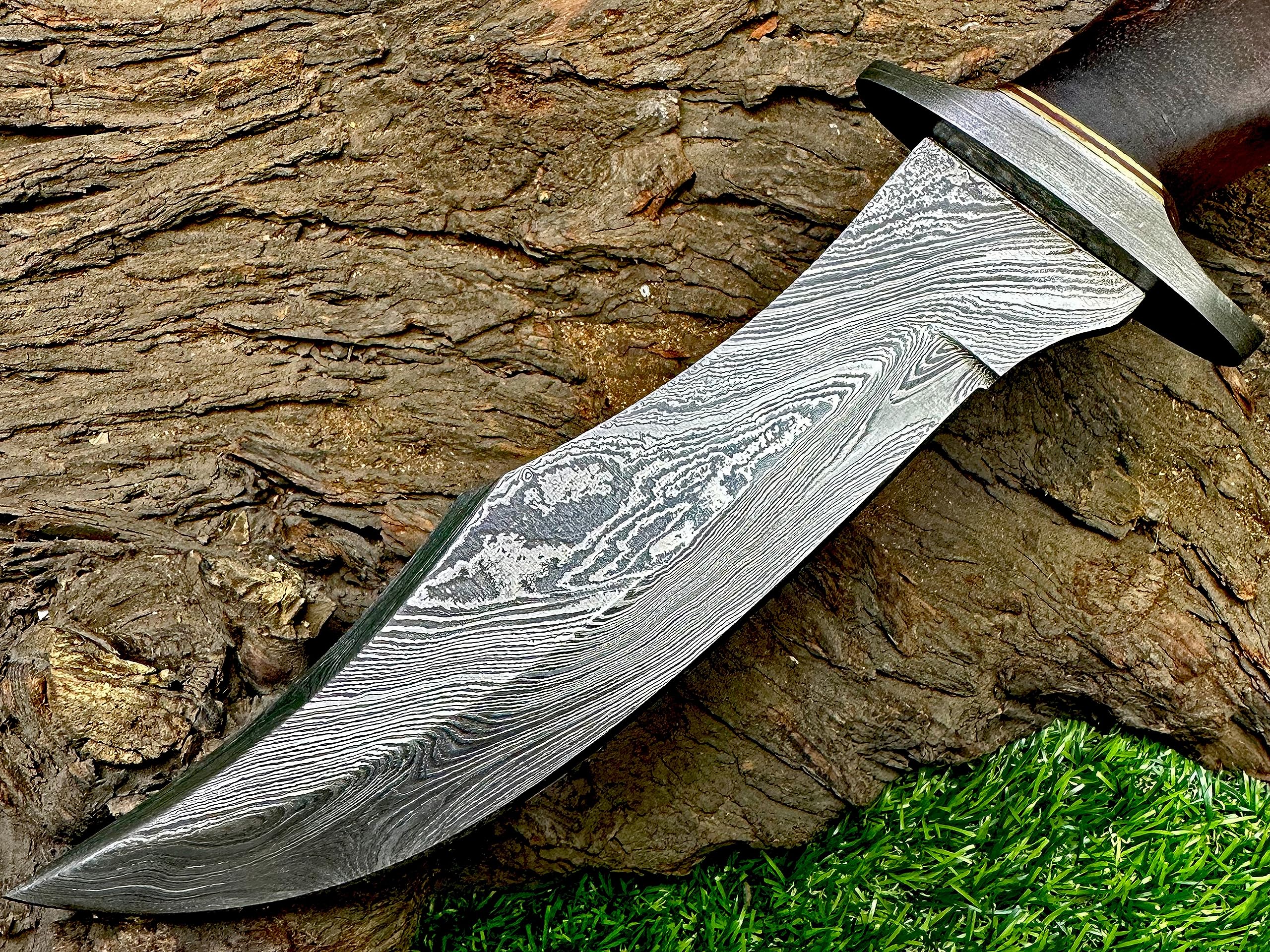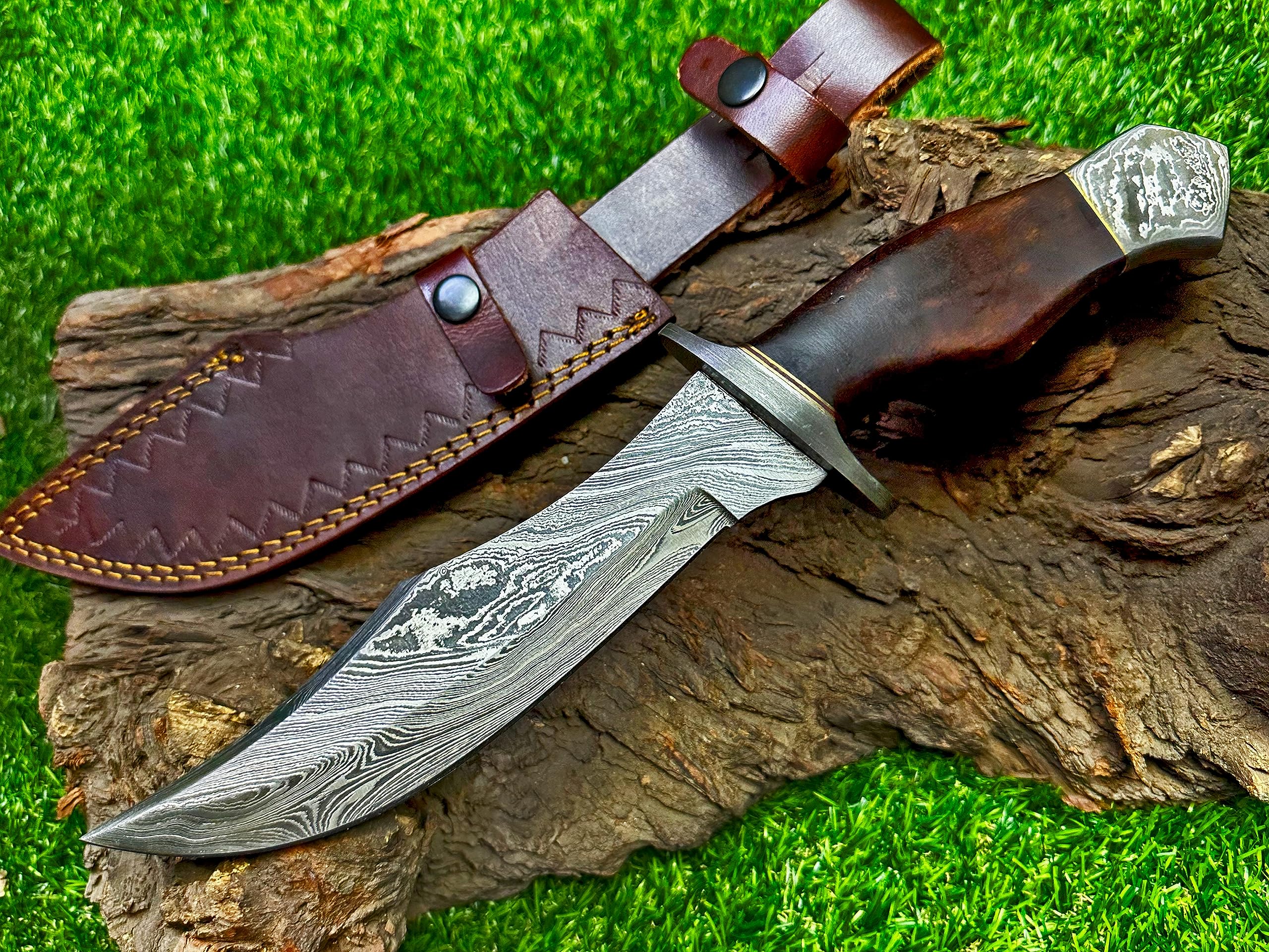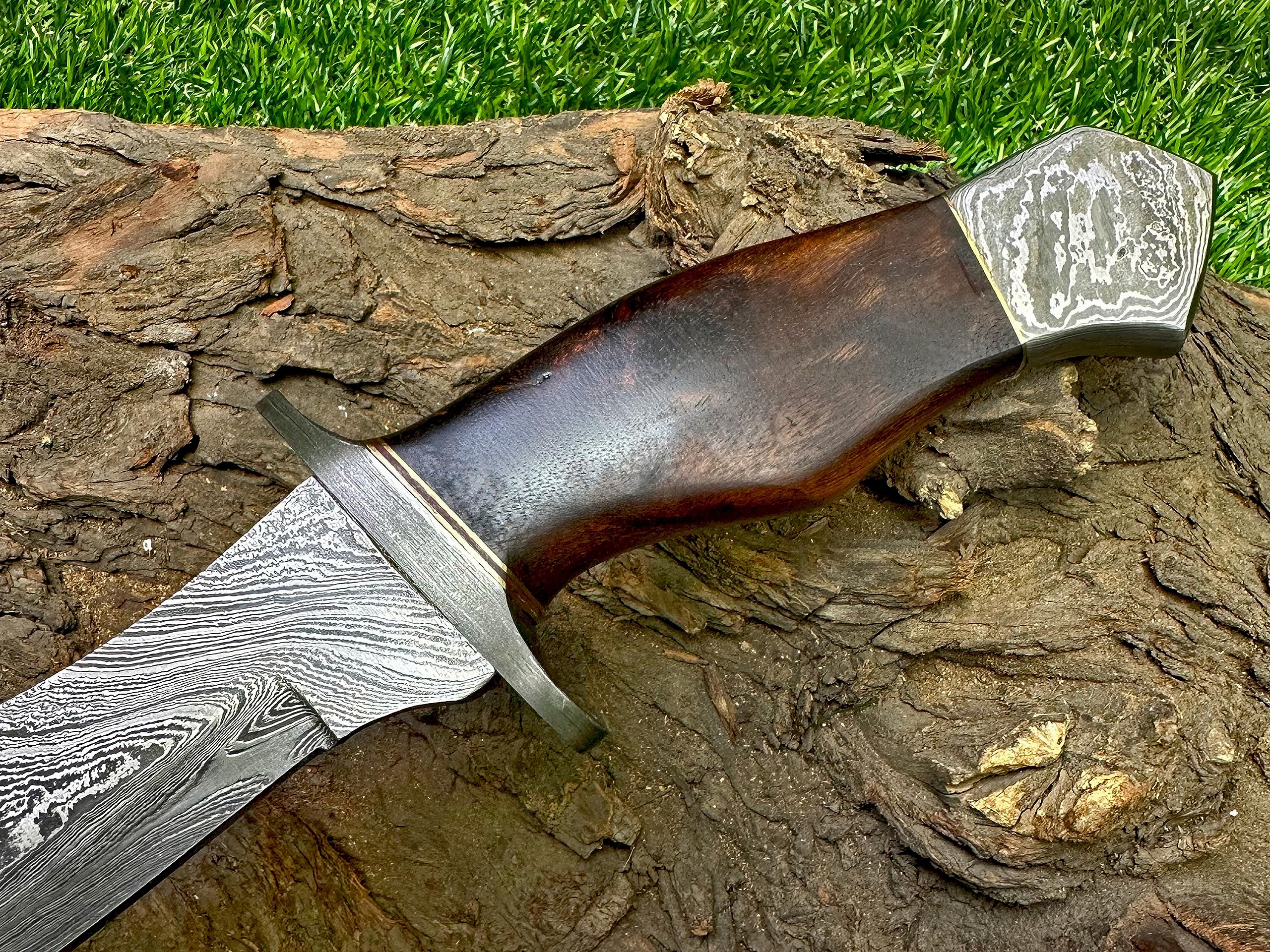REG-274 Handmade Damascus Steel 13.00 Inches Hunting Bowie Knife. Black Twist pattern on blade - Walnut Wood Handle With Damascus Steel Guard/Pommel Over All Length = 13.00 Inches, Handle Length = 5.5 Inches Blade Length = 7.5 inches The blade is Made By 1095/15N20 ALLOY STEELS (176 true Layers) Hand forged to Beautiful Pattern. Knife you receive, its pattern can be little different as you see in picture. Damascus steel of this knife has high quality contents to give an excellent edge and sharp cutting abilities. Hardness of the blade of this knife is HRC 58-60 in the lab & been hand sharpened to a Sharp Edge. BUYING You must be sure and certify that you are 18+ of age and you are able to legally purchase and own an item and will use it responsibly
