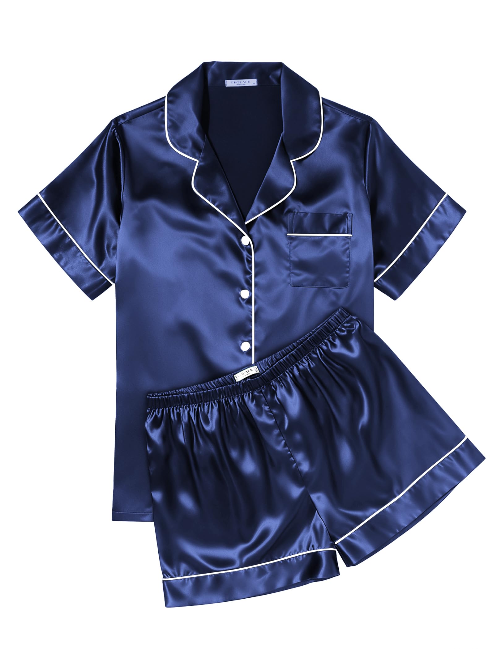 Material:Satin pajama set is crafted from premium silky satin fabric (95%Polyester+5%Spandex). Ultra-soft, silk touch,skin-smoothing feel, comfort Ekouaer sleepwear