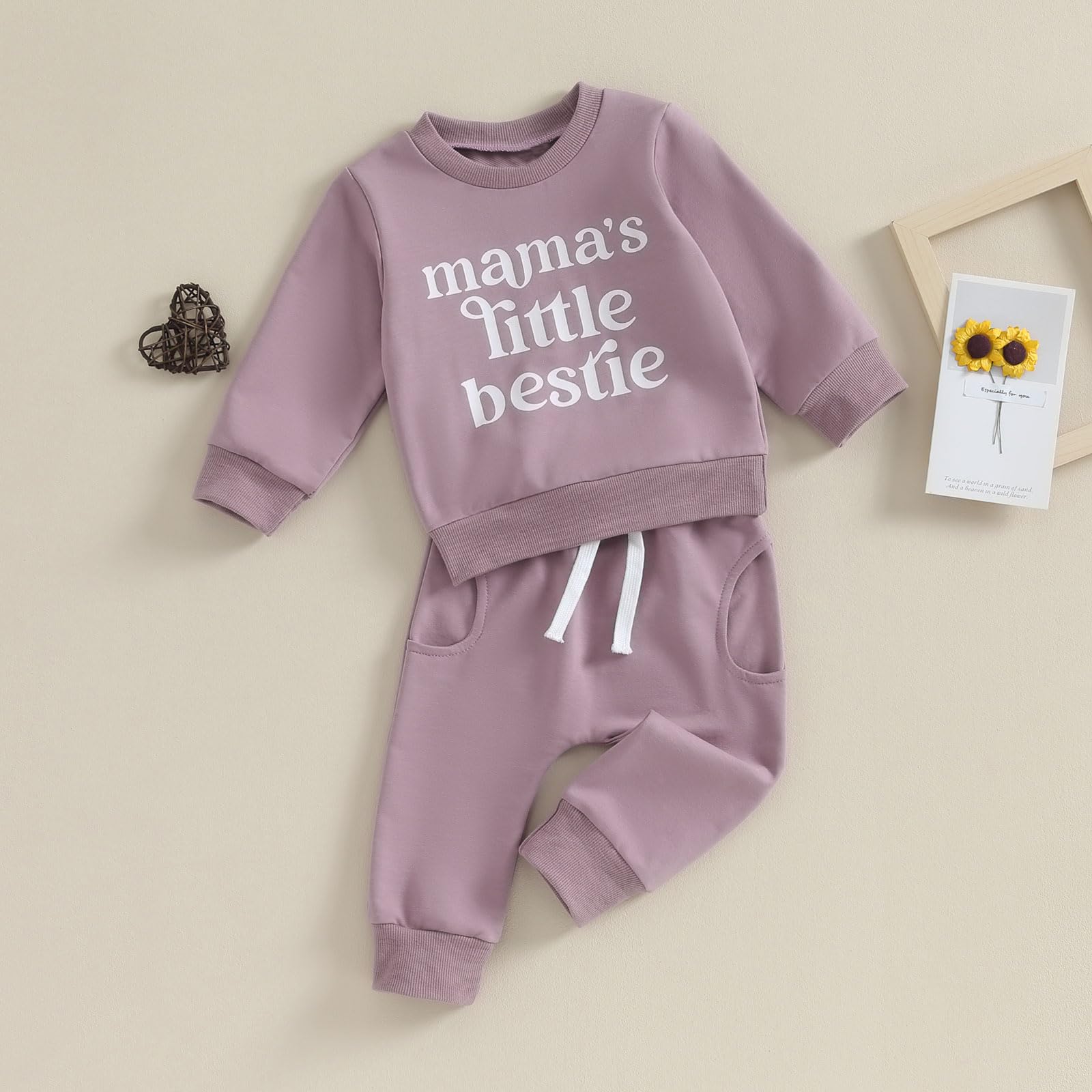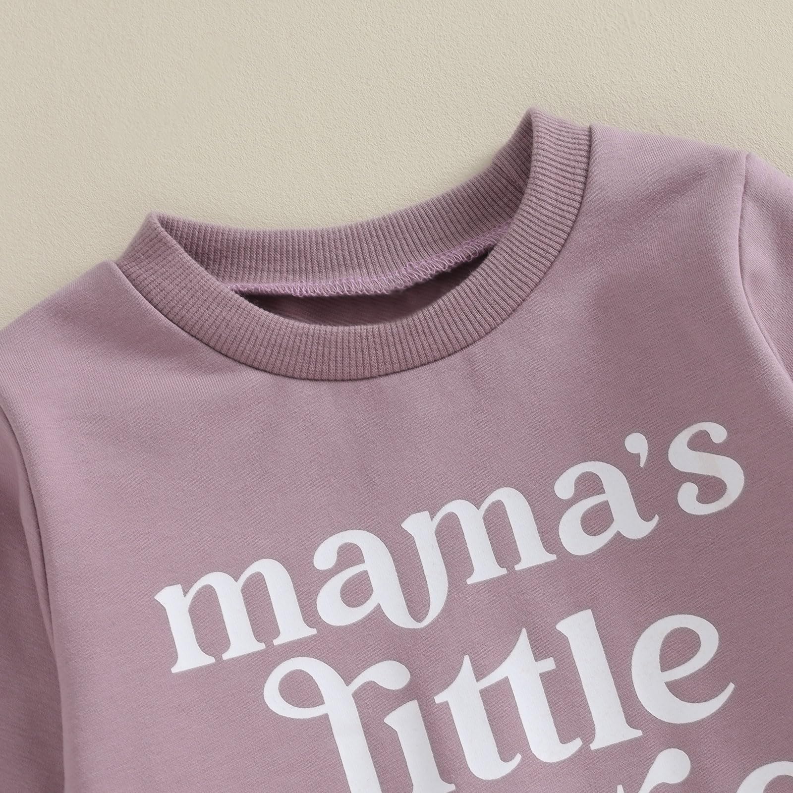 Feature: Mamas girl baby outfit, long sleeve sweatshirts, elastic waist pants, this will make your little baby more adorable and attractive.