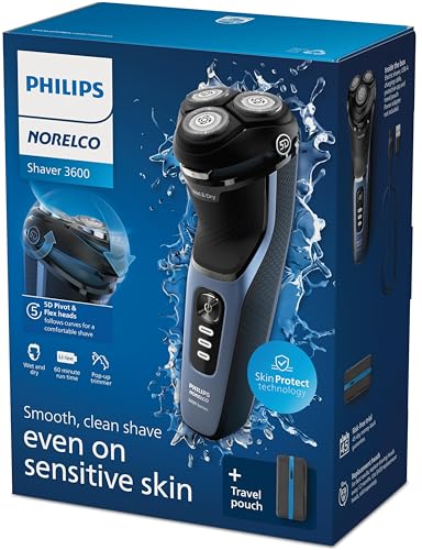 From the #1 electric shaver brand¹: Shaver 3600 Series gives you a comfortable, clean shave even on sensitive skin thanks to 27 self-sharpening ComfortCut Blades and 5D Pivot & Flex Heads