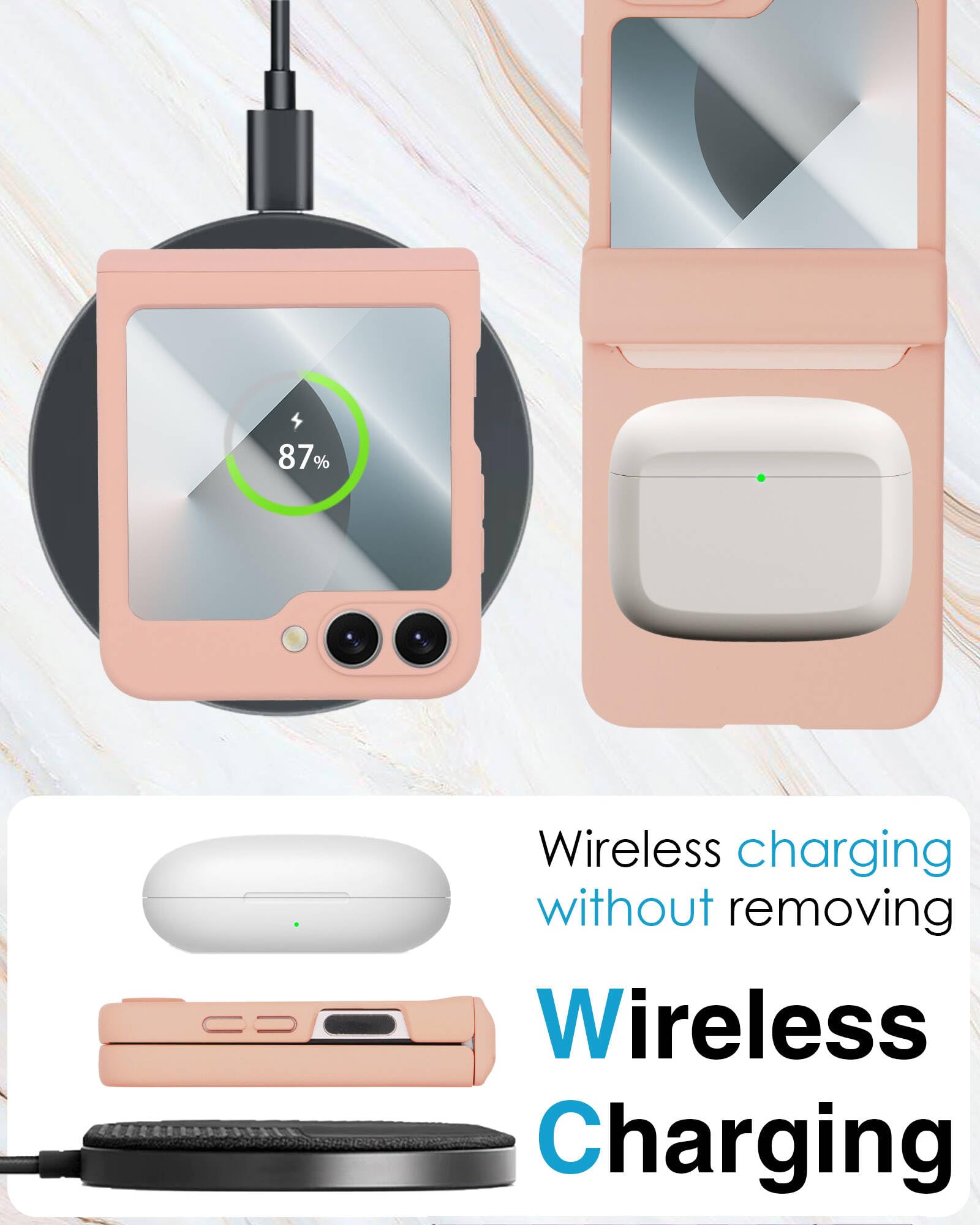 [Slim and Lightweight Design] Our Galaxy Z Flip 6 Case features an ultra-thin, lightweight profile that doesn't add any bulk to your phone. This Z Flip 6 Case enhances your grip, reducing the likelihood of accidental drops while maintaining the phone's original elegance. Plus, this Z Flip 6 Case supports wireless charging, so you never have to remove the case for charging.