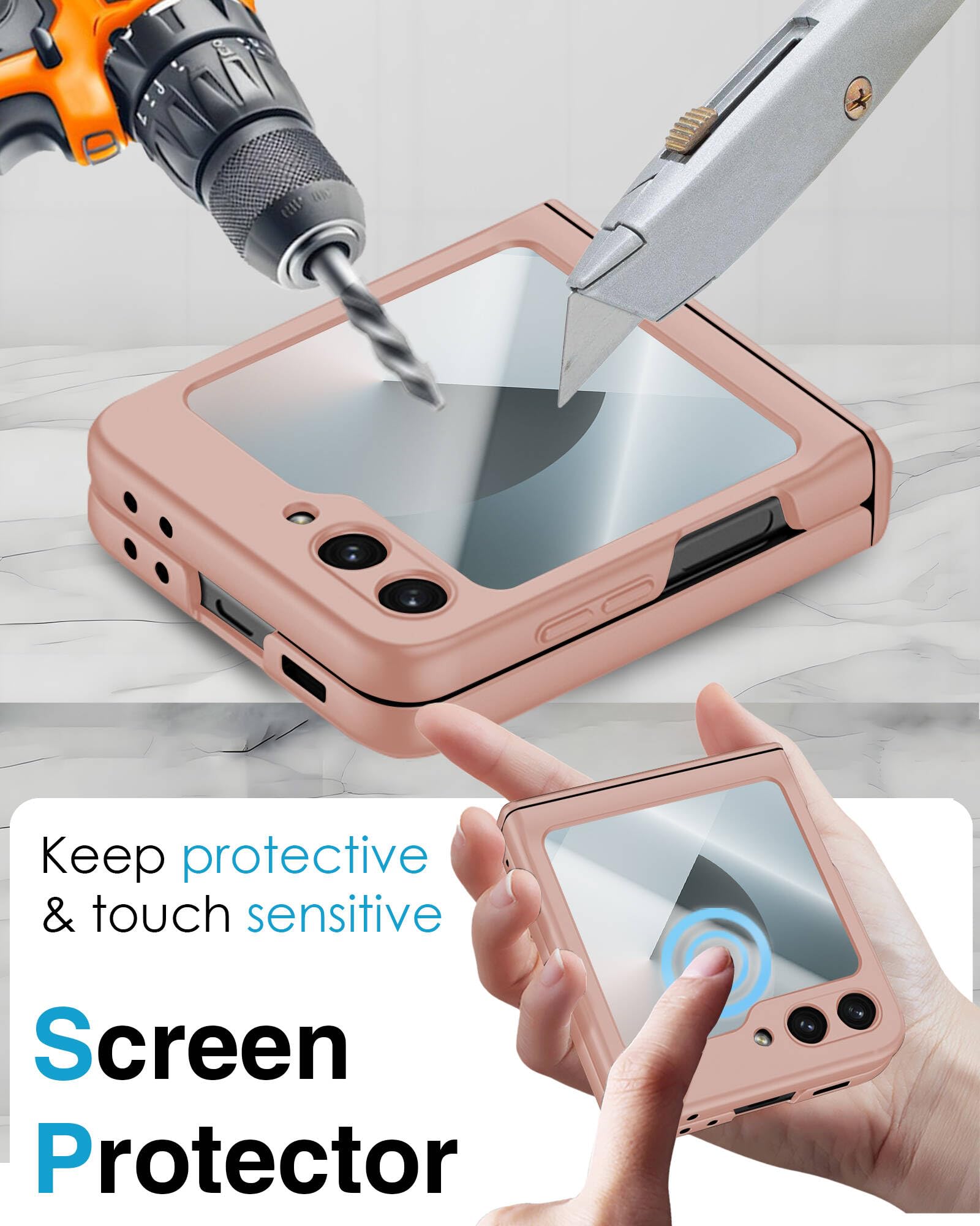 [360° Comprehensive Protection]: Enjoy full coverage with the included screen protector, offering 100% protection for Samsung Galaxy Z Flip 6 Case. The tempered glass screen protector is designed to reduce damage from impacts, drops, and scratches, ensuring your Galaxy Z Flip 6 Case remains safe. Your phone is fully shielded within the Z Flip 6 eliminating worries about scratches or damage whether you set it down or accidentally drop it.