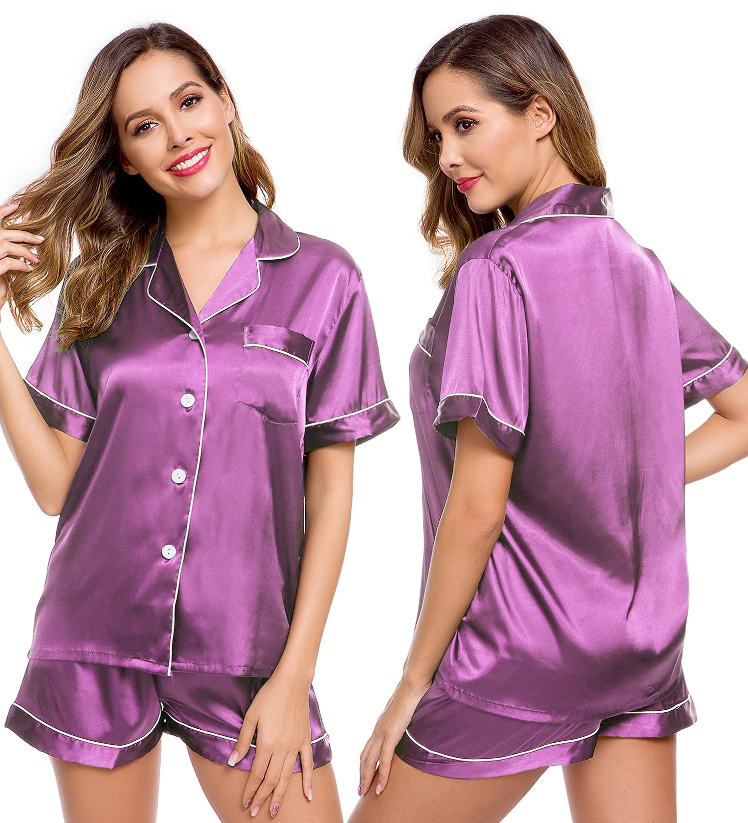 OCCASION: Loose fit and cozy style with beautiful detail. These silky satin pajamas are great for party, bridal, or as a gift for your wife, mother, daughter and friends.