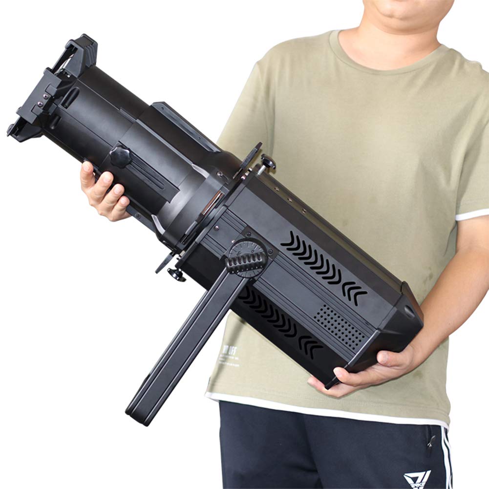 [Manual Framing] 4 external manual framing shutters, left, right, top, and bottom; LED Ellipsoidal shines a hard-edged, warm white spot in any direction; Easily highlight areas by altering the projected beam with framing shutters; Multiple lamps can be combined to cut and project to the stage, only to illuminate the T stage, not to the audience.