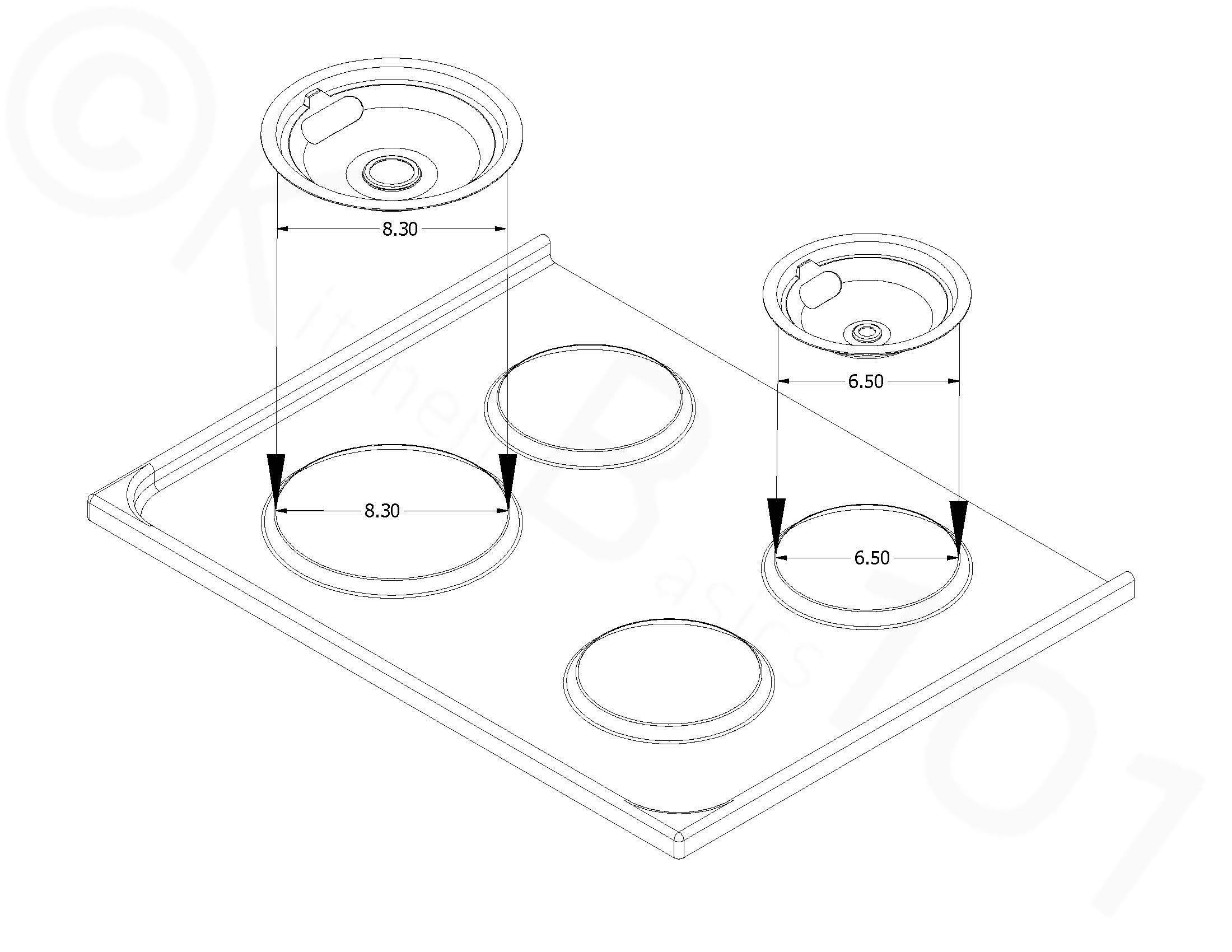 [ Product dimensions ] 6 inch pan measure 7.45 inch in diameter; 8 inch pans measure 9.35 inch in diameter. Does NOT fit GE, Hotpoint and Whirlpool models
