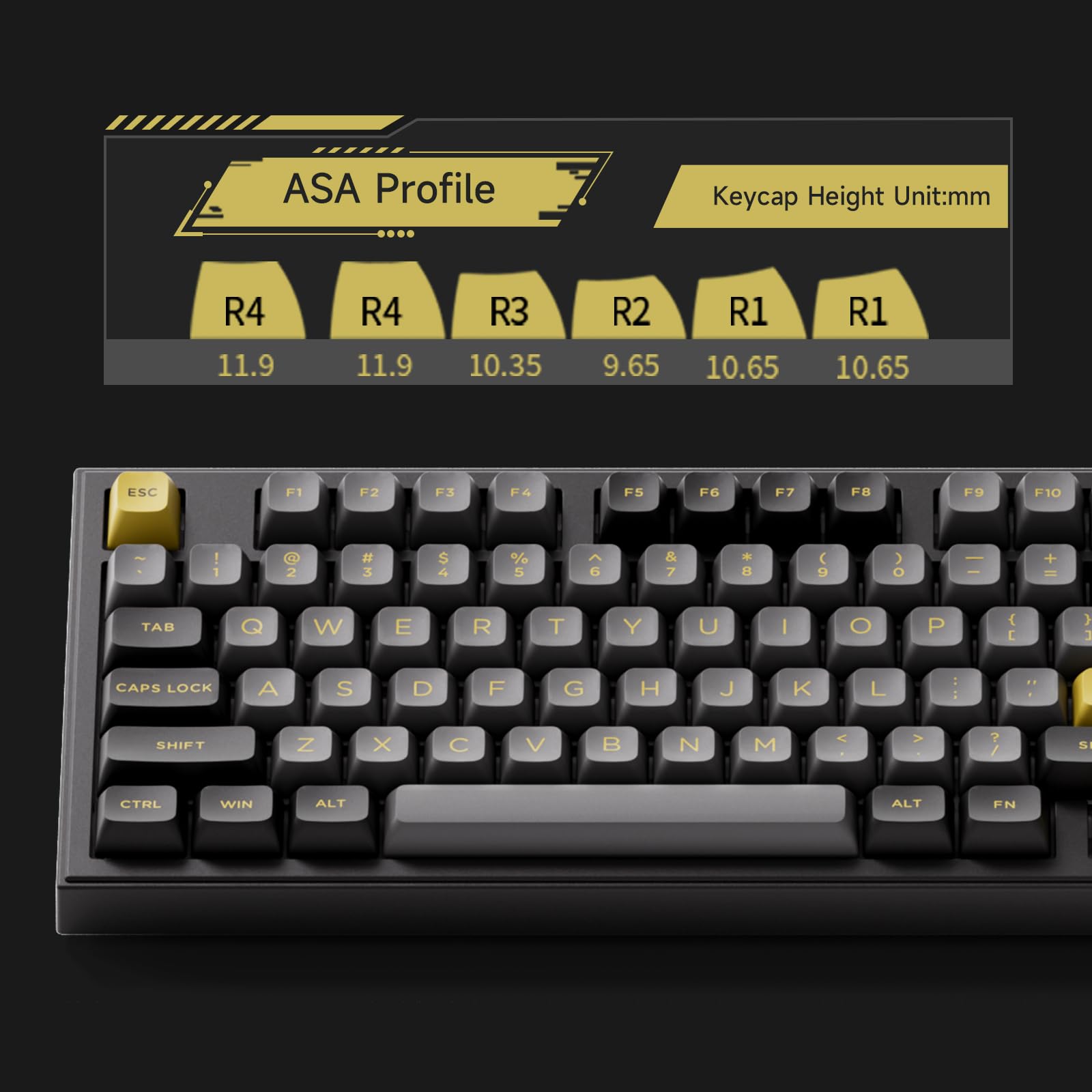 1800 Layout Black&Gold Gaming Keyboard: The strong contrast of the conventional black and the shiny gold together feels low-key but full of energy which let us think of black earth with golden wheat fields. 1800 compact layout is ideal for workplace with its numberpad