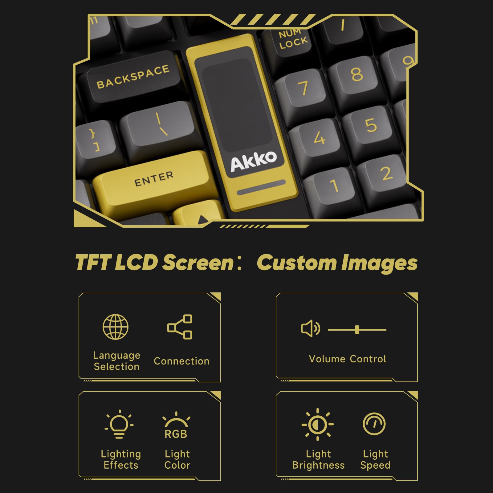 The Larger, the Better: You can use this 1.47” TFT LCD screen to configure backlighting, connection modes, and language settings with the encoder wheel. You can easily upload your favorite emojis through Akko Cloud Driver (compatible with Mac, Windows, and Web), giving your keyboard a personal touch like never before