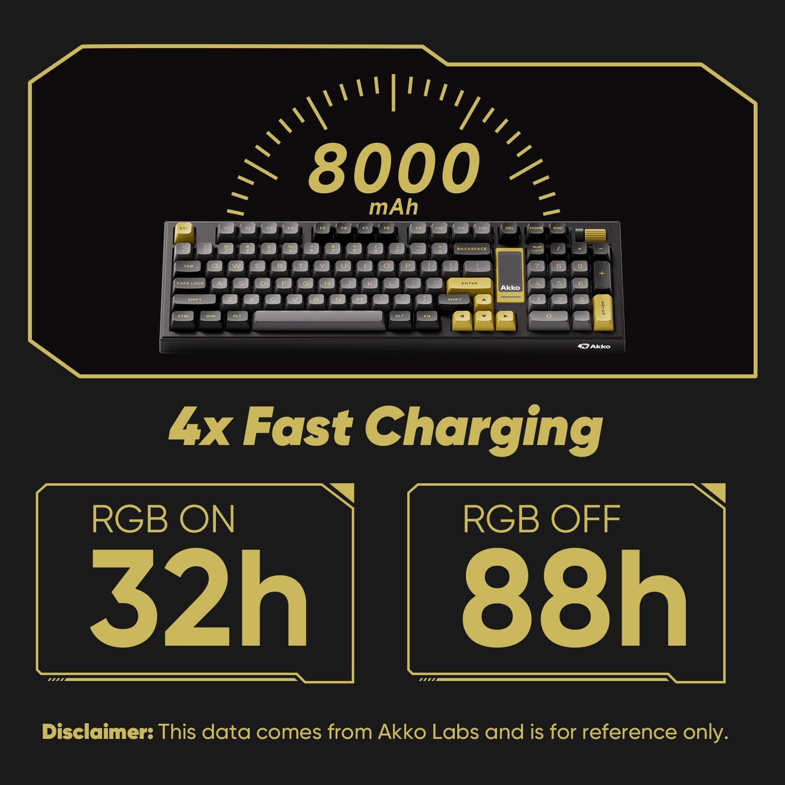 Fast Charging Model: Akko 5098B keyboard features 2A fast charging, charging up to 4x faster than standard keyboards. 8000mAh = Charge Less, Type More