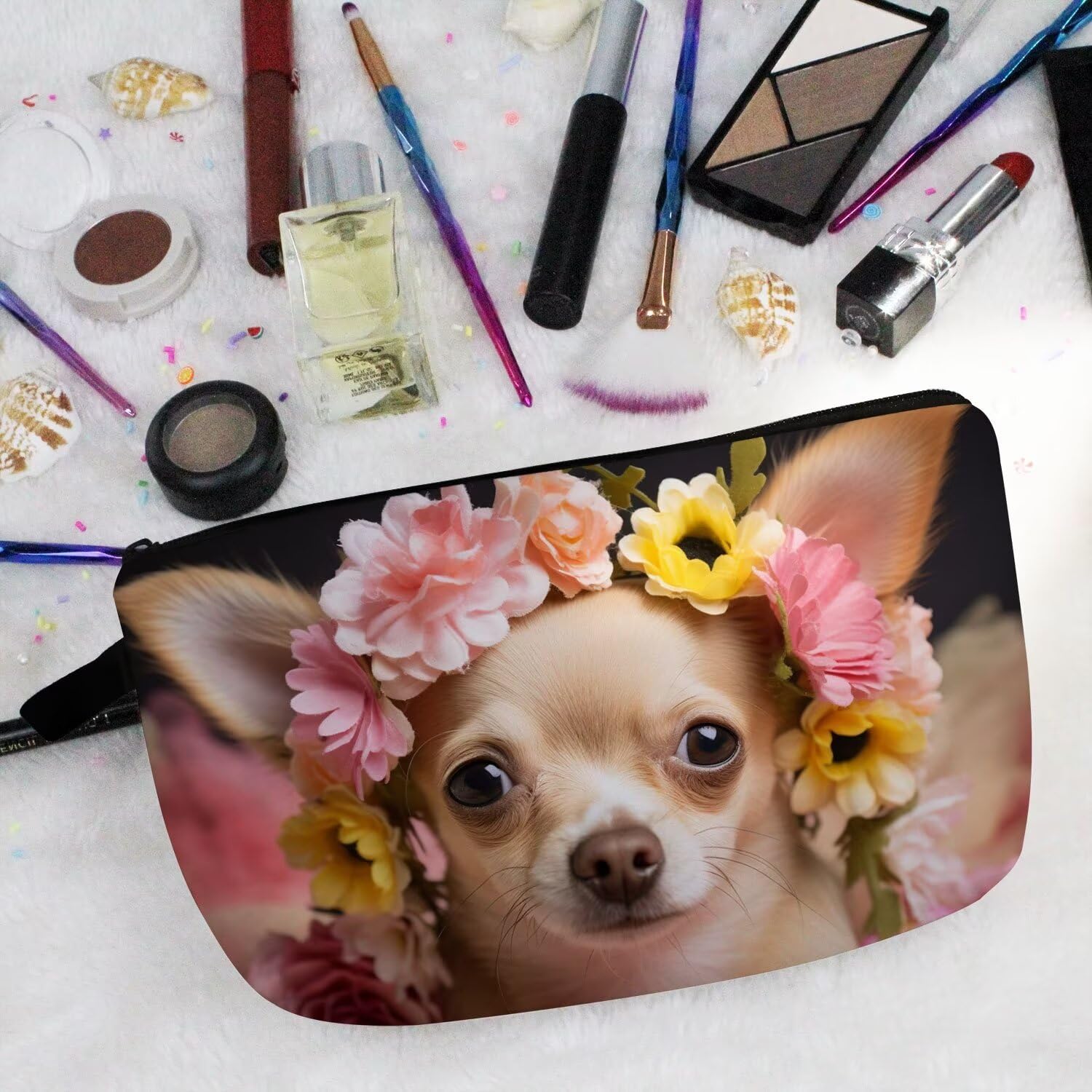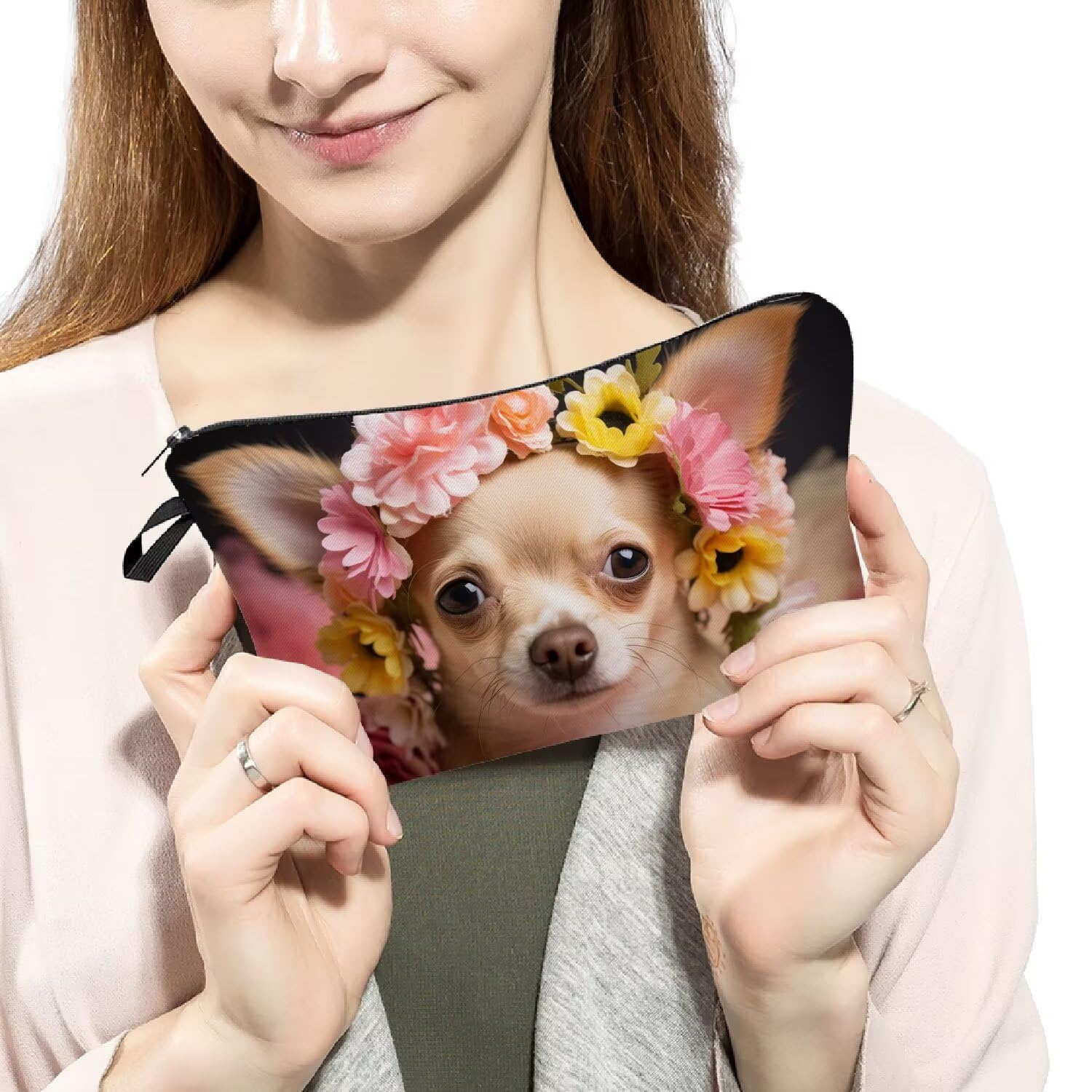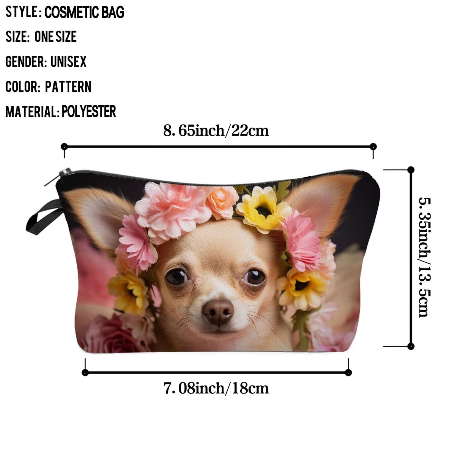 2.Fashion Design: The Floral Chihuahua cosmetic bag has a clear and vibrant design, double-sided printing. There are different kinds of cute, lovely, funny and beautiful patterns to choose. The makeup bag fits both the popular aesthetic and unique personalities