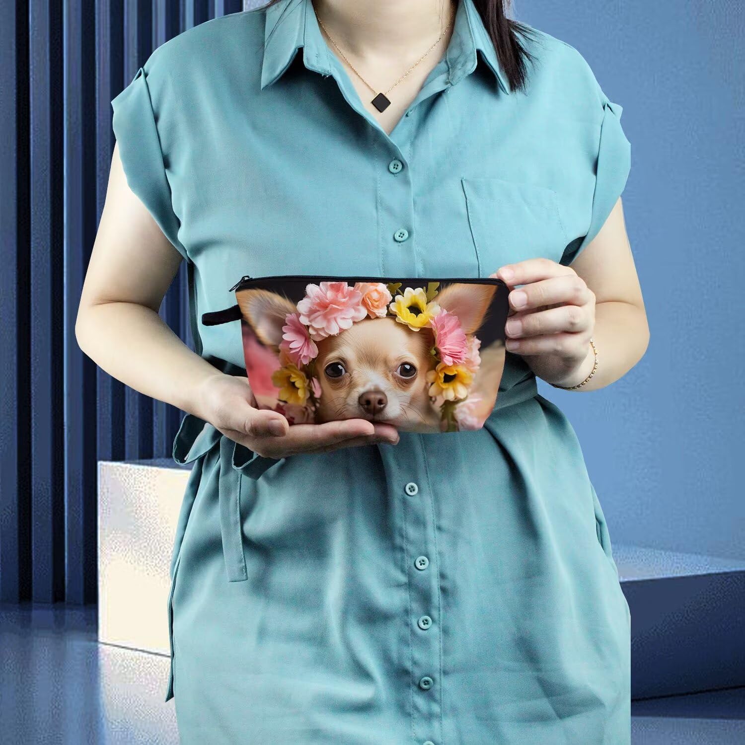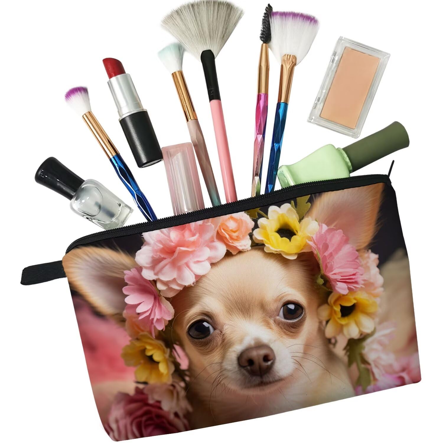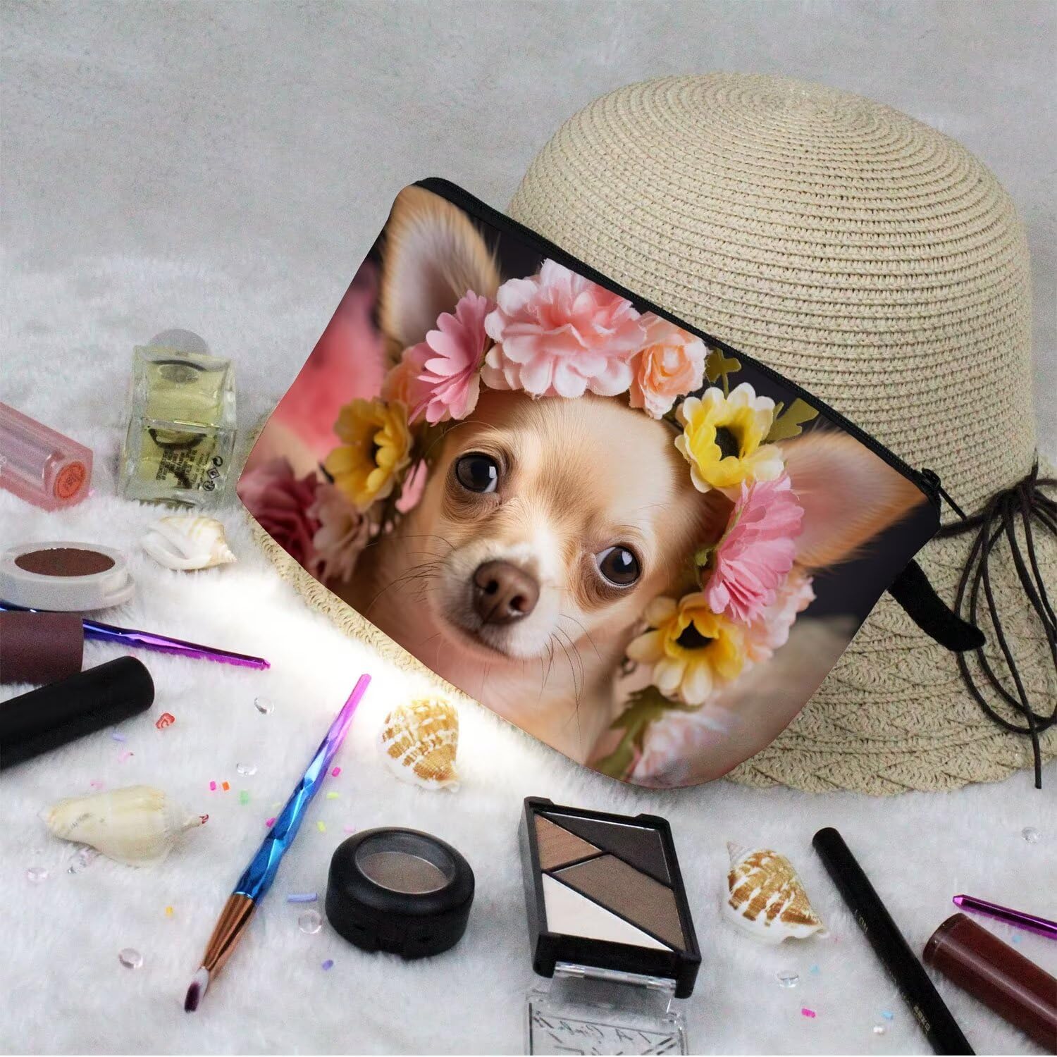 2.Fashion Design: The Floral Chihuahua cosmetic bag has a clear and vibrant design, double-sided printing. There are different kinds of cute, lovely, funny and beautiful patterns to choose. The makeup bag fits both the popular aesthetic and unique personalities