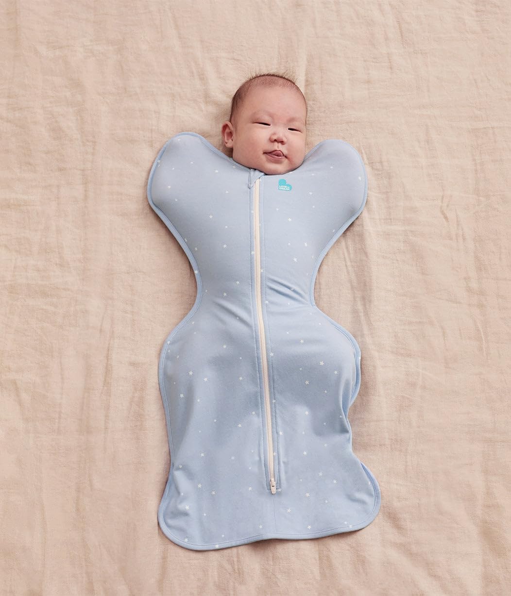 Love To Dream Baby Sleep Sack, Swaddle Up Self-Soothing Swaddle Sleep never felt this snug with our Swaddle Up Self-Soothing Sleep Sack, available in a range of classic colourways & prints. Our "Arms-Up" baby sleep sack, also known as a swaddle or wearable blanket, is designed to allow baby's arms to be positioned upward and close to their face while they sleep. 83% of parents reported an increase in hours slept by their baby when using Swaddle Up Baby's Natural Self-Soothing Sleep Position Most babies are more comfortable with their arms near their face, as this mimics the fetal position they were accustomed to in the womb. Allowing their arms to be up can enhance their sense of security and comfort during sleep. The ability for babies to self-soothe by touching their face or sucking on their fingers can be comforting. An arms-up sleep sack facilitates this natural soothing mechanism, promoting better sleep for baby. Babies have a startle reflex, also known as the Moro reflex, which can sometimes wake them up. Swaddling with Arms-Up can help reduce this reflex, preventing unnecessary disturbances to their sleep. Easy to Use, Hip-Friendly Design Our baby sleep sacks are designed to provide ample room for baby's legs and hips to move naturally, allowing for healthy hip development. The clever two-way zipper mechanism means quick and easy diaper changes for any parent, grandparent or carer, even in the middle of the night. The light weight, 1.0 tog sleep sack is ideal for MODERATE room temperatures between 68°F & 75°F. Fabric content: 93% Cotton 7% Elastane. The fabric elasticity allows for comfortable layering underneath for further insulation. From the unique, award-winning Swaddle Up, to bedding and Self-Soothing Toys, the Love To Dream range has grown to provide a portfolio of sleep solutions designed for children up to four years old.