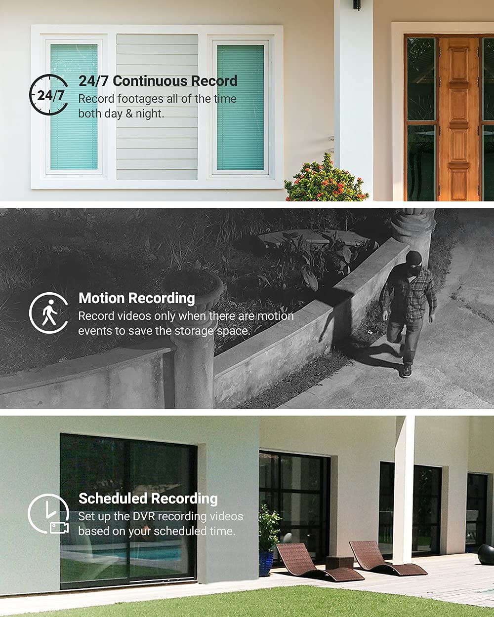 Motion Detection Recording - The NVR will be triggered to record when detect something moving. NO trigger, no record, more intelligent and space-saving.