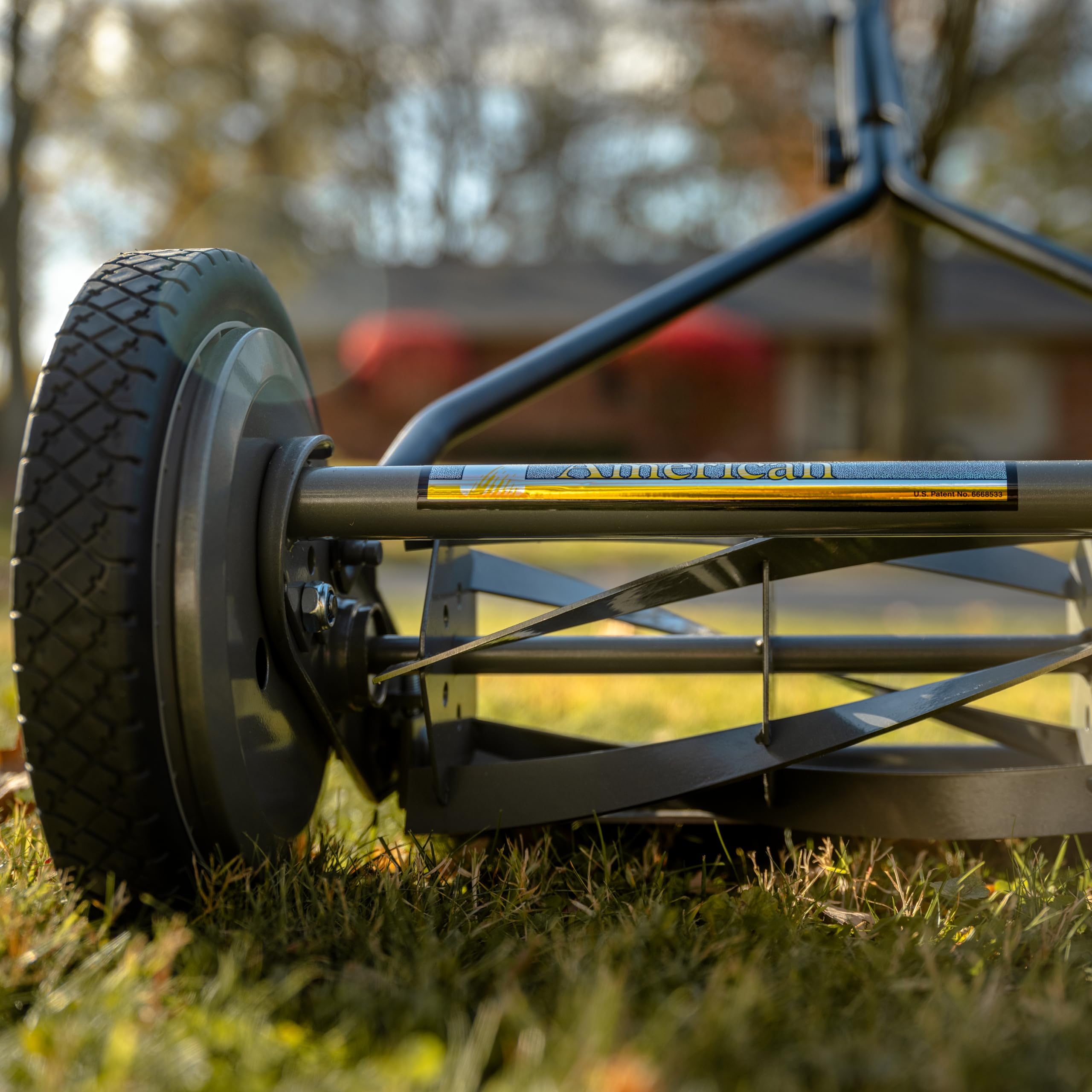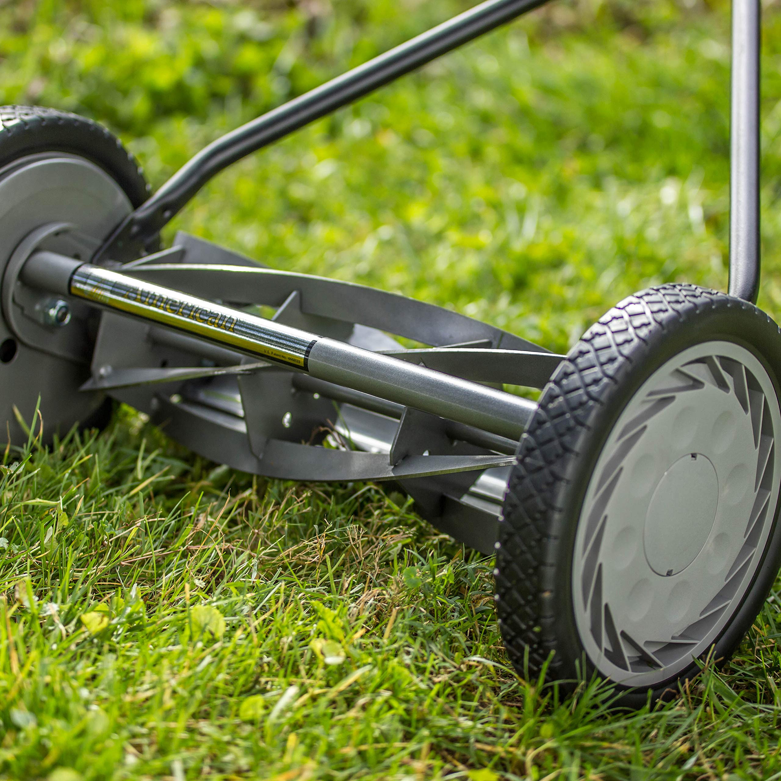 Amazon.com In these modern times, where channel surfing is rapidly becoming the nations most popular sport, the American Lawn Mower Company suggests to return to a simpler time with this hand push reel mower. The mower runs solely on manpower, thus saving valuable resources such as gasoline, oil, and electricity while simultaneously eliminating the noise and air pollutions frequently associated with fuel-run lawn mowers. Additionally, this mower combines necessary yard work with exercise, improving both the users lawn and cardiovascular health. Owners of hand push mowers also benefit from a lack of fuel expenses, and may also save by allowing grass clippings to mulch for natural fertilization. This hand push mower provides best results when used on grasses no longer than 3 to 4 inches high. Regular lubrication of the bearings and blades with WD-40 further the success of this mower. The mower features four spider five blades, ball bearing reel. With an adjustable four-section roller, the mower has a cutting length range of 1/2 to 2-1/4 inches. Both the reel and blades are constructed from tempered alloy steel and are held in place by an unbreakable steel plate. The wheels measure 10 inches in diameter and the mower covers a width of 16 inches. The mower weighs 32 pounds upon shipping with some assembly required. --Jessica Reuling Product Description American Lawn Mower Company 16-Inch 5-Blade Push Reel Lawn Mower is a green alternative to gas-powered lawnmowers. Moreover, this lawn mower is easy to use and does not emit fumes. It can cut your lawn in a precise scissor-like motion that will not shred your grass to make your lawn appear better. This reel lawn mower has a low maintenance hassle-free design that only requires to be sharpened at least once every 3-5 years. Perfect for youths over the age of 13 and compact yards. When you buy it, you won’t have to worry about fuel, maintenance, and repairs that make this push blade mower a smart choice.