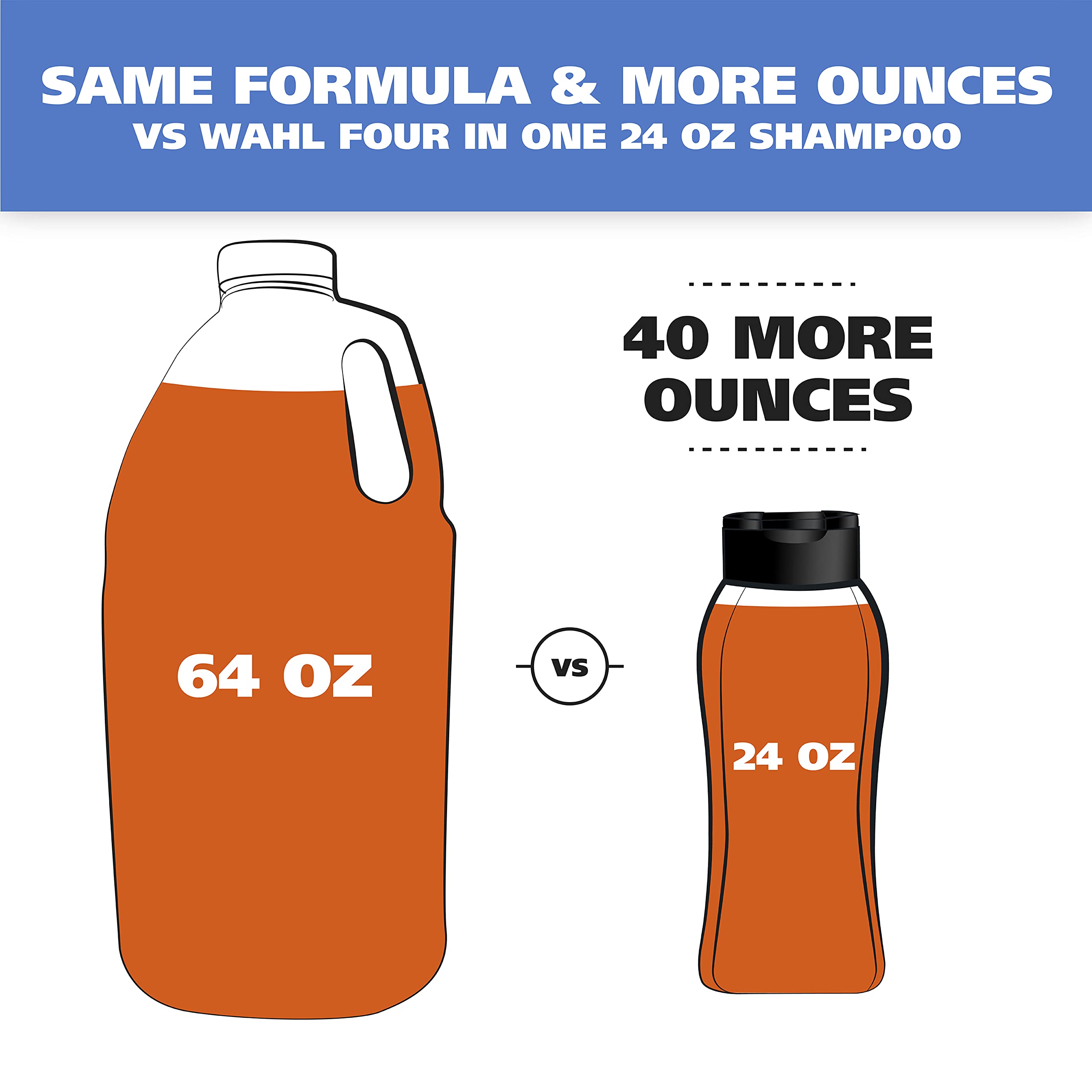Wahl’s Oatmeal formula shampoo contains coconut lime verbena. This allows us to help gently cleanse, moisturize, & protect your puppy’s delicate skin by providing itch relief. The rich lather helps clean dirty coats and other environmental residue. Since our shampoo is easy to clean, it leaves your dog’s coat looking clean, silky, and smooth. Our plant derived ingredients make our shampoo the choice for owners who want to avoid harsh chemicals for their dog and themselves. Our shampoo is PEG-80 free, alcohol free, paraben free, and pH balanced. Our 64 oz size and concentrated formula allows for up to 70% more baths than other leading brands. While there are no harmful chemicals in our pet products, some pets are sensitive to certain plant oils used in our products. Wahl strongly recommend talking to your vet and doing a small spot test on your pet at least 24 hours before using any new product. Wahl has been serving professional vets and groomers for over 50 years. We are a company of animal lovers that want the best for your family member. Product in packaging may not be exactly the same as photo due to continuous improvements to the product.