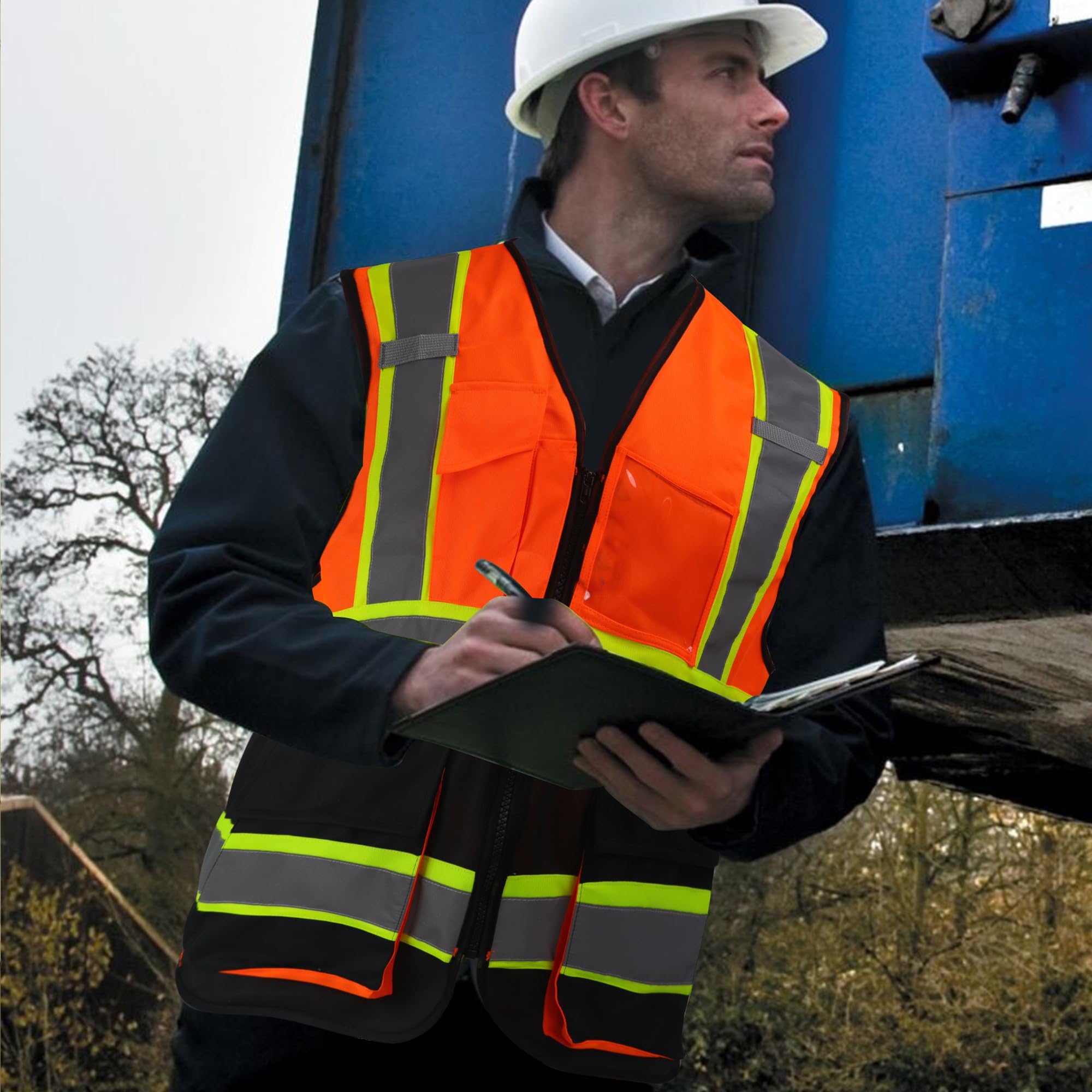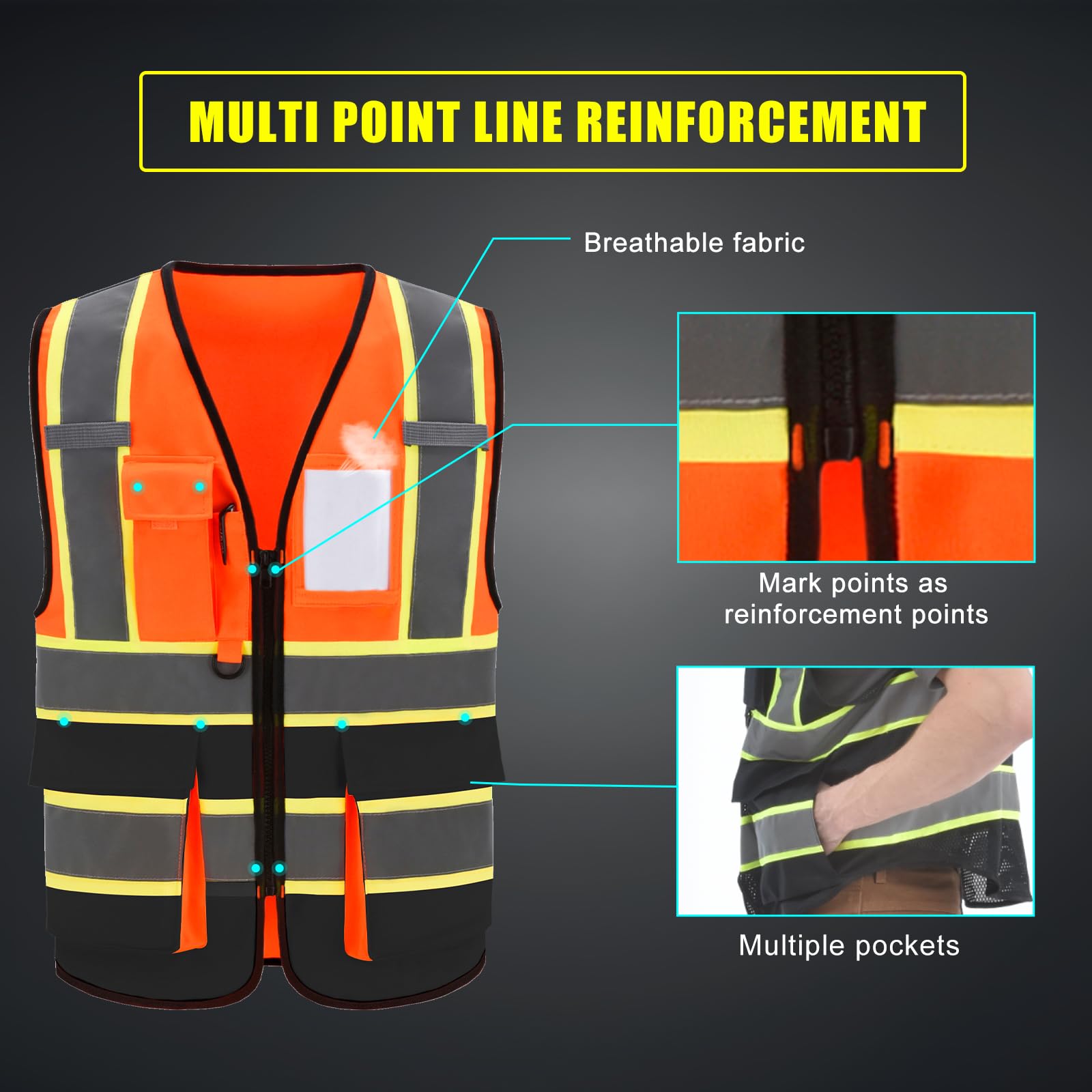 【High Visibility】HIGH VISIBILITY APPAREL: Unisex safety Vest with high visibility reflective tapes. Its Four 2-inches wide Hi-Vis retro-reflective tapes outlined by the radiant and bright yellow orange extended edge trim to maximize your visibility in a daylight and low light working environment.