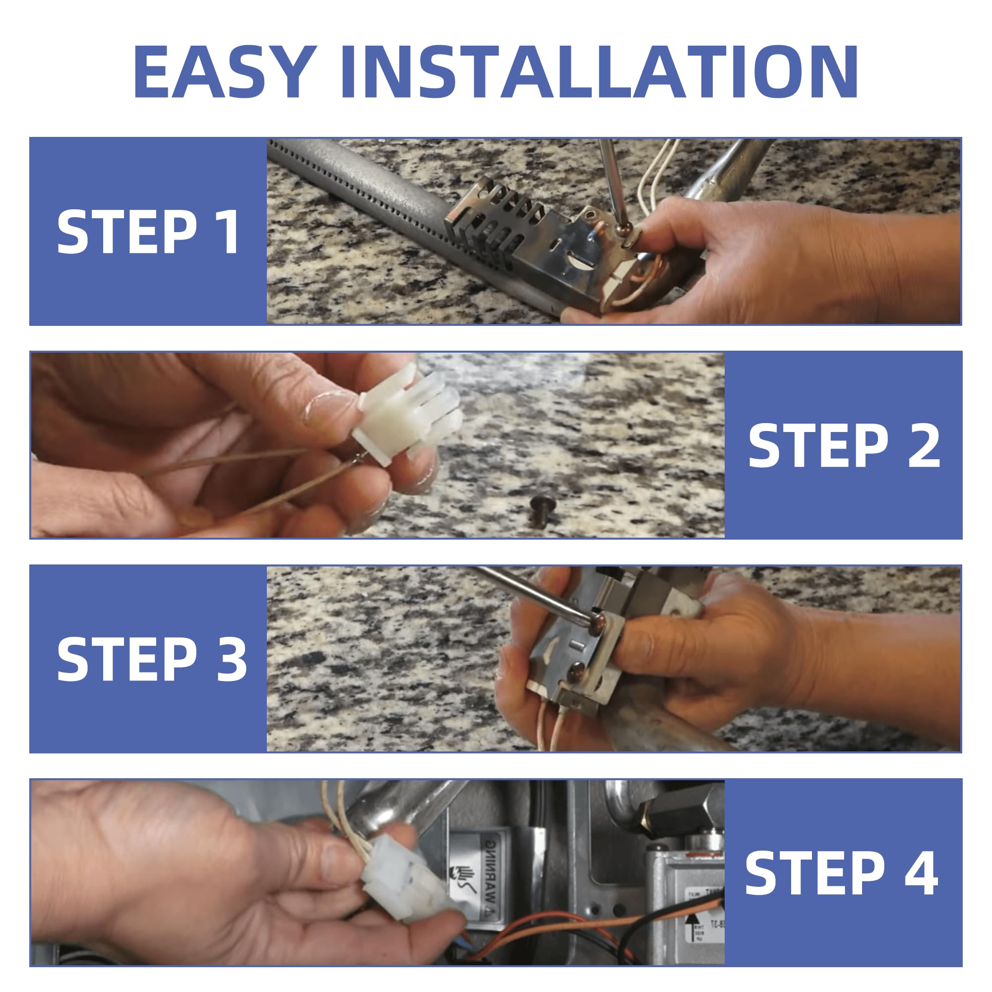 【INSTALLATION INSTRUCTIONS】: Simply remove the old igniter and reconnect the new one( If wire connector does not match up you will need to cut off the connector and splice the wires with porcelain wire nuts). Unplug the cooktop before installing the oven igniter.
