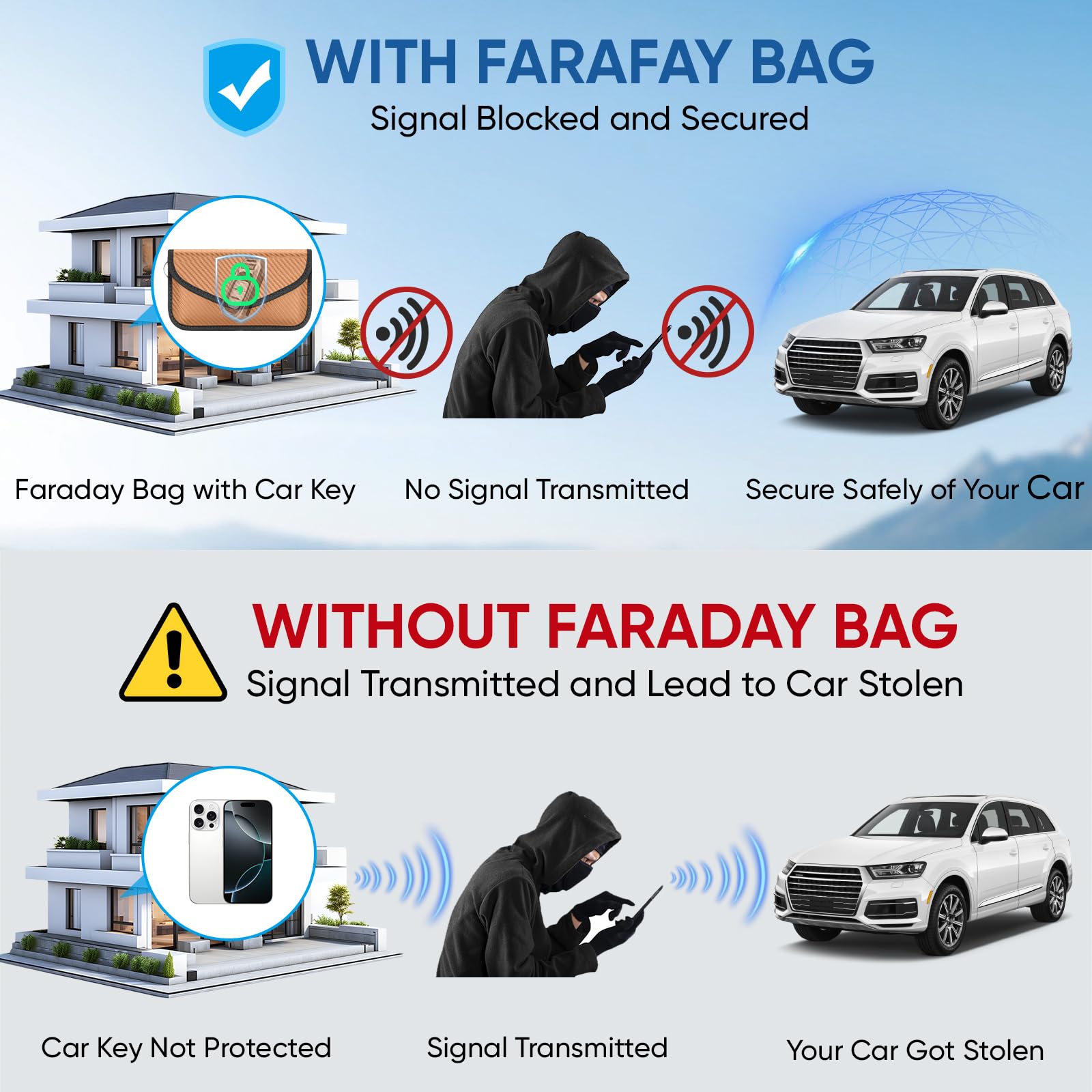 Why You May Need One: Get your car protected; TICONN faraday bag provides a complete signal blocker for your vehicle key fob; This prevents thieves from picking up and relaying signals from your key, to shield against break-ins and keyless ignition theft
