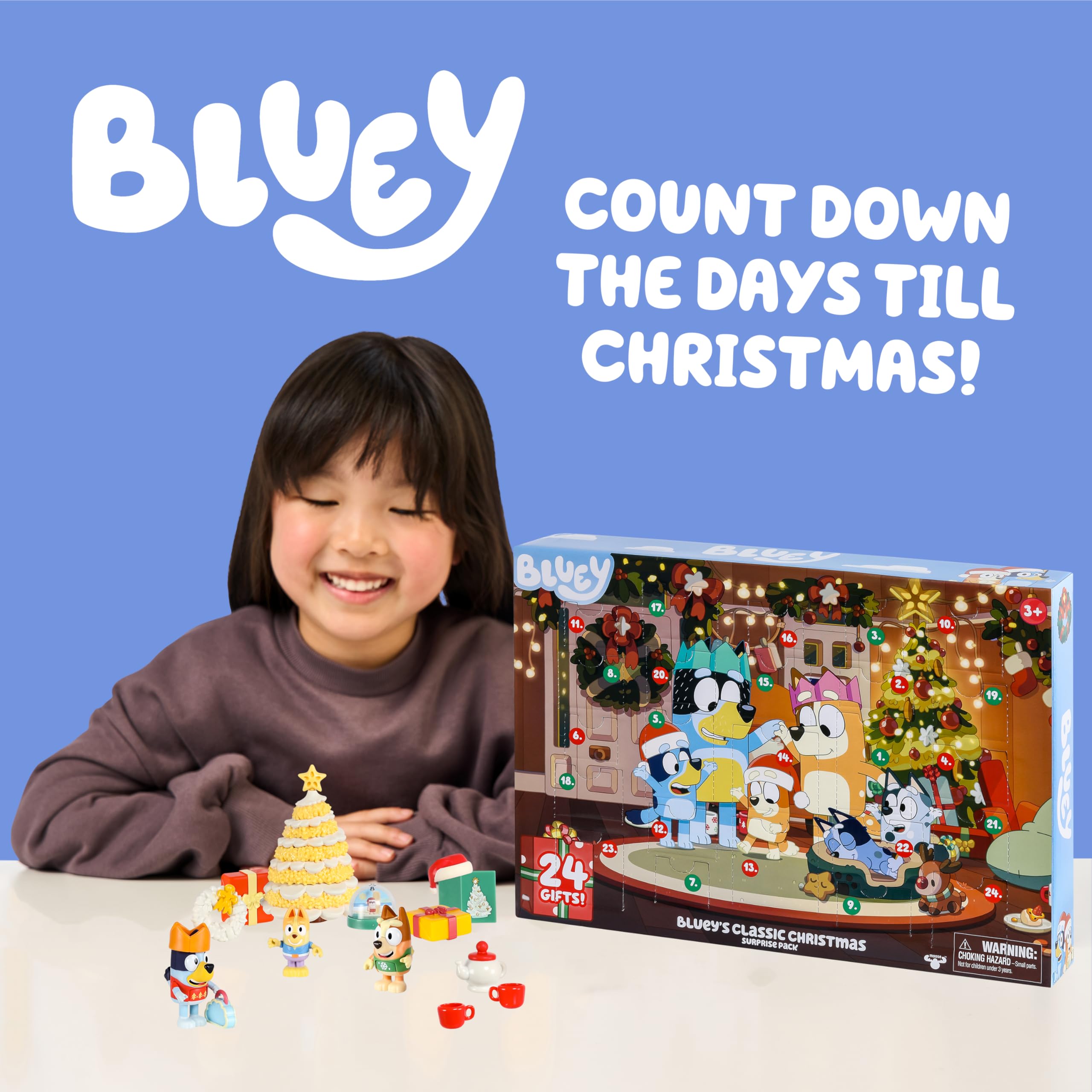 Exclusive Figures: This advent calendar for kids includes Bluey, Bingo, and Bartlebee toy figures, with Bluey and Bingo dressed in their favorite Christmas jumpers for festive holiday fun